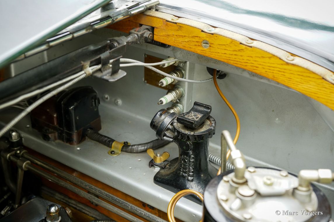 Lagonda 2 Litre „Low Chassis“, Baujahr 1932. Fahrgestellnummer OH9975, Motornummer 1724. Britisches Kennzeichen WH 4025. Dieses Lagonda 2 Litre „Low Chassis“ ist ein ganz besonderer und seltener Fund; das Auto ist in einem super Originalzustand, das Auto wurde nie restauriert und die vollständige Historie (einschließlich Besitzerliste) seit dem Tag, an dem es das Werk verließ, ist bekannt! Dieses Auto mit „Matching Numbers“ zeigt auch seine Originalfarben ab Werk. Das Fahrgestell ist schwarz lackiert, die Karosserie des von Lagonda gebauten offenen Tourenwagens in British Racing Green, der Innenraum ist mit schwarzem Leder und grünem Wollteppich gepolstert und die Wetterausrüstung besteht aus schwarzem Mohair Stoff Verdeck, Verdeck Abdeckung und Persenning. Die Karosserie des Lagonda (der breitere T2-Stil, der das Fahrgestell vor der Rückseite der Windschutzscheibe verbirgt) wurde im eigenen Haus nach dem Weyman-Prinzip der „flexiblen Karosserie“ gefertigt, dass dank der Vinyl Verkleidung ein klapperfreies Fahrerlebnis auf holprigen Straßen garantierte. Der Vierzylindermotor mit obenliegenden Ventilen und halbkugelförmiger Brennkammer war nicht nur ein mechanisches Wunderwerk, sondern auch ein Ausdruck von Lagondas Absicht, im Segment der Hochleistungs-Tourenwagen mit Herstellern wie Bentley und Alvis zu konkurrieren. Wenn Sie sich für klassische Technik interessieren, ist dies ein Juwel! Der Motor dieses Wagens wurde professionell auf 2,4 Liter aufgerüstet, was mehr Drehmoment und somit eine größere Elastizität im höchsten Gang bietet. Die am Motor durchgeführten Arbeiten sind sehr gut dokumentiert. Dies waren die einzigen größeren Arbeiten am Wagen; weitere Wartungs- und Reparaturarbeiten wurden durchgeführt, um das Auto mechanisch und optisch auf dem neuesten Stand und in Topform zu halten. Der letzte (und aktuelle Besitzer) hat diese großartige Zeitkapsel 25 Jahre lang gehegt und gepflegt. Jetzt sucht dieses brillante Stück britischer Automobilkultur nach einem neuen Betreuer, der sich die nächsten Jahre darum kümmert. Eine Person, die die Geschichte mit Respekt vor ihrer Herkunft und Originalität fortschreibt. Die Geschichte des WH4025 wird noch mindestens ein Jahrhundert weitergehen, und Sie können der Autor einiger Seiten oder eines ganzen Kapitels sein. Dieser prachtvolle Lagonda wird mit sehr interessanter historischer Korrespondenz und Fotos aus dem Jahr 1954 geliefert. Diese können Sie bei einem Besuch in unserem Showroom lesen und bewundern. Dieses Top-Originalauto kann weltweit importiert und zugelassen werden.