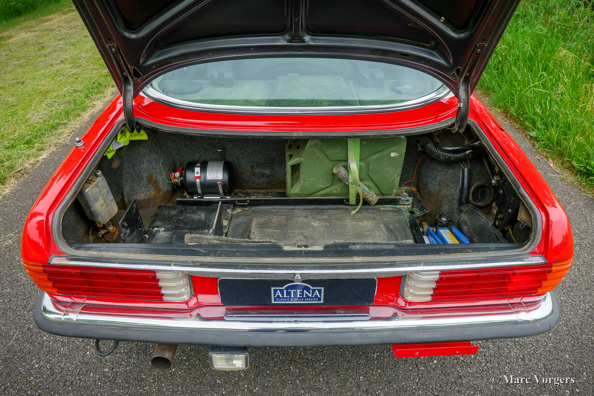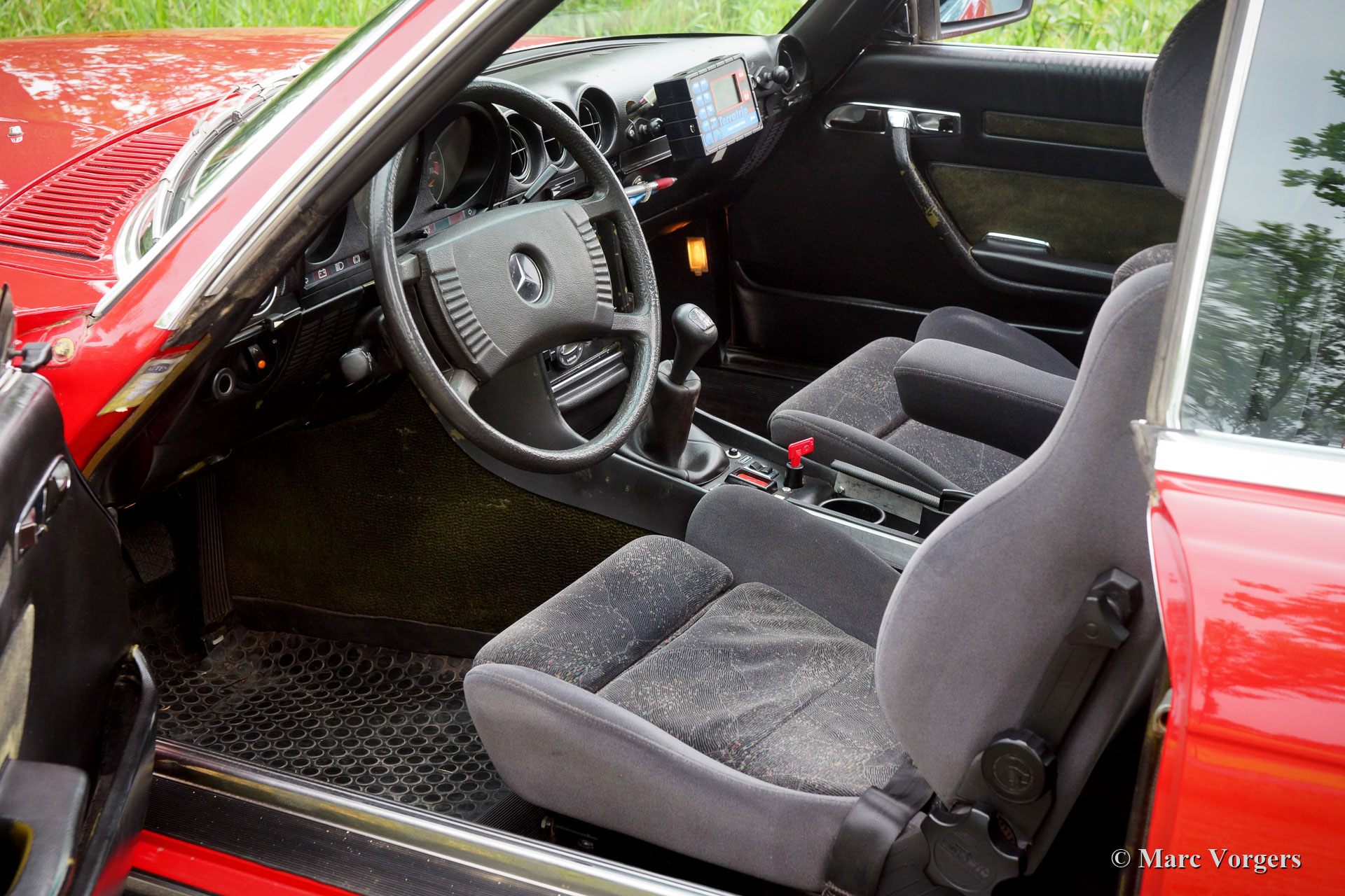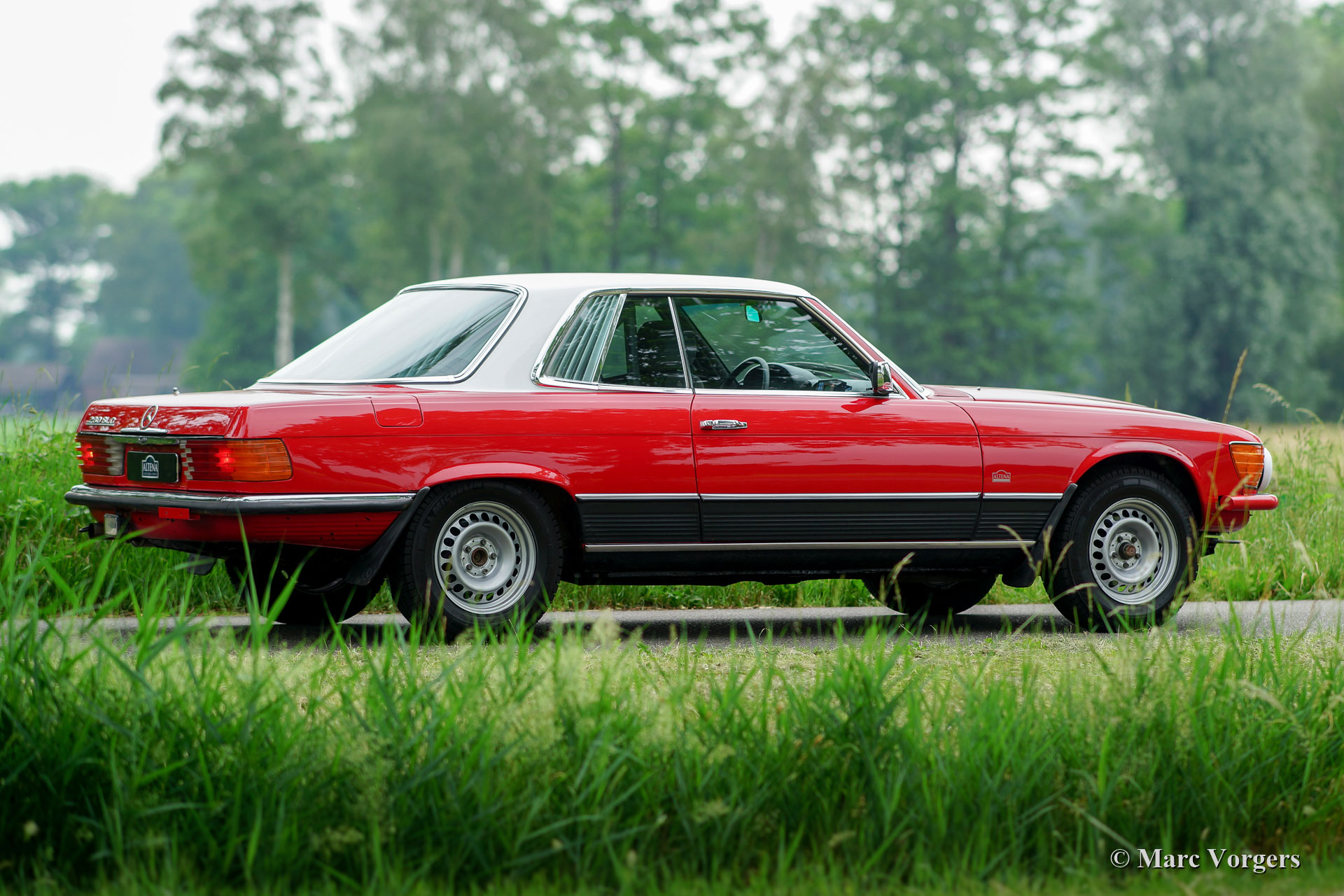 Mercedes-Benz 280 SLC (C107) Rallyeauto, Jahr 1976. Farben: rot über schwarz mit einem weißen Dach. Anthrazit / schwarz Rally Innenausstattung. Dieses prächtige Mercedes-Benz Rallyeauto wurde vor einigen Jahren von Altena Classic Service komplett und professionell restauriert / überholt / modifiziert / präpariert. Das Automobil hat an vielen historischen (Rallye-) Veranstaltungen auf der ganzen Welt teilgenommen. Der Mercedes hat sich als eine absolut zuverlässige Maschine erwiesen. Während der Restaurierung wurde das Auto vollständig modifiziert, um einen moderneren Mercedes-Benz W124 320 Motor zu erhalten. Diese Operation wurde von Altena Classic Service mehrfach durchgeführt. Das Auto ist unter anderem ausgestattet mit: zusätzliche leistungsstarke Scheinwerfer vorne, verstärkte Stahlfelgen (die originalen MB-Leichtmetallräder sind auch vorhanden), einen professionellen Rallye-Überrollkäfig, spezielle Komfortsitze, Armaturenbrett mit Rallye-Instrumenten, aufgewertete und verstärkte Radaufhängung, Ölwannenschutzplatte, Spezial angefertigte Frontstoßstange, Sicherheit Motorhauben Verschlüsse, spezielle Sportauspuffanlage, Schiebedach, verbessertes elektrisches System und sicheres Batteriesystem. Dies ist ein perfekt vorbereiteter Rallye-Wagen, der an Langstreckenrallyes auf der ganzen Welt teilnehmen kann!