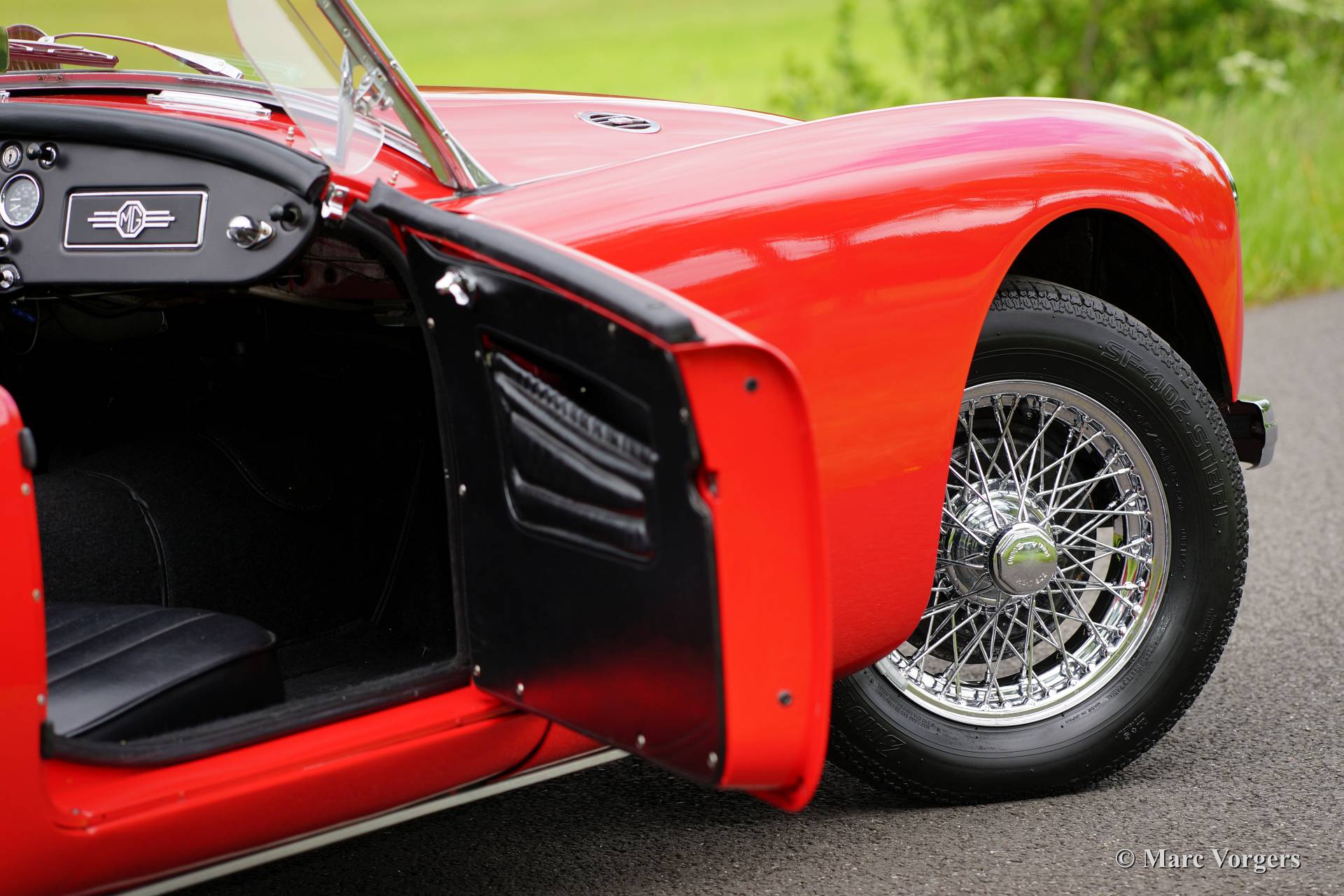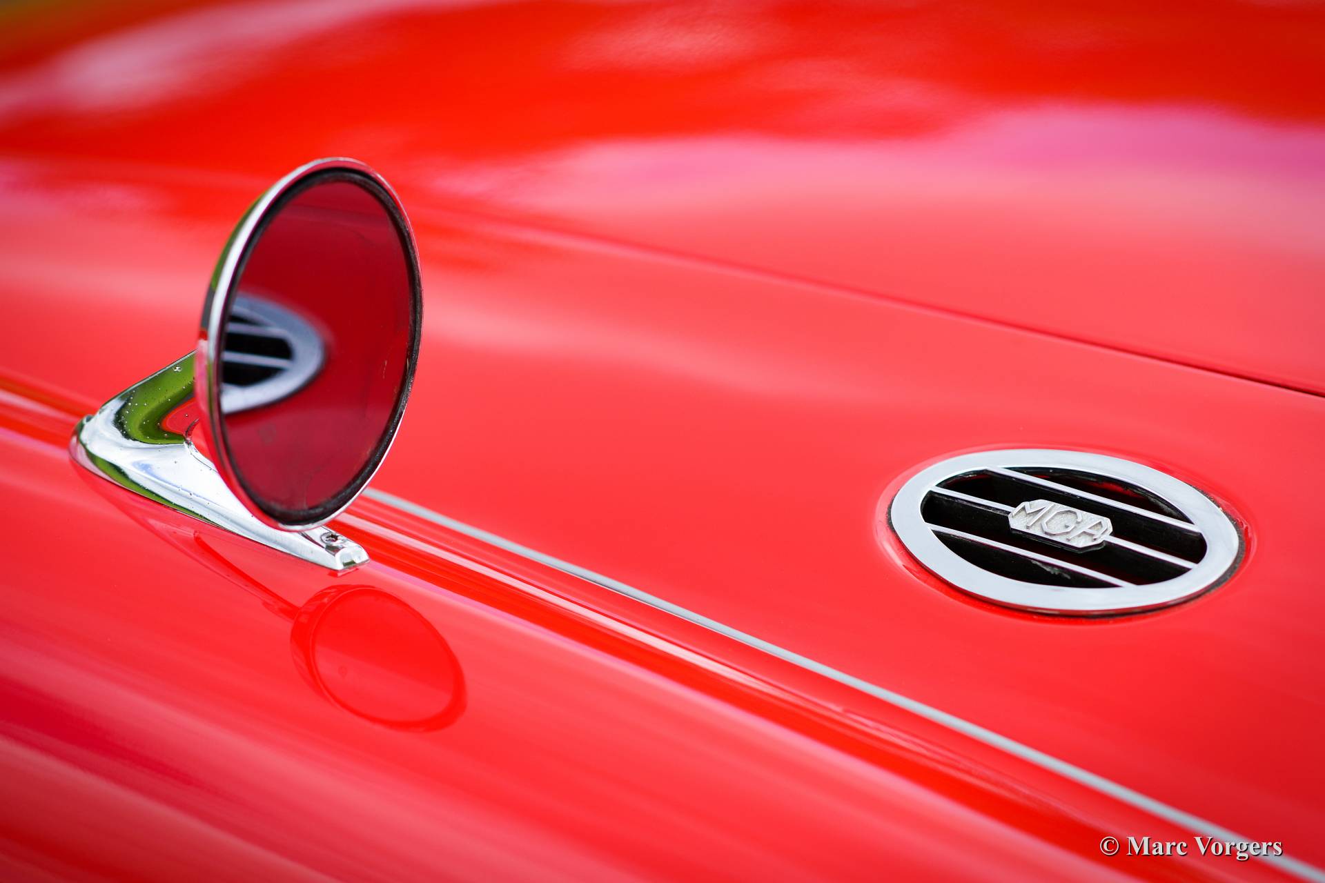 The year 1955 saw the introduction of the MGA. With this design the MG broke new grounds. After its predecessors MG TD and MG TF, which were largely based on the pre-war MG TB, it was a roadster with a very modern sporty design. Like its predecessors, the MGA was a great success and, like before, the greater part was sold in America. Until 1959, the MGA was equipped with a 1459 cc four-cylinder engine. From that year, the car was fitted with a 1588 cc four-cylinder. A 1622 cc four-cylinder engine replaced the 1588 cc. engine in 1961. The early MGA versions had very good drum brakes until 1959, but after that year, the MG A was equipped with disc brakes on the front wheels. The year 1962 saw the production of the MGA, the A 1600 Mk II. The MGB replaced this very popular British sports car, and was to develop the success of the MG A even further.