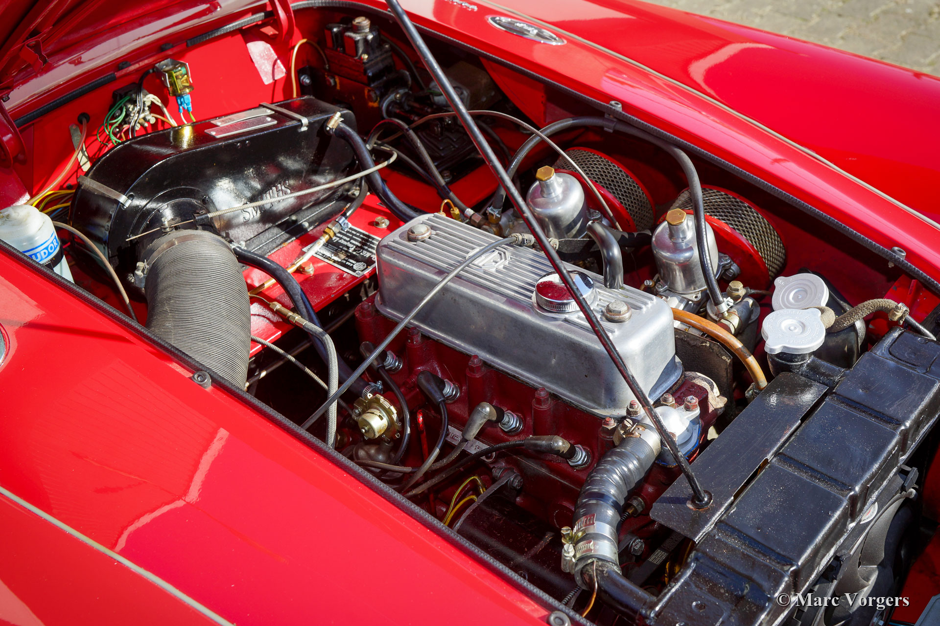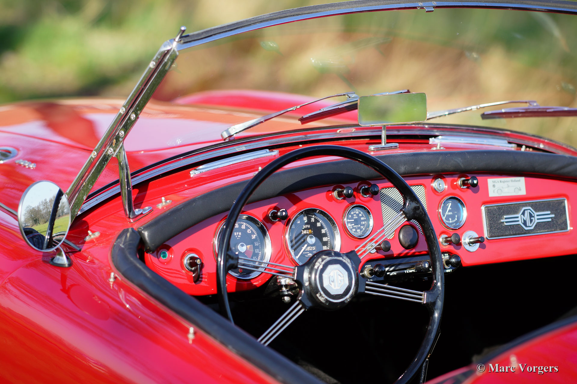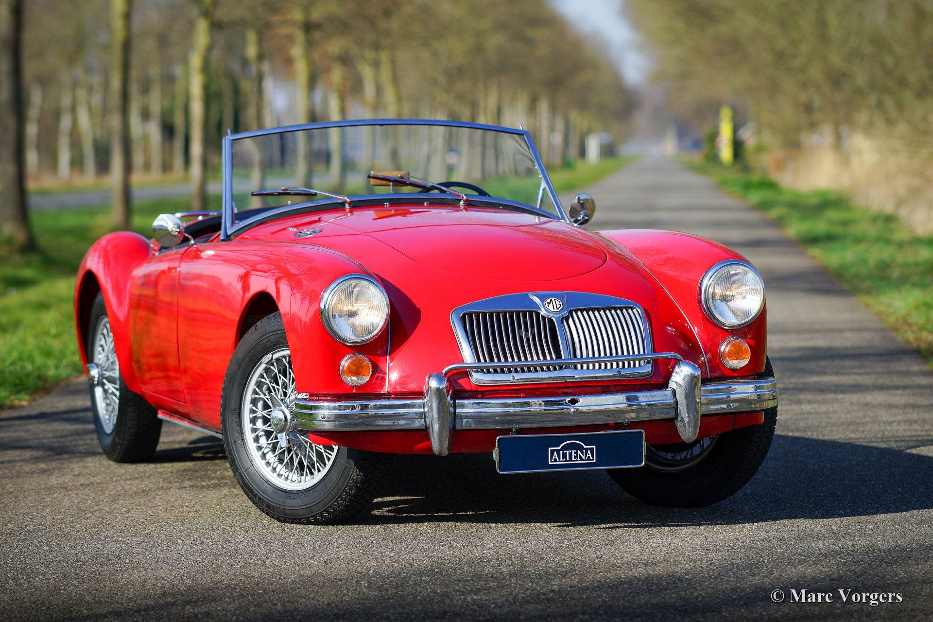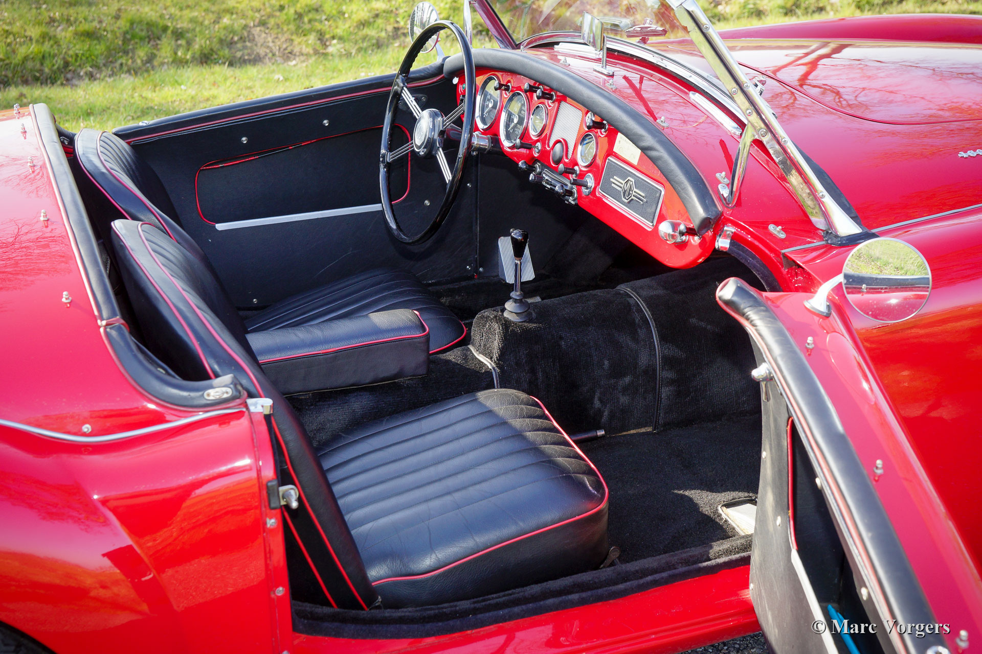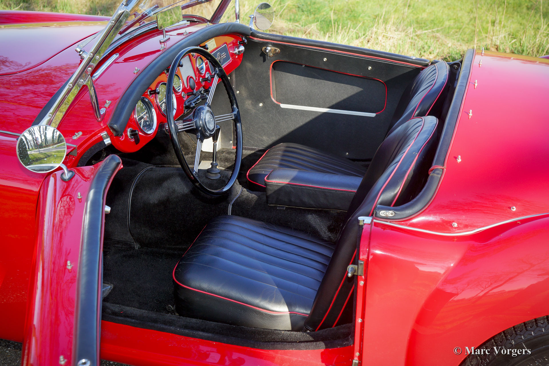 MG MGA 1600 Roadster, Jahr 1961. Farbe Rot kombiniert mit einer schwarzen Lederausstattung getrimmt mit roten Paspeln und schwarzem Teppich. Schwarzes Mohair-Verdeck, schwarze Vinyl-Persenning und Seitenfenster mit schwarzen Rahmen. Dieser wunderschöne MG MGA Roadster wurde neu in den Vereinigten Staaten von Amerika ausgeliefert. 1994 wurde das Auto in die Niederlande verschifft. Im Zeitraum 1997-1999 wurde das Automobil umfangreich restauriert und überholt. Jetzt, 22 Jahre später, ist die Qualität der Restaurierung deutlich zu erkennen, der Wagen ist immer noch in einem wunderbaren Zustand! Von 1994 bis 2022 hat das Auto nur einen Besitzer gekannt, der das Auto mit Sorgfalt gehegt und gepflegt hat. Dieser MG MGA 1600 Roadster zeigt alle Originaldetails. Das Auto ist ausgestattet mit lackierten Speichenrädern, verchromten „Knock-on“-Radmuttern, einem Edelstahl-Gepäckträger, einem zusätzlichen Ölkühler, einer Aluminium-Ventildeckel und einem elektrischen Kenlow Lüfter. Dies ist ein sehr begehrter MGA 1600 Roadster, der aus einem langjährigen, fürsorglichen Besitz stammt.