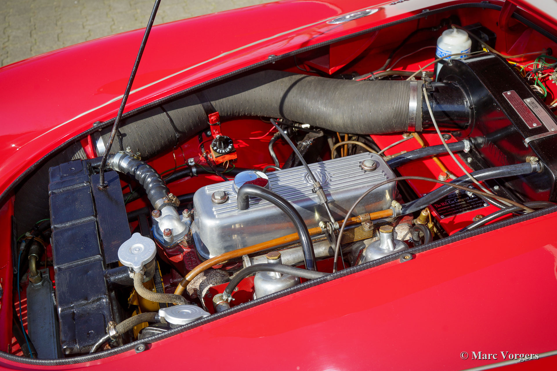 The year 1955 saw the introduction of the MGA. With this design the MG broke new grounds. After its predecessors MG TD and MG TF, which were largely based on the pre-war MG TB, it was a roadster with a very modern sporty design. Like its predecessors, the MGA was a great success and, like before, the greater part was sold in America. Until 1959, the MGA was equipped with a 1459 cc four-cylinder engine. From that year, the car was fitted with a 1588 cc four-cylinder. A 1622 cc four-cylinder engine replaced the 1588 cc. engine in 1961. The early MGA versions had very good drum brakes until 1959, but after that year, the MG A was equipped with disc brakes on the front wheels. The year 1962 saw the production of the MGA, the A 1600 Mk II. The MGB replaced this very popular British sports car, and was to develop the success of the MG A even further.
