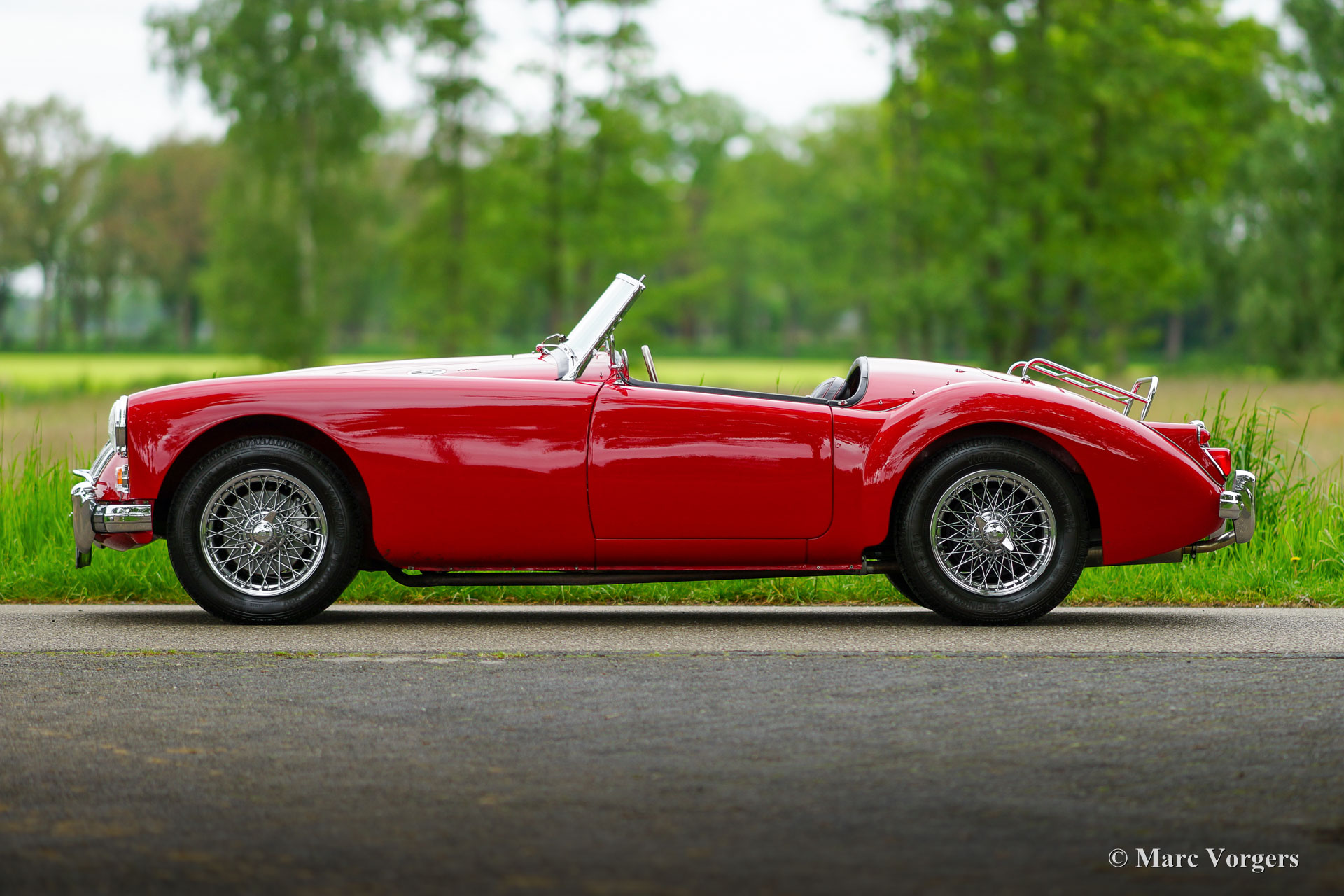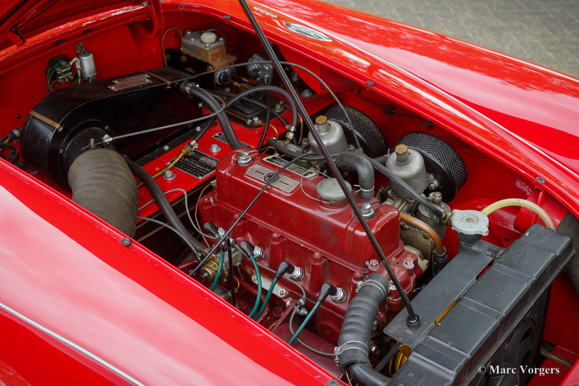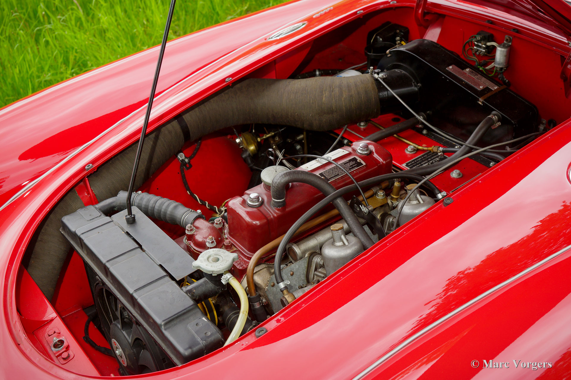 The year 1955 saw the introduction of the MGA. With this design the MG broke new grounds. After its predecessors MG TD and MG TF, which were largely based on the pre-war MG TB, it was a roadster with a very modern sporty design. Like its predecessors, the MGA was a great success and, like before, the greater part was sold in America. Until 1959, the MGA was equipped with a 1459 cc four-cylinder engine. From that year, the car was fitted with a 1588 cc four-cylinder. A 1622 cc four-cylinder engine replaced the 1588 cc. engine in 1961. The early MGA versions had very good drum brakes until 1959, but after that year, the MG A was equipped with disc brakes on the front wheels. The year 1962 saw the production of the MGA, the A 1600 Mk II. The MGB replaced this very popular British sports car, and was to develop the success of the MG A even further.
