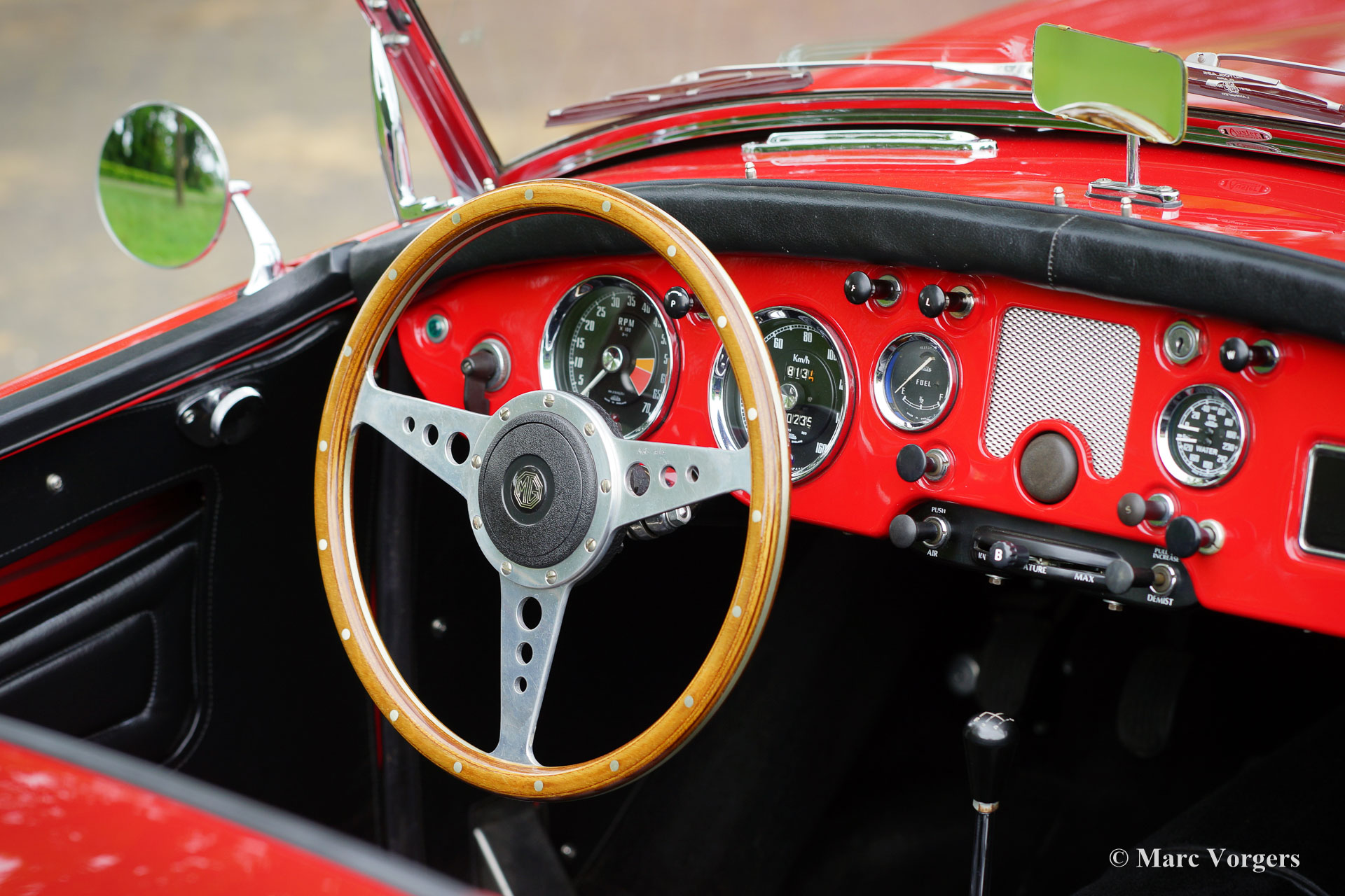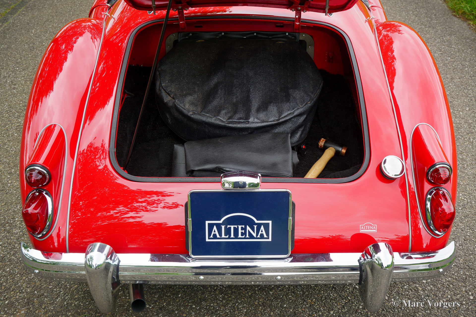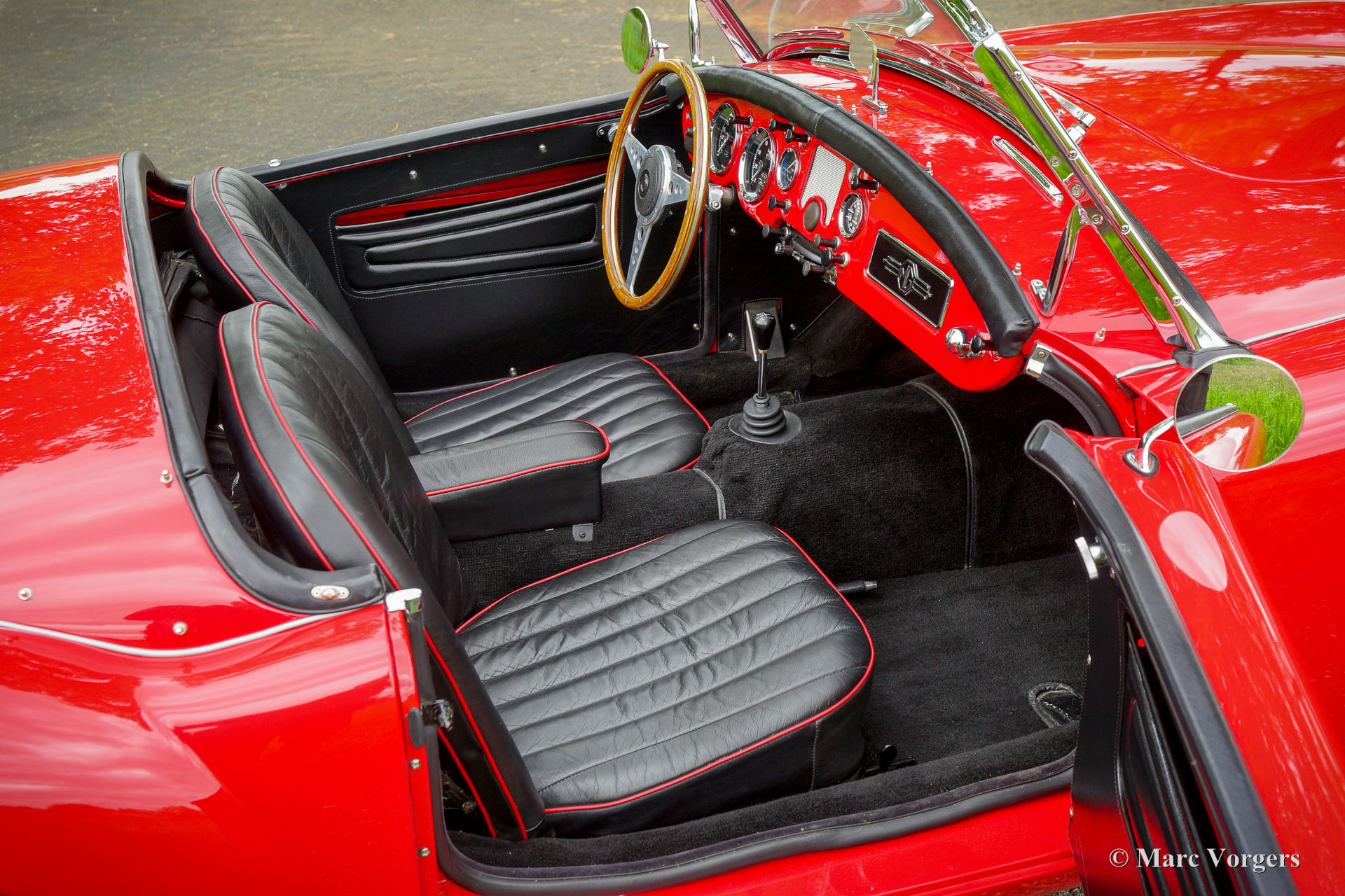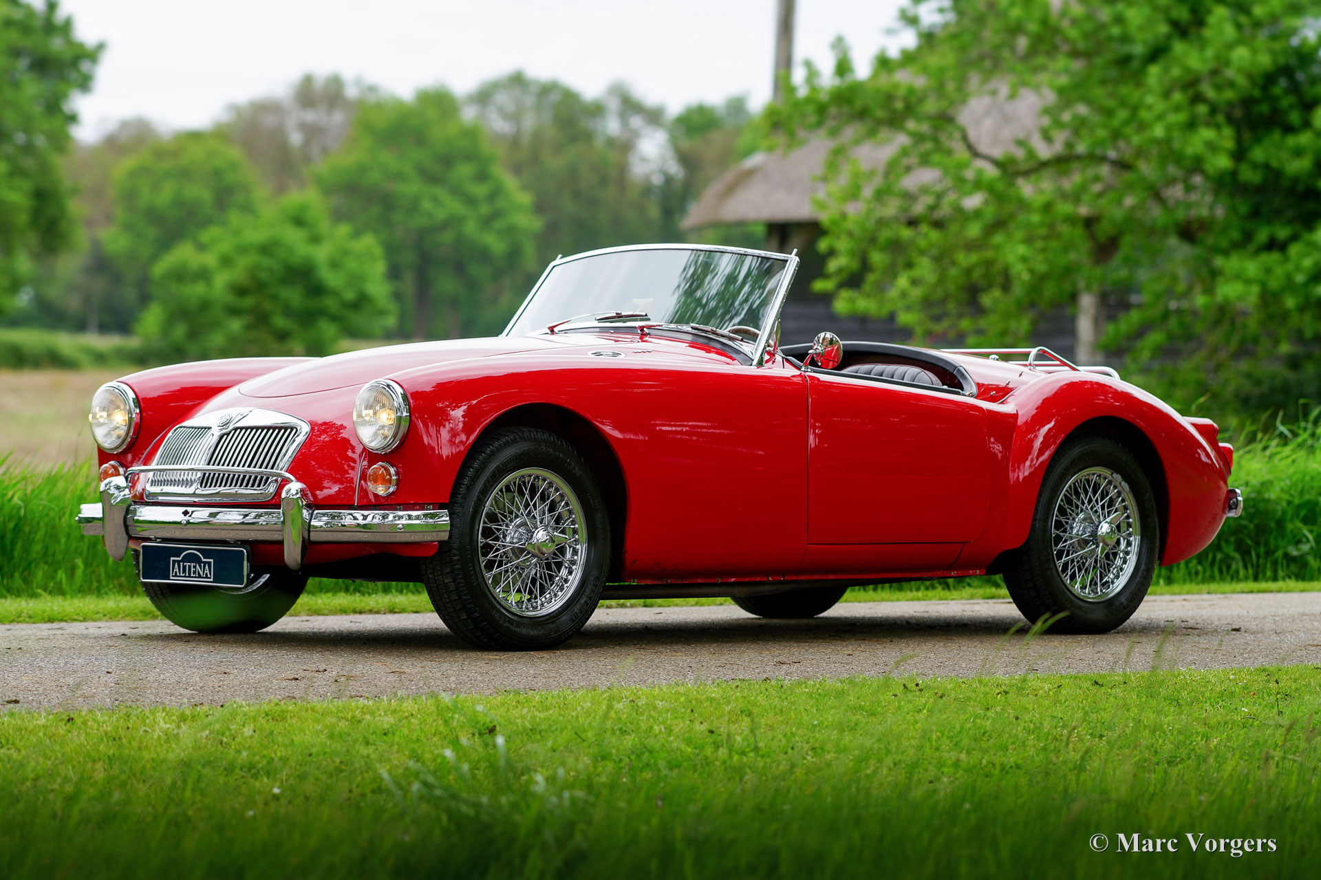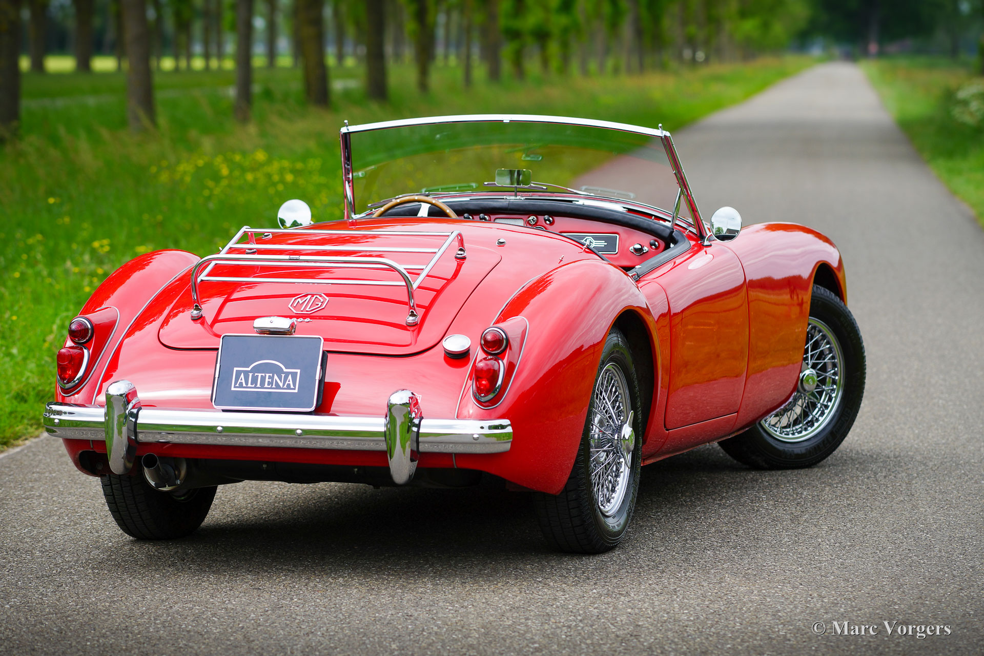 MG MGA 1600 Roadster, Jahr 1961. Farbe Rot mit schwarzem Lederinterieur und roten Paspeln. Schwarzer Teppich, schwarzes Verdeck und schwarzem „Tonneau“ Abdeckung. Dieser wunderschöne MGA 1600 Roadster wurde in den USA neu verkauft. Das Auto wurde im Jahr 2001 in die Niederlande verkauft. Im Zeitraum 2015 – 2017 wurde der MGA umfangreich und perfekt restauriert, alles wurde restauriert/überholt und es wurde ein neuer Kabelbaum montiert. Das Auto zeigt wunderbare Originaldetails, eine perfekte Passform der Blechpaneele, fantastische Lackierung und Chromteile sowie eine atemberaubende schwarze Lederausstattung. Dieser wunderschöne MG ist in einem hervorragenden TOP-Zustand! Ein Fotobericht der Restaurierung ist verfügbar. Das Auto wurde pünktlich in der Werkstatt von Altena Classic Service gewartet, Servicerechnungen sind vorhanden. Dieser feine MGA ist ausgestattet mit verchromten Speichenrädern, verchromten „Knock-on“-Radmuttern, einer verchromten Plakettenleiste, einem verchromten Gepäckträger und einem MotoLita-Lenkrad mit Holzkranz. Dieser MGA 1600 Roadster fährt perfekt, das Auto ist bereit, es in vollen Zügen zu genießen!