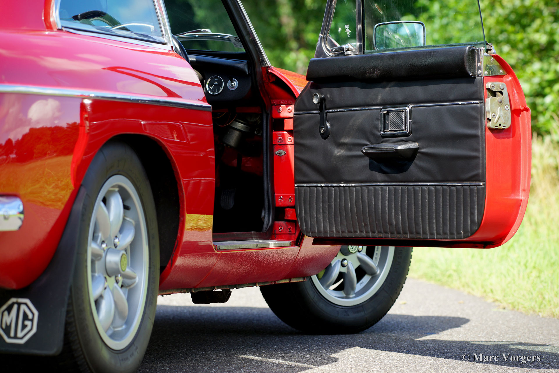 The MG B was the first MG (Morris Garage) to be built of unitary construction bodywork. The MG B roadster was manufactured between 1962 and 1980. Early models can be recognized by the chrome bumpers, but because of American rules on safety, the later models were equipped with synthetic bumpers. The greater part was exported to the United States.