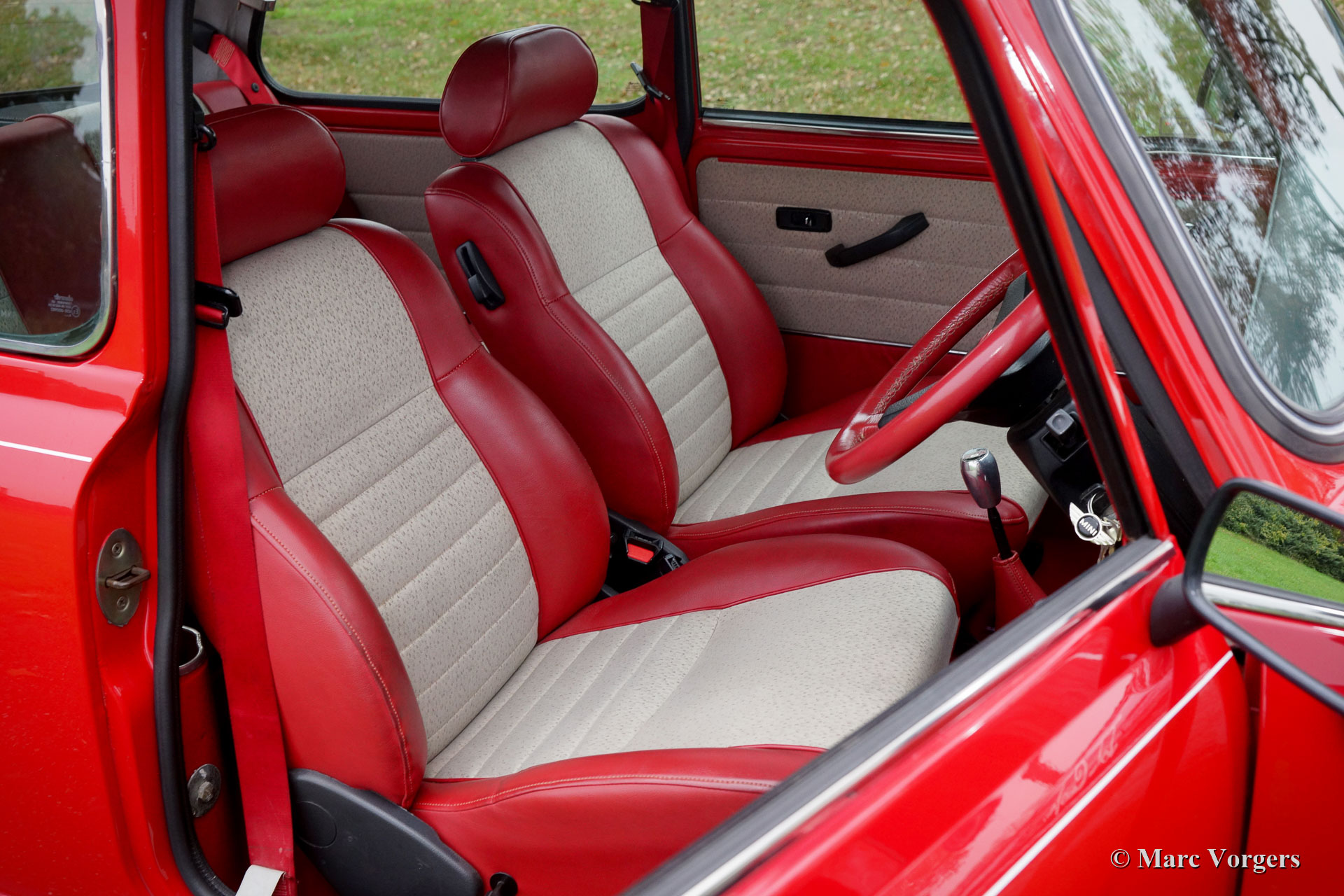 Rover Mini Cooper 1.3i Monte Carlo, Jahr 1994. Farbe ‘Flame Red‘ mit einem cremeweißen Dach. Rote Vinylsitze mit Creme Mittelpaneelen aus Tuch, Cremetürkarten und rotem Teppich. Bei diesem Mini Cooper ‘Monte Carlo‘ handelt es sich um ein sehr seltenes limitiertes Modell, das im Januar und Juli 1994 gebaut wurde. Es wurden nur 200 Fahrzeuge dieses Typs hergestellt. Die limitierte Edition von Mini Cooper Monte Carlo wurde introduziert, um die Rückkehr der Rallye-Legende Paddy Hopkirk zur Rallye Monte Carlo zu feiern, 30 Jahre nach seinem ursprünglichen Sieg mit einem Mini Cooper! Diese ‘Limited Edition‘ ist basiert auf dem Mini Cooper 1.3i. Das ‘Monte Carlo‘ erhielt spezielle Außenfarben (nur Flame Red und Black), spezielle Abzeichen, ein spezielles Interieur mit Monte Carlo-spezifischen Details, vier Zusatzscheinwerfer an der Vorderseite und 12-Zoll-Minilite-Stil-Räder. Dieses Rechtslenker-Exemplar befindet sich in einem sehr guten bis hervorragenden Originalzustand und das Auto hat von Neuem 81.000 Meilen zurückgelegt. Das Auto fährt super! Dies ist Ihre Chance, einen sehr seltenen und äußerst begehrten Mini Cooper Monte Carlo in wunderschönem Zustand zu erwerben!