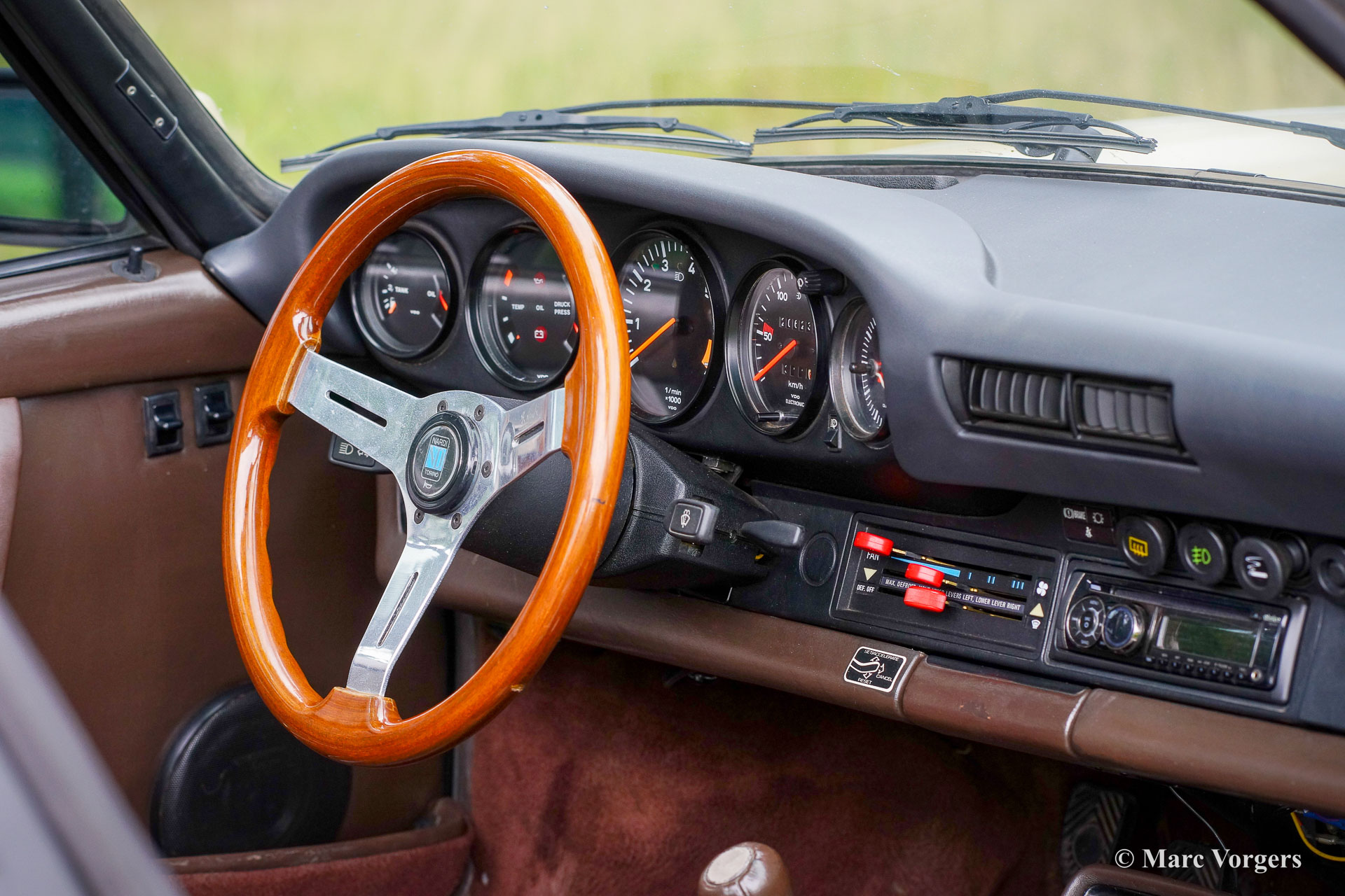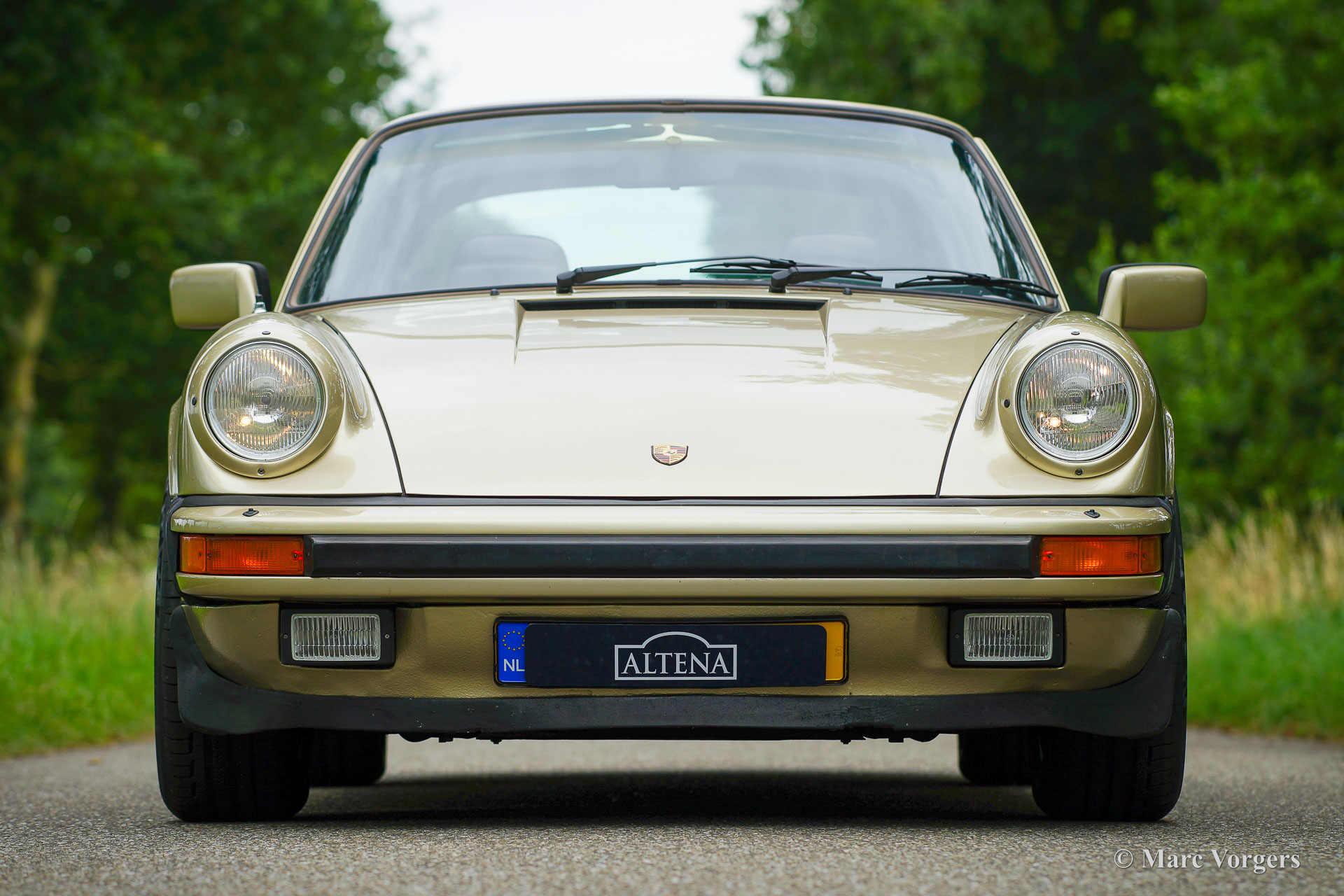 Porsche 911 Targa 3.2 Carrera, Jahr 1983. Farbe Hell Bronze Metallic (Farbcode 966) kombiniert mit einer braunen Lederausstattung und einem braunen Teppich. Dieser fantastische Porsche 911 der G-Serie wurde in Georgia USA neu verkauft. Das Auto wurde kürzlich aus den Vereinigten Staaten importiert und an die EU-Gesetzgebung angepasst, indem Lampen mit EU-Spezifikation und ein Kilometerzähler eingebaut wurden. Das Auto ist jetzt in den Niederlanden zugelassen. Dieser wunderbare Porsche 911 Targa ist in einem super originalen und guten Zustand, eine wahre Zeitkapsel! Das Auto zeigt alle originalen Details und alle originalen Werksaufkleber sind noch vorhanden. Dieser super originale 911er zeigt einige Gebrauchs- und Altersspuren, das Auto fährt sehr gut und der Motor läuft perfekt. Das Auto ist vollständig dokumentiert und wird mit originalen Bedienungsanleitungen geliefert. Dieser Porsche 911 Carrera 3.2 ist mit wunderschönen 16-Zoll-Fuchs-Leichtmetallrädern mit Continental-Reifen 205/55-16 vorne und 225/55/16-Reifen hinten ausgestattet. Das originale Reserverad und Bordwerkzeug sind vorhanden. Dies ist ein Porsche für den Liebhaber, der einen 911 Targa in einem guten und nie restaurierten Originalzustand sucht!