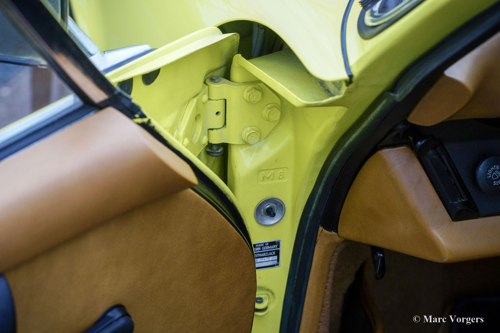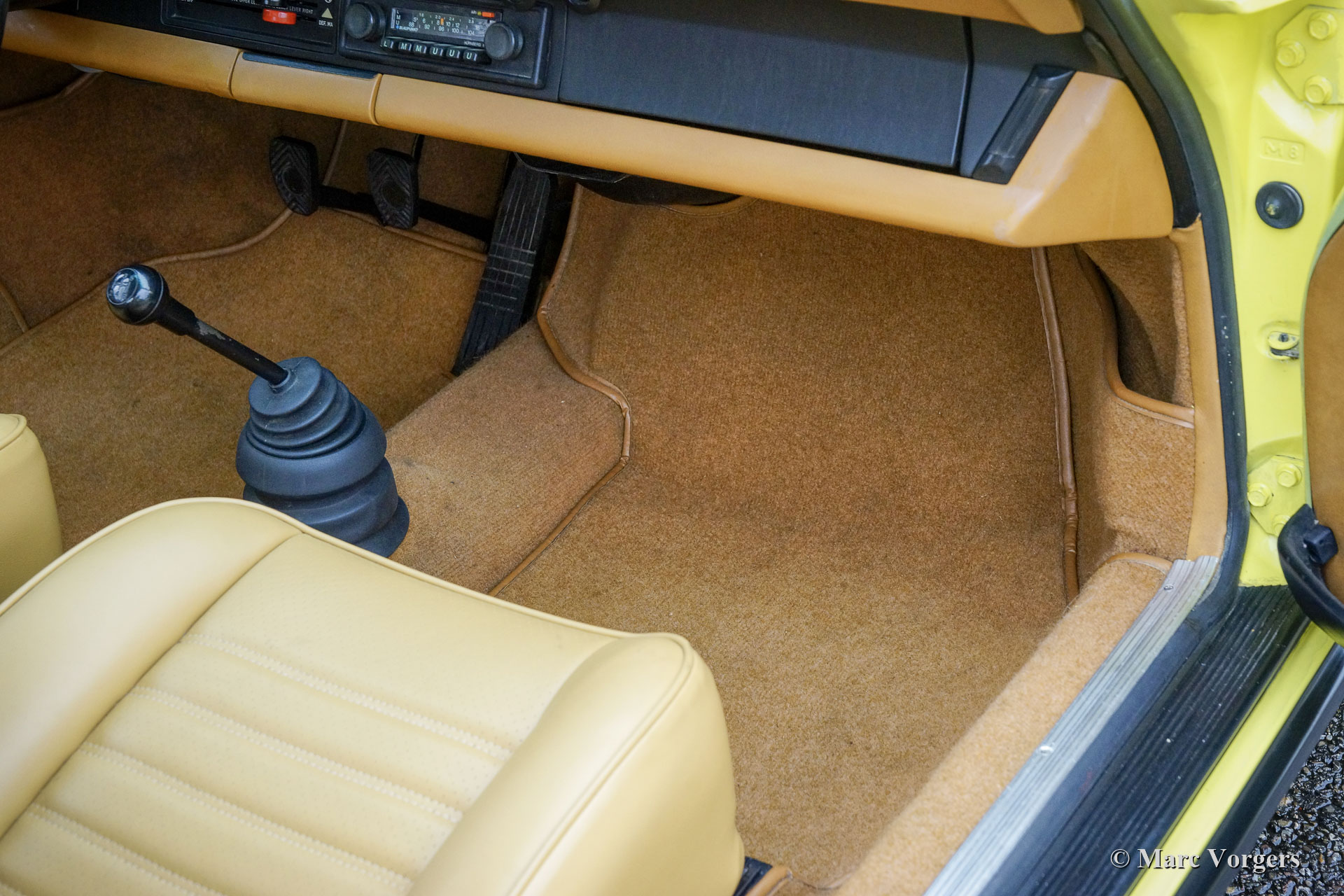 Porsche 912 E, Jahr 1976. Farbe zitronengelb (Porsche Farbcode 117-9-1) kombiniert mit einem dunkelbeigen Interieur. Dieser fantastische Porsche 912 E der G-Serie wurde in den Vereinigten Staaten (USA) neu verkauft. Dieses super originale „Blue Plate“-Auto wurde im Jahr 2017 vom zweiten kalifornischen Besitzer gekauft. Anschließend wurde der Porsche in die Niederlande verschifft, wo das Auto rezent eine perfekte und professionelle Neulackierung in der Originalfarbe erhielt. Fotos der Arbeiten sind vorhanden, ebenso Fotos des Autos vor der Neulackierung. Der gesamte Lack im Kofferraum, in den Türen und im Motorraum ist noch original und in einem wunderbaren Zustand. Die originalen Werksaufkleber inklusive Fensteraufkleber sind noch vorhanden. Die Unterseite ist komplett original. Die Innenausstattung ist in einem sauberen und wunderschönen neuwertigen Zustand, die vorderen Sitzbezüge wurden irgendwann erneuert. Von neuem hat dieser wundervolle Porsche 912 E nur 92.000 Meilen gefahren, das Auto läuft, fährt und handhabt sich perfekt. Dieser Porsche 912 E zeigt alle originalen Details und das Auto ist ab Werk mit den begehrten 15-Zoll-Fuchs-Rädern ausgestattet. Das Auto ist weiter versehen von einem zeitgemäßen Blaupunkt Nürnberg Radio mit UKW, dem originalen Lenkrad, Reserverad, Werkzeugsatz und den originalen Bedienungs- und Servicehandbüchern. Der Porsche 912 E ist ein seltenes Auto, 1975 und 1976 wurden nur 2000 Exemplare gebaut, ein sehr begehrter Oldtimer. Dieser super originale Porsche hat eine EU-Zulassung, das Auto kann in jedem Land der Welt importiert und zugelassen werden.