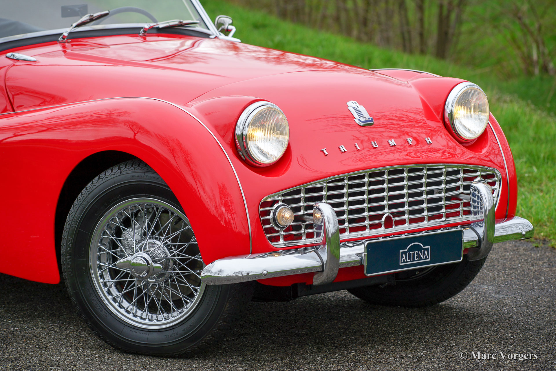 In the year 1957 the Triumph TR3a was presented. Again Triumph changed the grille (wider, covering the entire width of the car). Also the headlamps were placed a little backwards and door handles were fitted. Very short after the introduction of the TR 3a the Triumph TR 3b was introduced, the only change was the larger cylinder capacity of the engine.