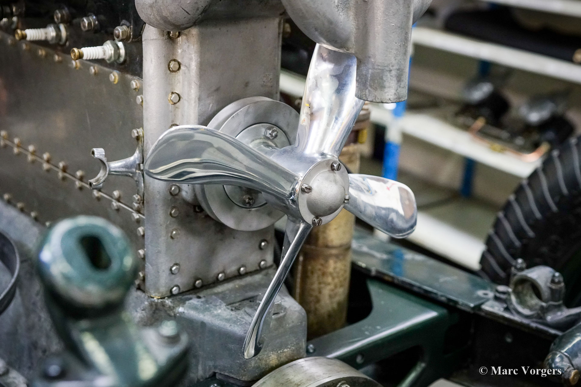 The Bentley 3 Litre was W.O. Bentley’s first design. The car was presented in 1919 but the first cars were sold in 1921. The four cylinder cars of rugged construction where in a class of their own for they combined the size and comfort of the big tourers and saloons with the road holding, and speed of the smaller sports- and racing cars. The Bentley was a true owner-driver car for the sporting motorist and connoisseur. The Bentley car could be had in three different types which were designated with three different radiator badges*. Red badge: short chassis speed model, Blue badge: the early short and then long chassis type for bespoke bodywork, Green badge: very rare and used for about eighteen 100 mph. These Green badge car won at Le Mans in 1924 and 1927 (Old Number Seven.) The 3-Litre was built from 1919 until 1929.