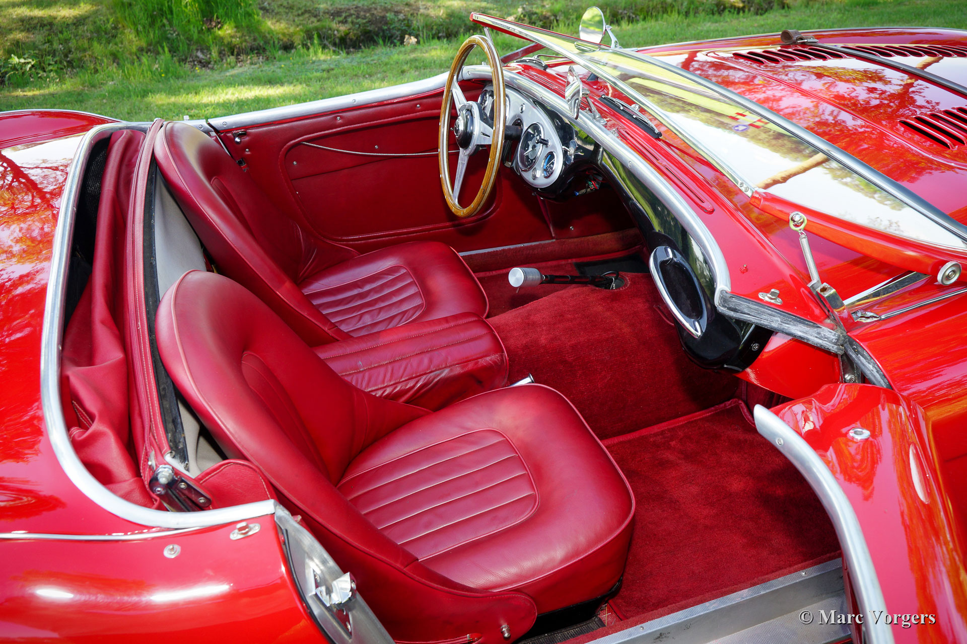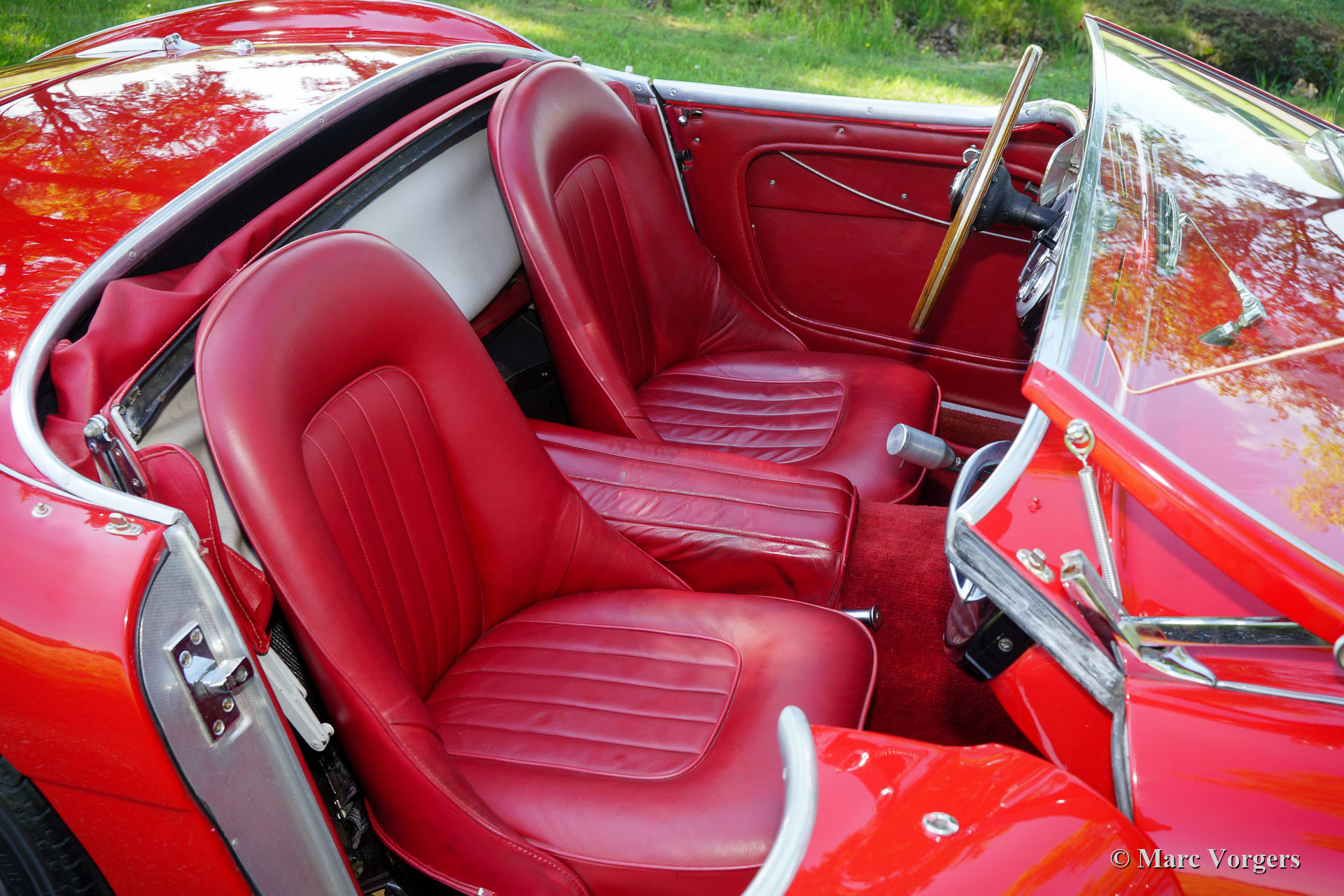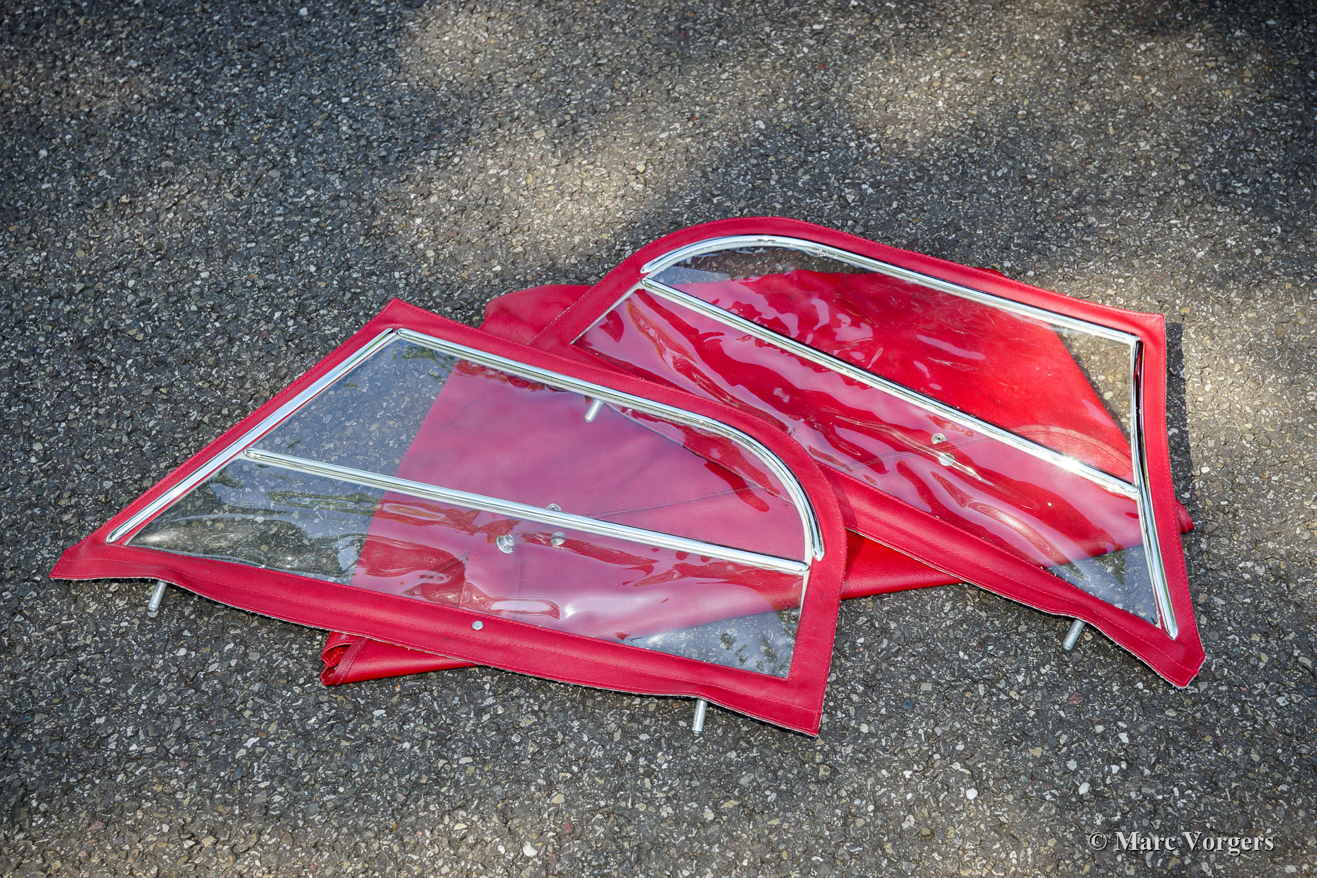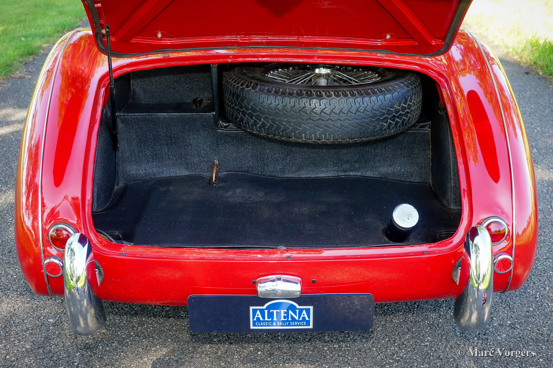 The former Healey models were more Spartan and featured fully detachable soft tops with separate side screens which could be stowed away in the booth.