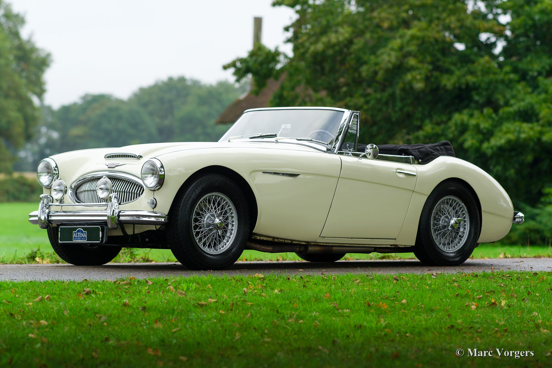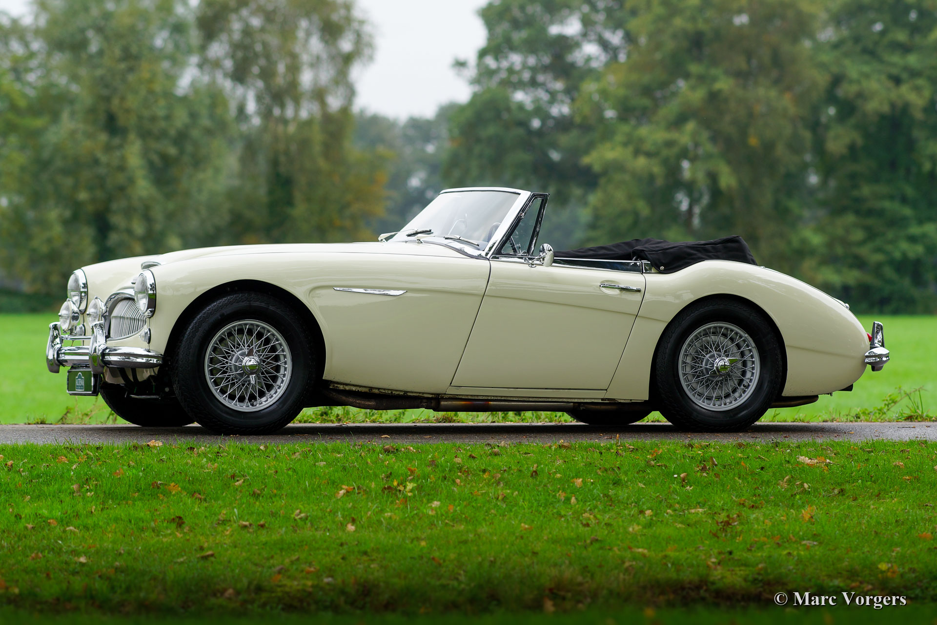 Austin Healey 3000 Mk III, Jahr 1964. "Matching numbers“, ein Heritage-Zertifikat zur Bestätigung liegt vor. Farbe „Old English White“ kombiniert mit einem schwarzen Interieur und schwarzem Teppich. Schwarzes Mohair Verdeck und schwarze Mohair Haube. Dieser wundervolle „Big Healey“ wurde in den USA neu verkauft, im Jahr 2014 wurde das Auto in die Niederlande importiert. Nach der Ankunft in den Niederlanden wurde das Auto restauriert. Eine Datei mit Wiederherstellungsrechnungen ist vorhanden. Dieser Austin Healey ist in einem sehr guten Zustand und das Auto fährt perfekt! Der Maschinenraum ist wunderschön detailliert. Das Auto ist ausgestattet mit overdrive, silber lackierten Speichenrädern, Vredestein Classic-Reifen, Lucas SFT576 Nebelscheinwerfern vorn, einem Edelstahl-Auspuff und dem Originallenkrad. Dieser wunderbare „Big Healey“ ist bereit, in vollen Zügen genossen zu werden!