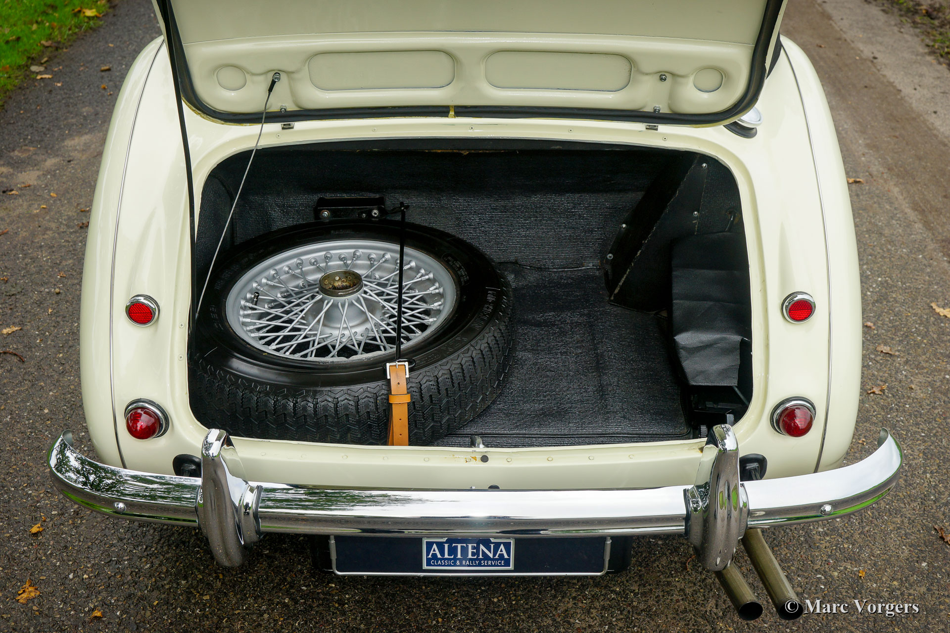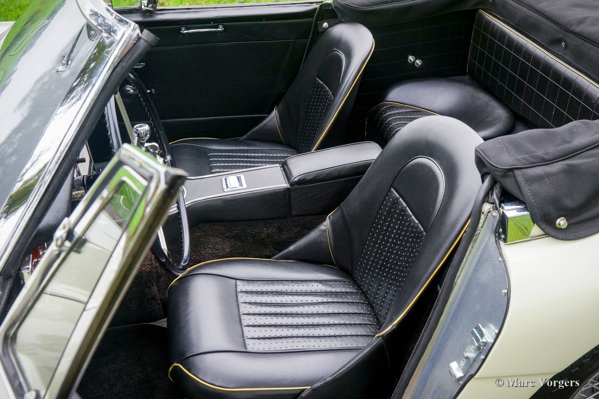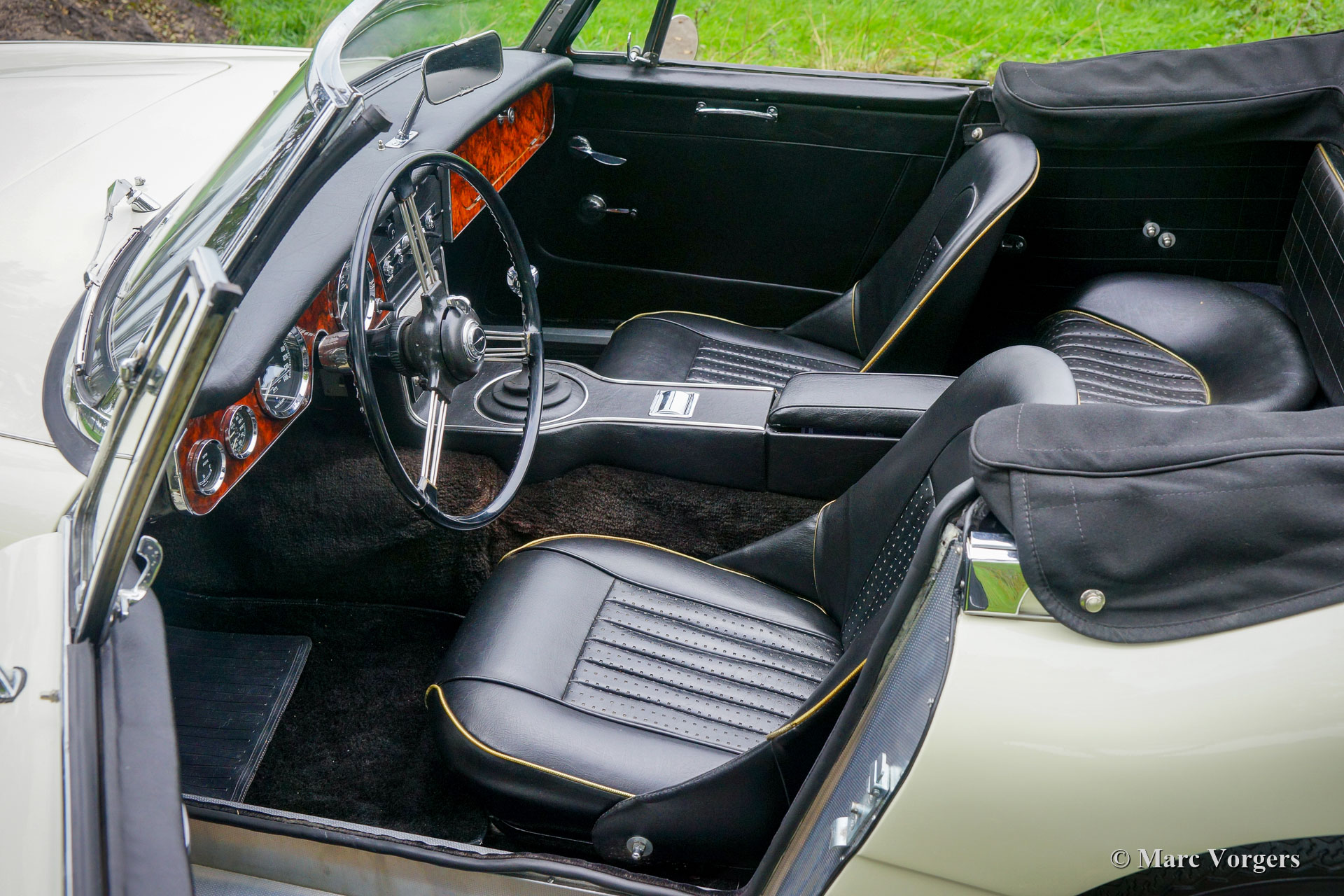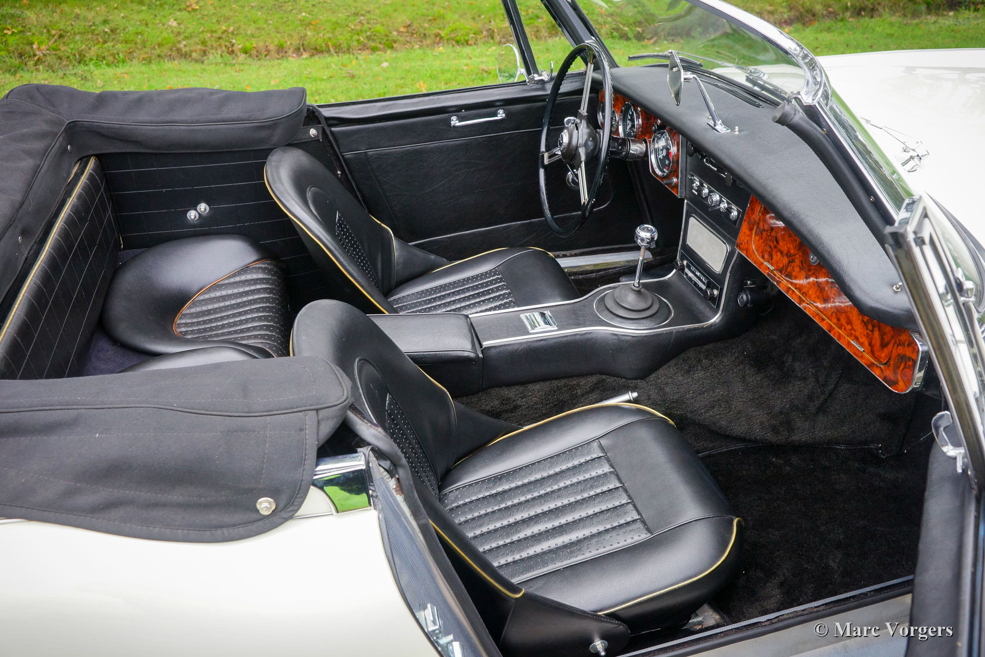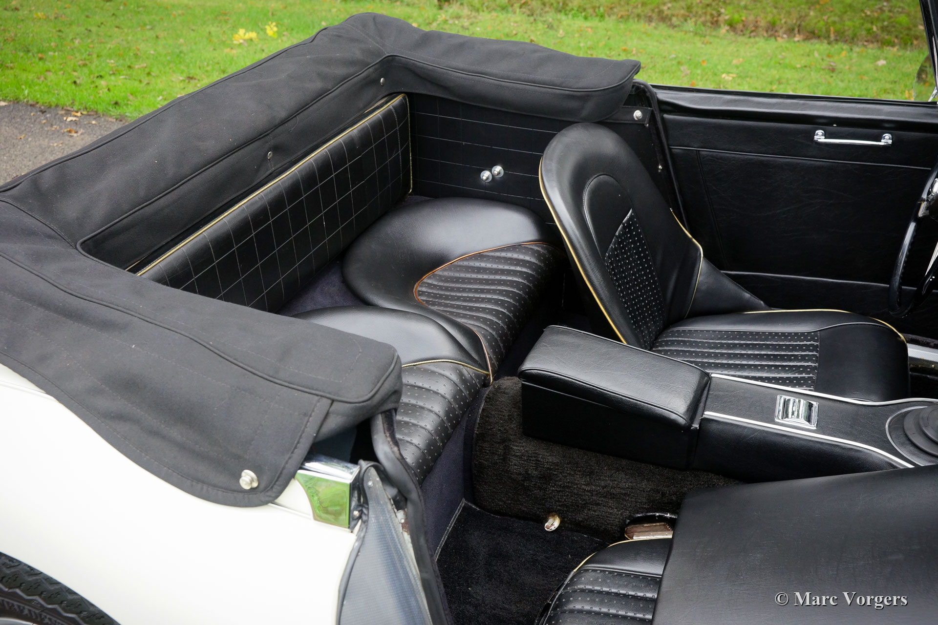 The former Healey models were more Spartan and featured fully detachable soft tops with separate side screens which could be stowed away in the booth.
