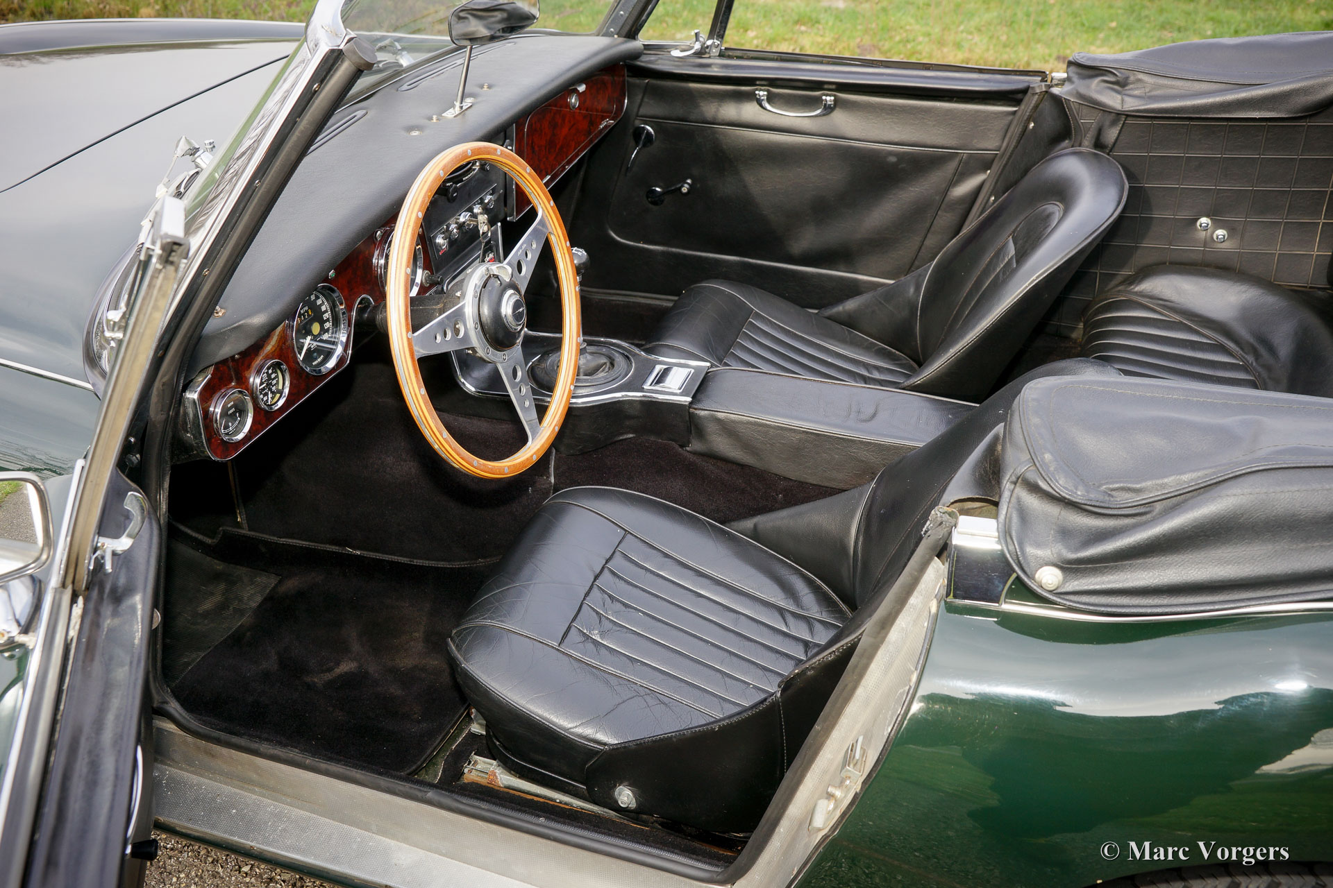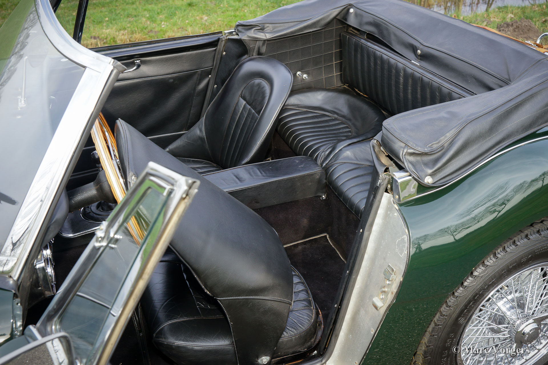 The former Healey models were more Spartan and featured fully detachable soft tops with separate side screens which could be stowed away in the booth.