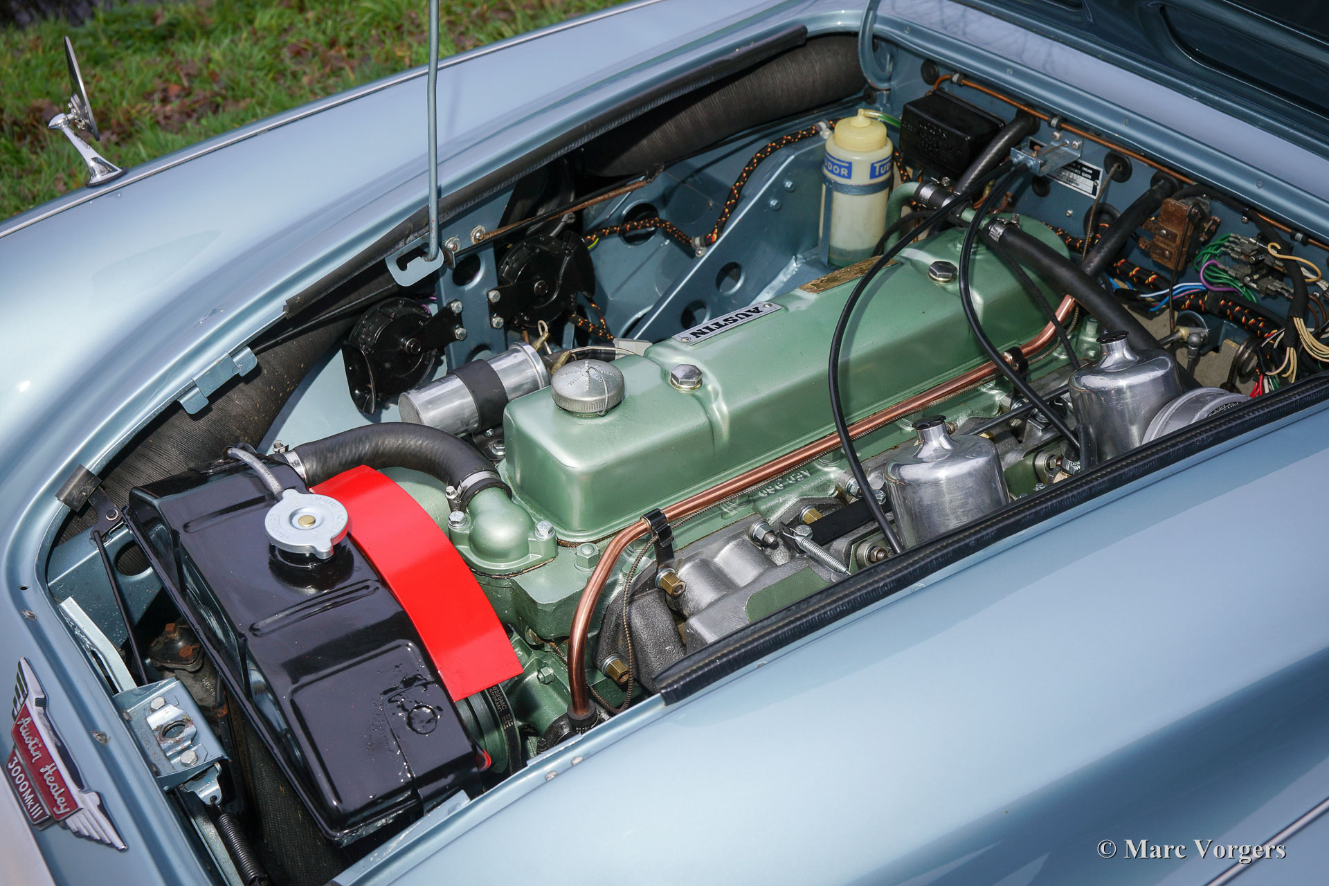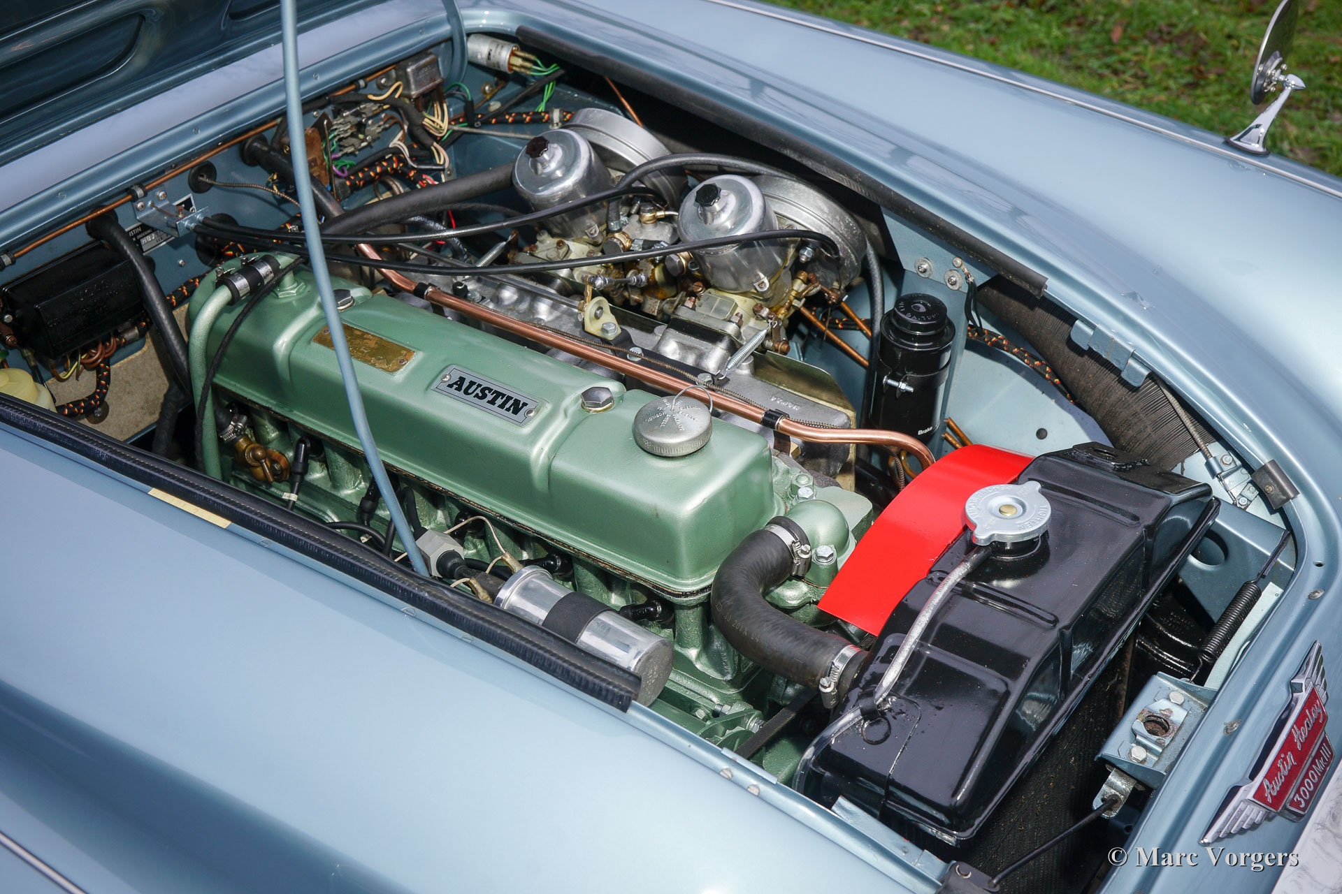 3000 is also known as the "Big Healey". The 3000 is a evolution of the 100/6 model. The engine was given a larger cylinder capacity of 2912 cc. and the 3000 was fitted with disc brakes at the front wheels. This first Austin Healey 3000 is currently known as the 3000 MK I model.