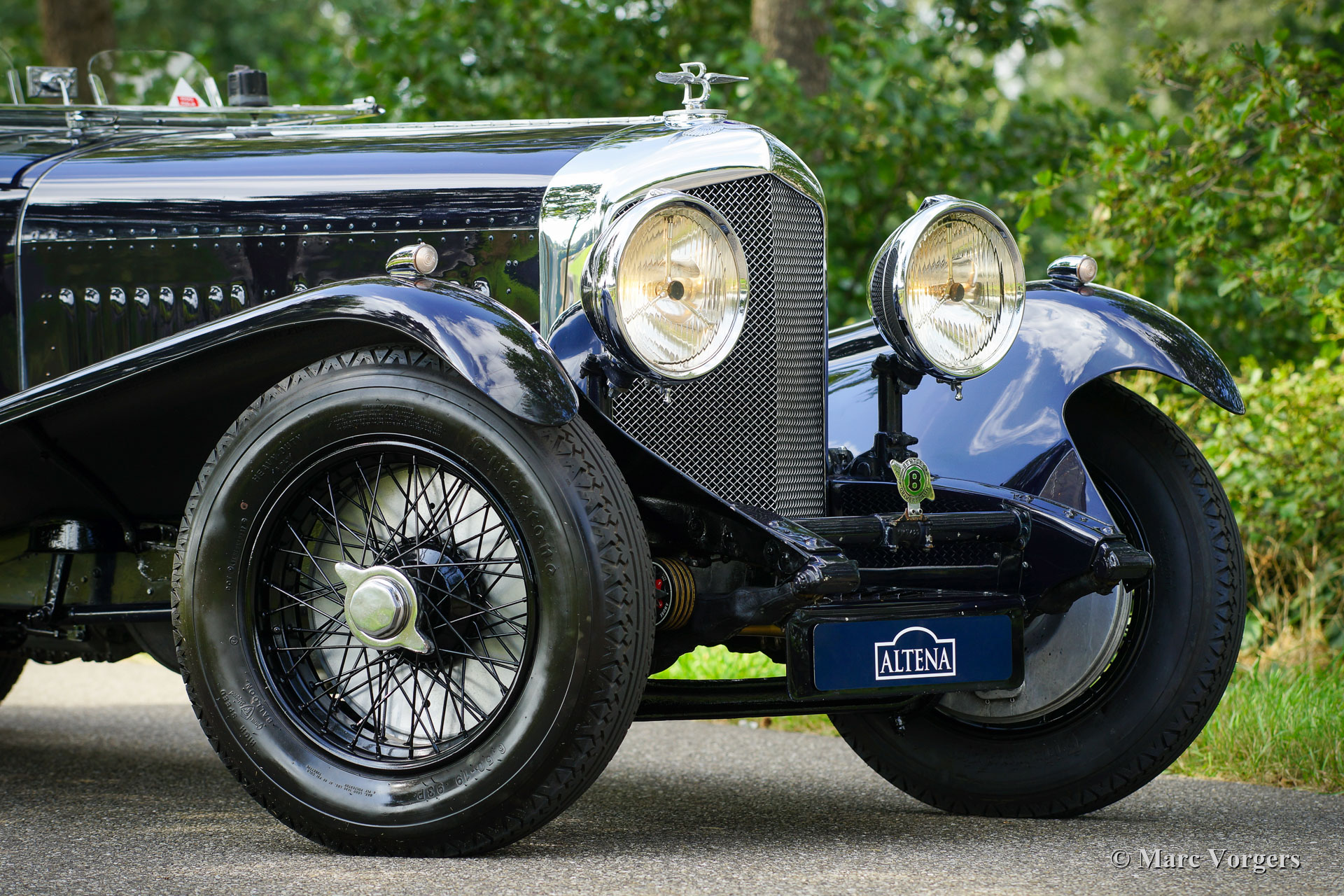 The Bentley 3 Litre was W.O. Bentley’s first design. The car was presented in 1919 but the first cars were sold in 1921. The four cylinder cars of rugged construction where in a class of their own for they combined the size and comfort of the big tourers and saloons with the road holding, and speed of the smaller sports- and racing cars. The Bentley was a true owner-driver car for the sporting motorist and connoisseur. The Bentley car could be had in three different types which were designated with three different radiator badges*. Red badge: short chassis speed model, Blue badge: the early short and then long chassis type for bespoke bodywork, Green badge: very rare and used for about eighteen 100 mph. These Green badge car won at Le Mans in 1924 and 1927 (Old Number Seven.) The 3-Litre was built from 1919 until 1929.