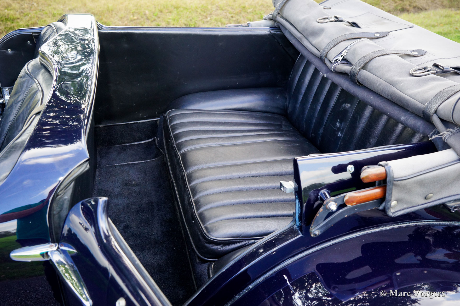 Bentley 8-Liter, Jahr 1930. Fahrwerk, Motor und Lenkgetriebe haben Werksoriginale passende Zahlen (‚Matching Numbers‘). Farbe sehr dunkelblau kombiniert mit einer schwarzen Lederausstattung und schwarzem Teppich. Graues Mohair Verdeck und graue Persenning. Dieser superlative Bentley 8-Liter wurde im Vereinigten Königreich neu an Mr. R. Rowley verkauft. Das Auto war ausgestattet ab Werk ausgestattet mit einer viertürigen Sportlimousine Karrosserie der von der Carlton Carriage Company hergestellt war. Spätere Besitzer waren Herr J.H. Dudley-Ward und Herr R.M.R. Eckard. Im Jahr 1965 wurde das Auto mit einer neuen viersitzigen offenen Tourer-Karosserie von der Firma Hoffmann & Burton präsentiert. Die Präsentation nach dem Umbau fand während des Bentley Clubtreffens in Kensington Gardens statt, bei dem das Auto zum Event-Champion erklärt wurde. 2013 wurde der Bentley von einem Sammler aus den Niederlanden gekauft. Das Auto ist derzeit in den Niederlanden zugelassen, die originalen britischen Nummernschilder mit der Nummer GY 6838 sind noch vorhanden. Dieser beeindruckende und seltene Bentley 8-Liter wird in mehreren Bentley-Büchern erwähnt, beschrieben und abgebildet. Im Buch „Bentley 50 Years of the Marque“ (Johnnie Green, publiziert in 1969) trifft man auf Seite 130 ein Foto in aktueller Form. Auch trifft man das Auto im Buch „Bentley: The Vintage Years“ (Michael Hay, publiziert 1997), und in der Broschüre „The How and Where of the 8-Litre Bentleys“ von Stanley Sedgwick, erschienen im Jahr 1972. Dieser prächtige Bentley 8-Liter ist in einem sehr guten und wunderbaren Vintage-Zustand. Das Auto fährt, lenkt, schaltet und bremst hervorragend. Der riesige 8-Liter Sechszylinder Motor zeigt unglaubliche Details, klingt wie ein schweres Gewitter und liefert ein enormes Drehmoment. Der Motor ist versehen von drei S.U. WB9002 Vergaser und die original Bosch Zündung. Zwischen Oktober 1930 und Dezember 1932 wurden nur hundert Bentley 8-Liter-Produktionswagen ausgeliefert. Dies ist eine seltene Gelegenheit, einen seltenen Bentley 8-Liter mit einer wunderbar dokumentierten Geschichte und Provenienz zu erwerben.