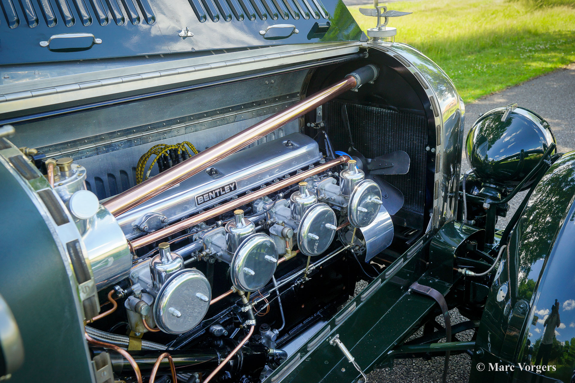 Bentley motorcars won the famous 24 hours of Le Mans race in the years 1924, 1927, 1928, 1929 and 1930. The years they did not win the long distance reliability race for production cars they finished second or third. Not only successes at Le Mans were counted but also victories in other long distance events like the Brooklands 500 mile race. The racing successes were mainly due to the rugged built of the cars and the meticulous preparation of the cars. In every race they learned and had the cars improved on small but important details (Head lamp covers, mesh gauze on the petrol tank, quick filler caps for engine oil and radiator, driver adjustable brakes.)