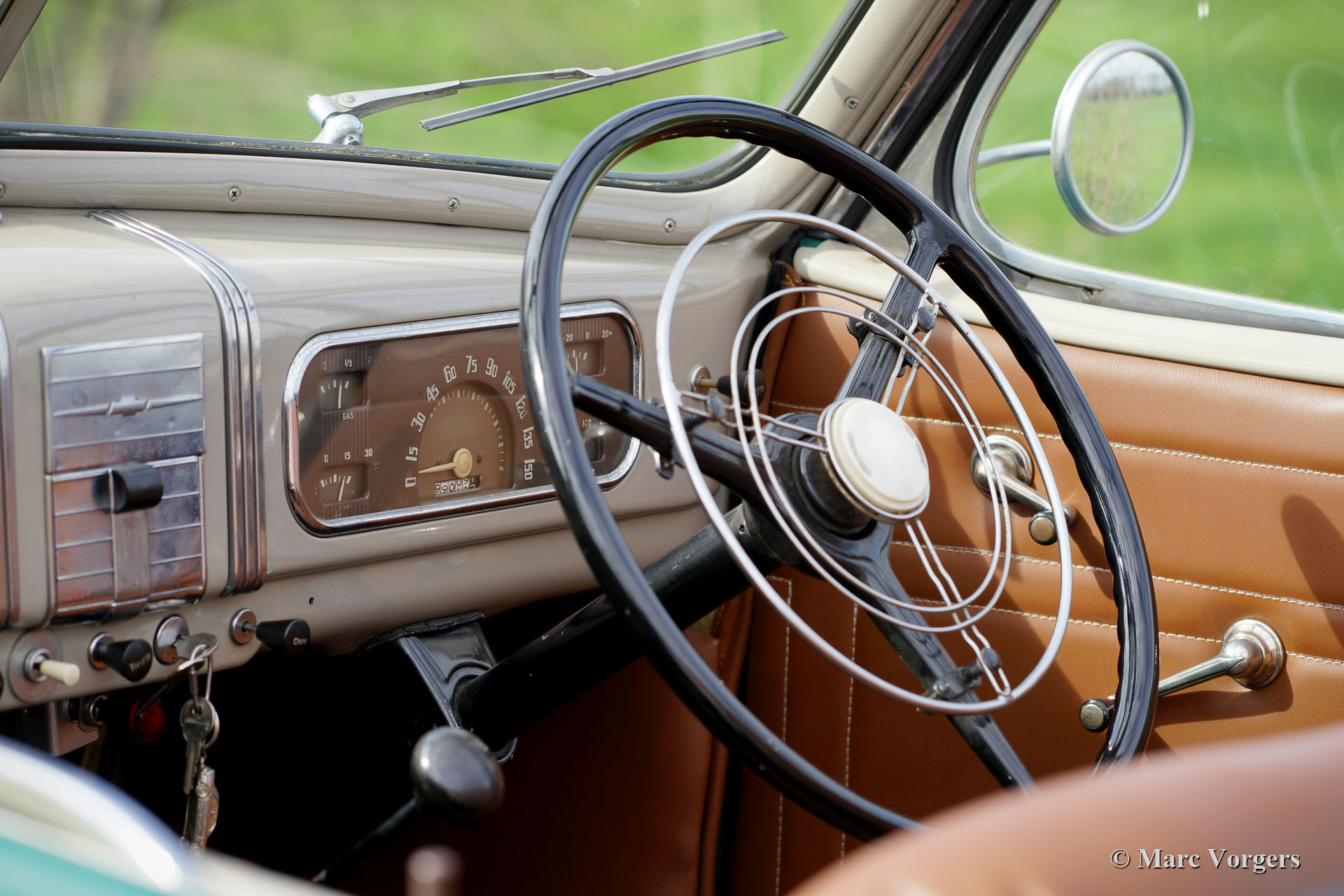 Chevrolet Master Roadster, Jahr 1937. Farbe grün kombiniert mit einer natürlichen braunen Lederausstattung. Hellgraues Verdeck mit einer Reißverschluss-Heckscheibe und einer schwarzen Hauben Abdeckung. Dieser fantastische Chevrolet Master Roadster befindet sich in einem sehr guten und sehr originellen Zustand, eine echte Zeitkapsel! Das Auto zeigt eine herrliche und leichte Vintage-Patina. Die ursprünglichen Details sind eine Freude; Beobachten Sie die Armaturenbrettanzeigen, das Lenkrad, die Lampen, die Räder, die Schmutzfänger ... Einfach wunderbar! Eine Besonderheit ist der "Dickey Seat" auf der Rückseite, auf die zwei zusätzlichen Passagiere einen Platz finden können! Dieser Chevrolet Master Roadster fährt perfekt, der Sechszylinder läuft wunderbar und das Drei-Gang-Getriebe schaltet perfekt. Dieser feine Chevrolet Master wird komplett mit dem Original-Fahrerhandbuch geliefert. Dieses schwer zu findendem Auto kann in jedes Land importiert werden.
