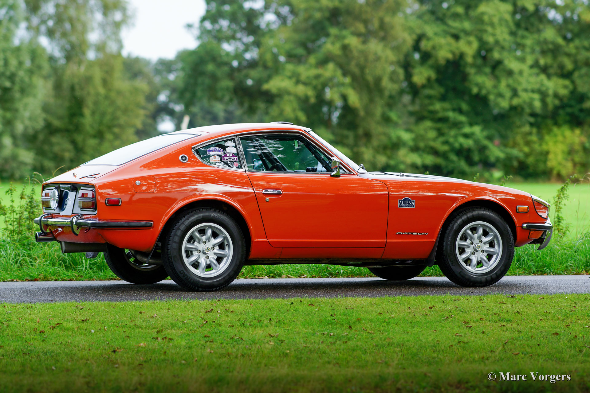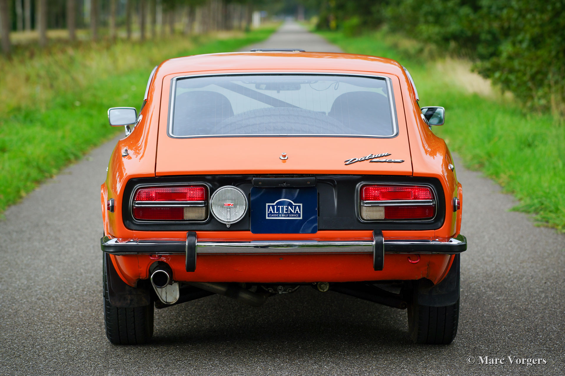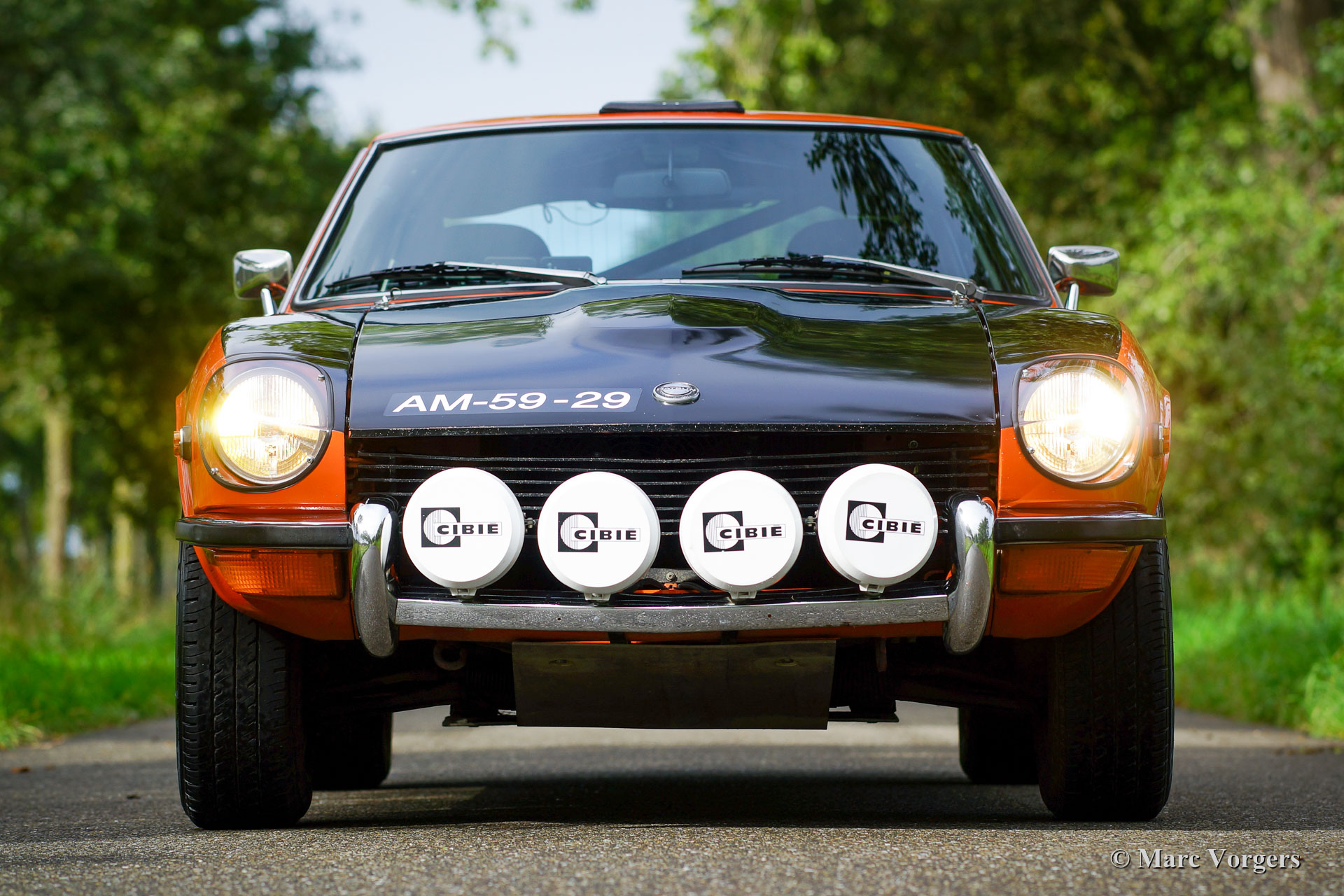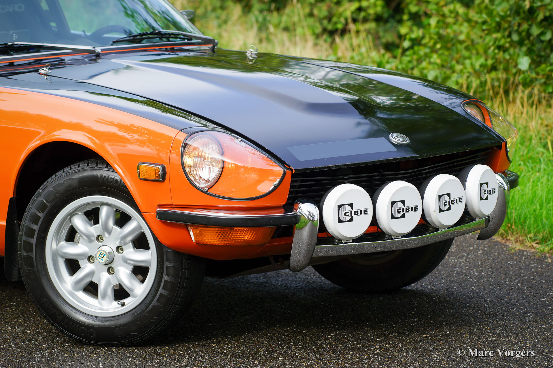 Datsun 240Z, Baujahr 1971. Fahrgestellnummer HLS30-2108X, Motornummer L28 01335X. Farbe orange mit einer schwarzen Motorhaube kombiniert mit einem schwarzen Kunstleder Innenraum. Dieser fantastische Datsun 240Z wurde in den USA neu verkauft. Das Auto wurde im Jahr 2008 in die Niederlande importiert. Im Jahr 2009 beauftragte der Eigentümer Altena Classic Service mit der umfangreichen Restaurierung, Überholung und Rallyevorbereitung des 240Z. Alles wurde überholt und oder erneuert. Das Auto wurde im Detail für das Rallyefahren mit einer erhöhten Federung, einem speziellen Kabelbaum, Koni-Stoßdämpfern und Federn rundum, einem 5-Gang-Getriebe, einem großen Aluminium-Benzintank, einem professionellen Überrollbügel, Recaro-Sitzen und 4-Punkt perfektioniert Sparco Sicherheitsgurte, zusätzliche Scheinwerfer und Abbiegelichter vorne und weiteres spezielles Rallye-Zubehör. Ein Fotobericht und Rechnungen über die Restaurierung und die Rallyevorbereitung liegen vor. Jetzt, zehn Jahre nach der Restaurierung, befindet sich der Datsun 240Z immer noch in einem sehr guten Zustand. Das Auto wurde pünktlich gewartet und das Auto fährt und klingt perfekt! Das Fahrerlebnis ist aufregend und es muss ein Vergnügen sein, mit diesem Datsun 240Z an historischen Rallye-Events teilzunehmen! Das Auto wird mit einem FIVA-Ausweis geliefert und kann in jedes Land der Welt exportiert werden. Dieser prächtige Datsun 240Z ist bereit für jedes Abenteuer in den Händen eines neuen Besitzers!