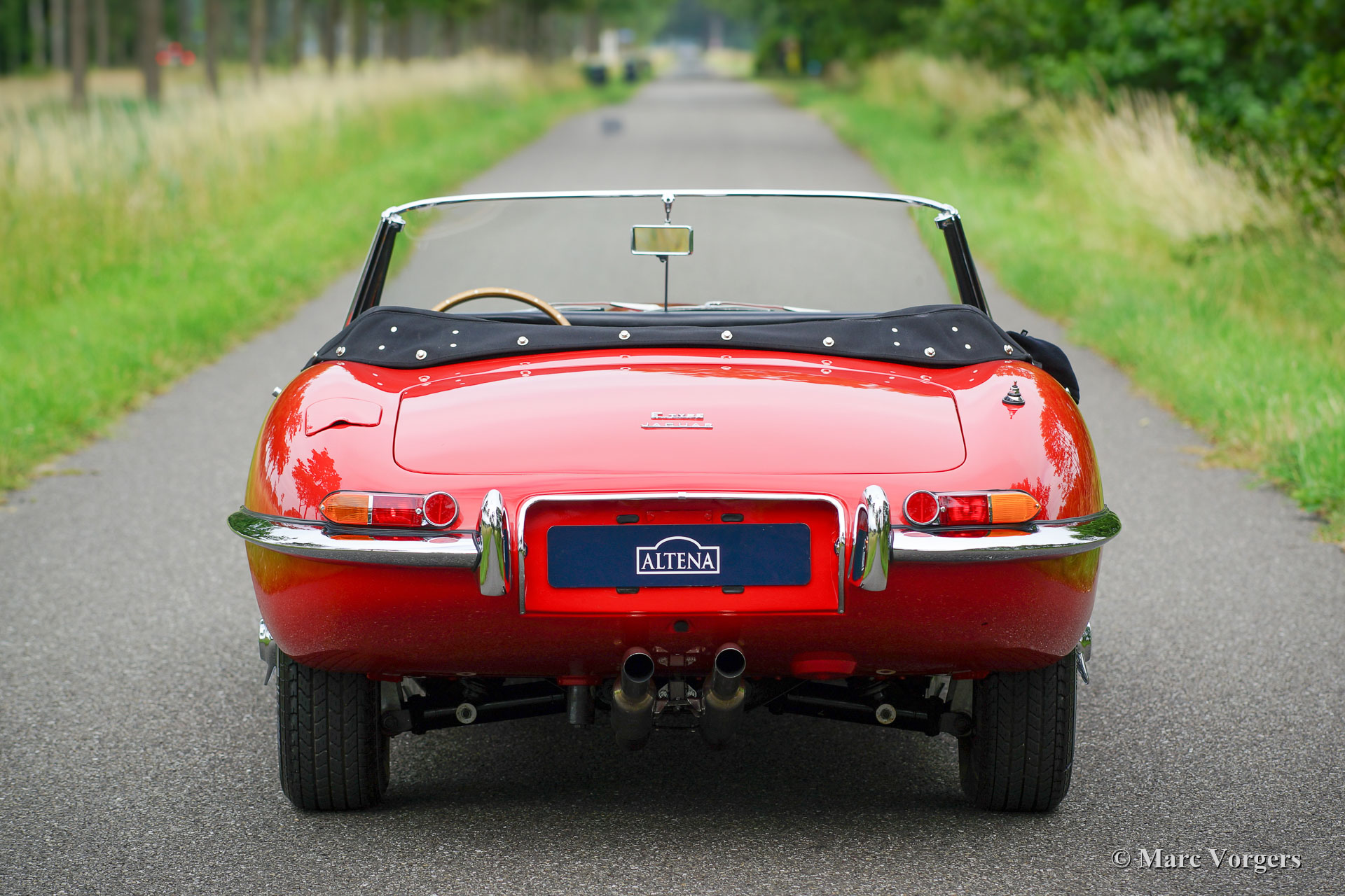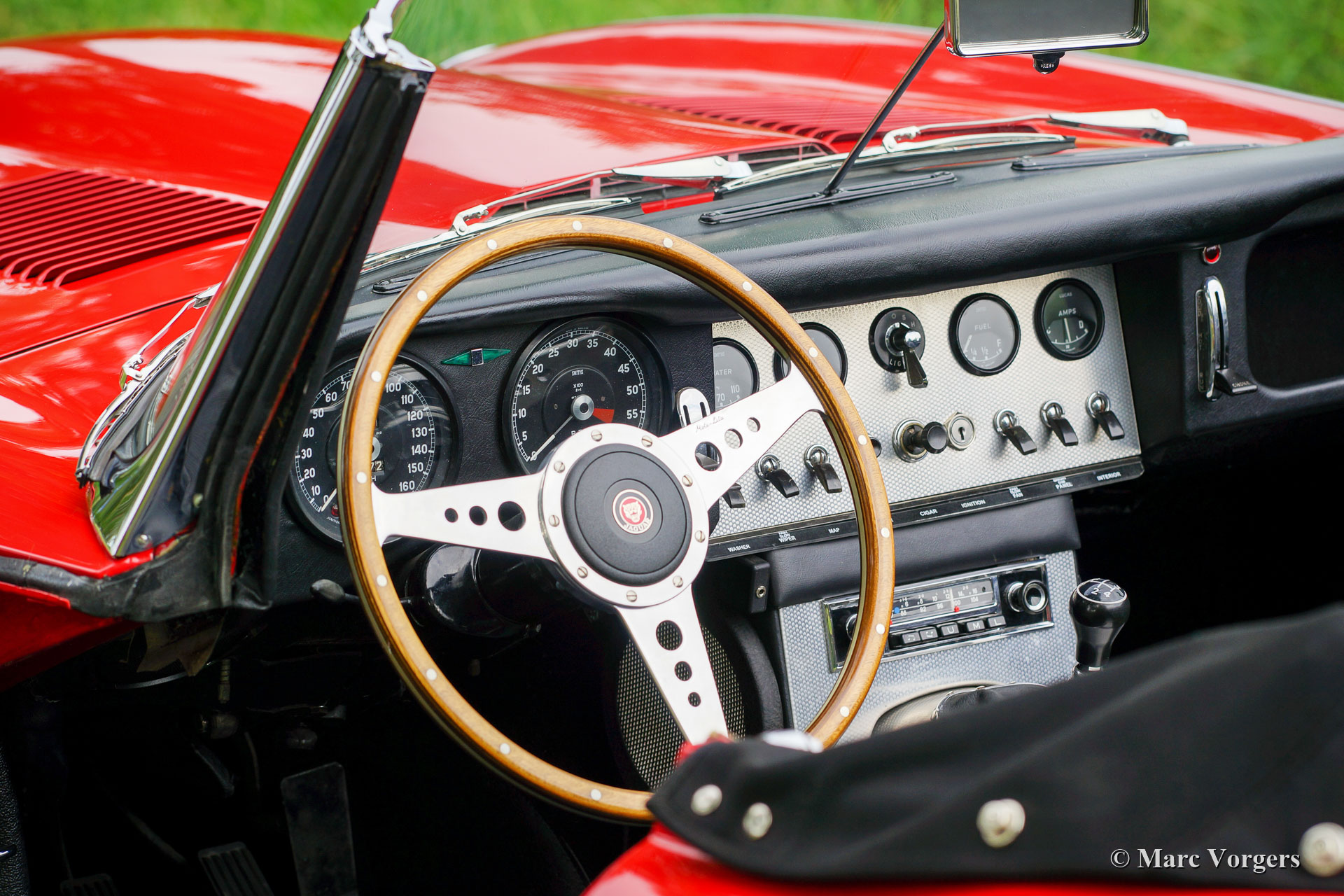 Der Jaguar E-Type OTS (Open Two Seater) wurde auch als „Roadster“ bezeichnet. Dieser ungeheure Jaguar E-Typ wurde in den Jahren 2015-2016 in Großbritannien umfassend restauriert. Das Auto ist in einem hervorragenden TOP Zustand (Concours) und das Auto fährt perfekt! Die Karosserie zeigt klare Linien und eine perfekte Passform der Paneele. Die Lackierung und das Chrom sind hervorragend! Das Auto ist wunderschön detailliert unter der Motorhaube und die Unterseite des Autos ist auch wie neu! Das Auto ist ausgestattet mit Chrom-Speichenrädern, einem MotoLita-Lenkrad mit Holz Kranz, einem Blaupunkt-Radio mit FM und einer Edelstahl-Abgasanlage. Das Auto ist sehr gut dokumentiert, alle Vorbesitzer sind bekannt und der ursprüngliche US-Titel ist noch vorhanden. Dies ist ein äußerst begehrter Jaguar E-Type Series 1 Roadster in einem hervorragenden Top-Zustand!