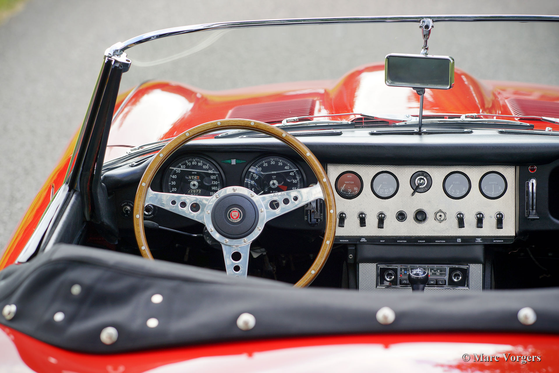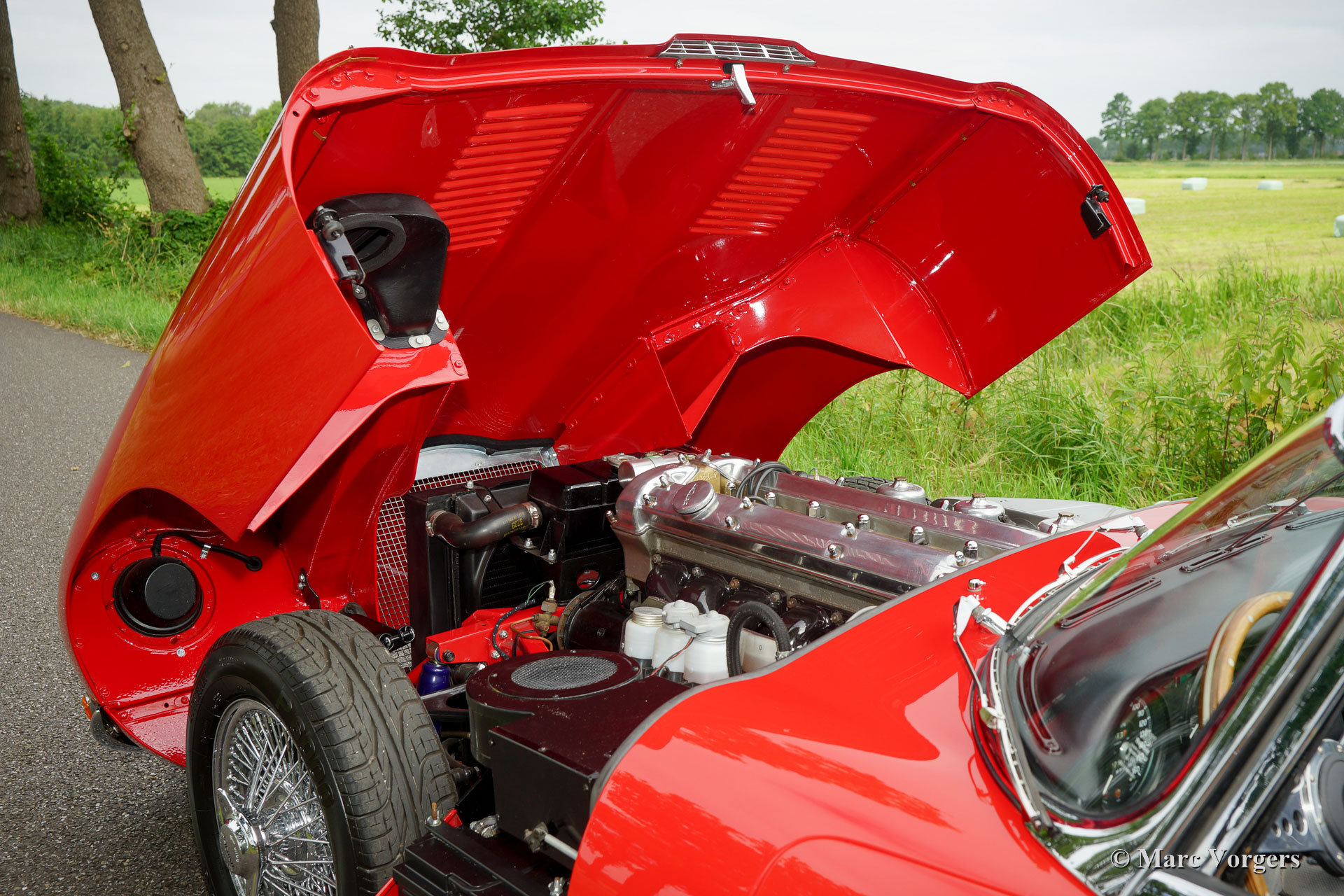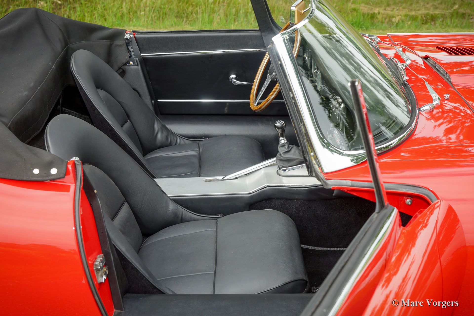 Jaguar E-Type 3,8 Liter OTS, jahr 1962. Fahrgestellnummer 87845X, Motornummer R7356-X, Karosserienummer R505X, Getriebenummer EB 646X JS; ‘Matching numbers and colours‘! Farbe Carmen rot kombiniert mit einem schwarzen Interieur und schwarzem Teppich. Schwarzes Mohair-Verdeck und Verdeck Abdeckung. Dieser fantastische Jaguar E-Typ stammt aus der begehrten ersten Serie, das Auto wurde am 16. November 1962 in New York, USA, neu verkauft. Die Jaguar E-Typen der Serie 1 verfügen über den sehr sportlichen 3,8-Liter-Reihensechszylinder mit drei SU Vergaser und der spezielle Innenraum mit Schalensitzen und dem mit Aluminium verkleideten Armaturenbrett.