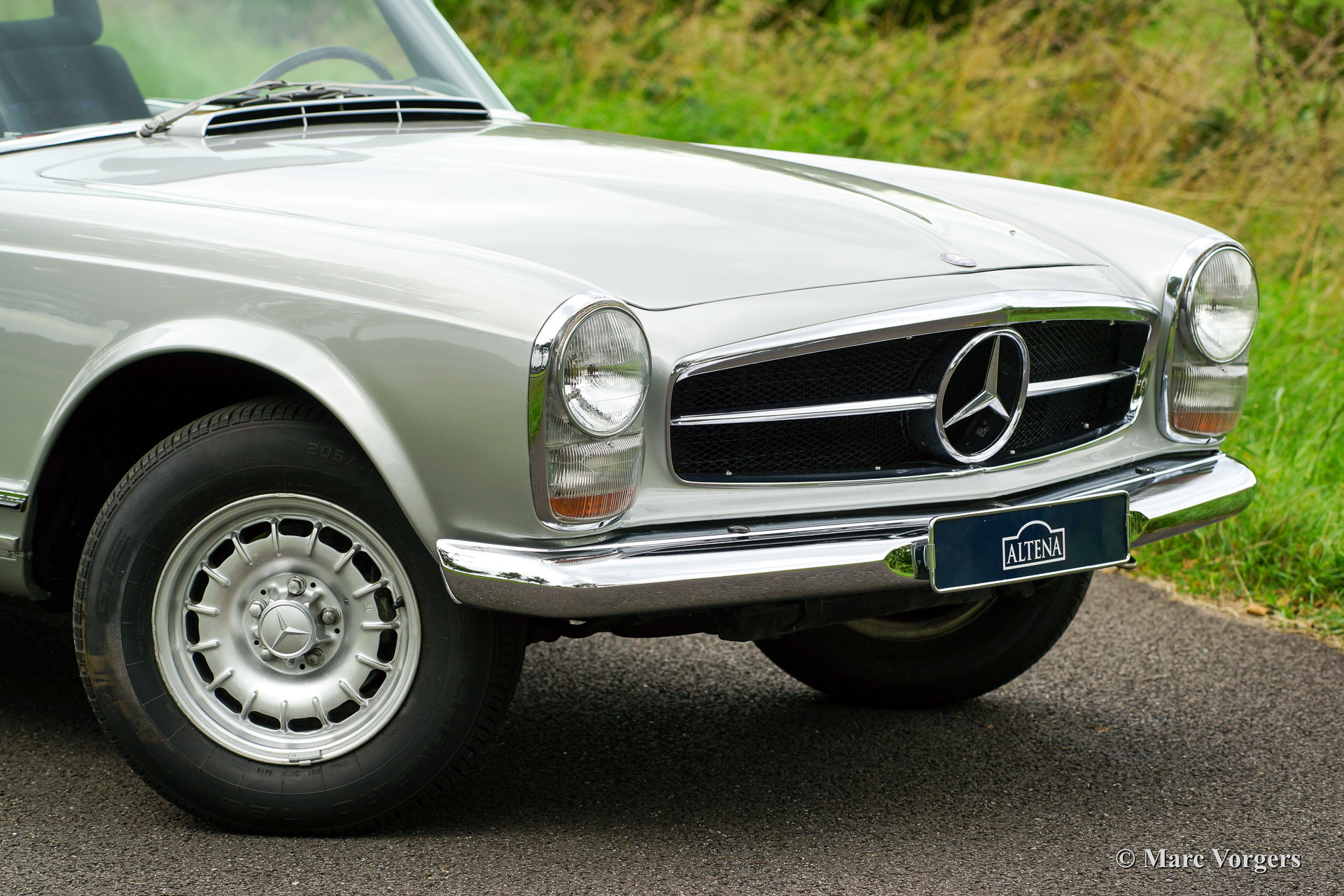 The Mercedes 250 SL was produced alongside the 230 SL from 1966 until 1968. The timeless, austere design that was first seen in the Mercedes 300 SE sedan in 1961, was continued in the 230 SL, the 250 SL and thereafter the 280 SL: many see these versions as the most beautiful Mercedes-Benz creations since the 1960s. The 250 SL is characterized by its refined, lively handling and by its very high constructive and technical quality. The car also offers much space, many comforts and practical conveniences. The open two-person roadster is also available with a hardtop, which changes the car into a closed coupe. The Mercedes-Benz 230 SL/250 SL/280 SL carried the nickname of 'Pagoda' because of the design of the hardtop.