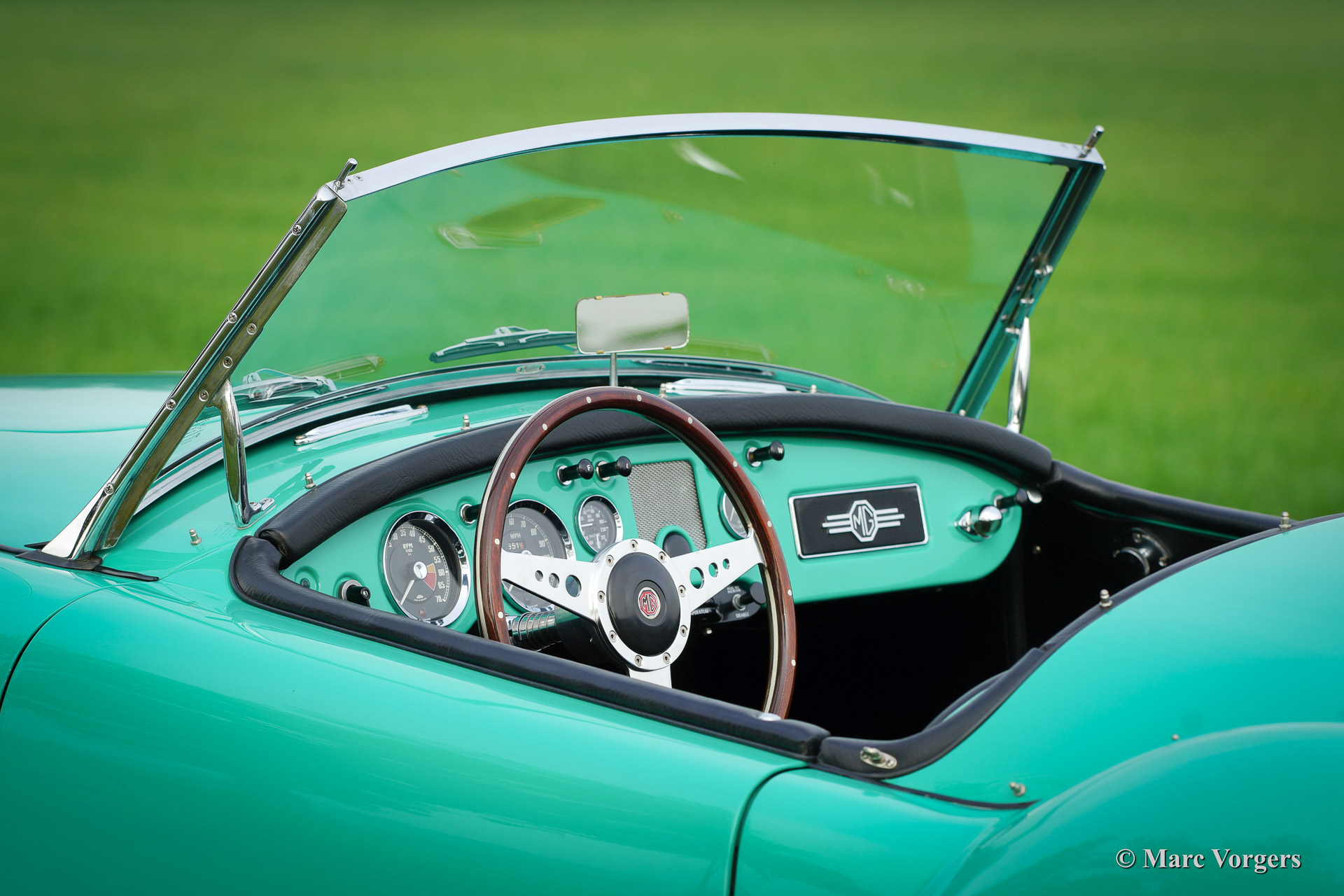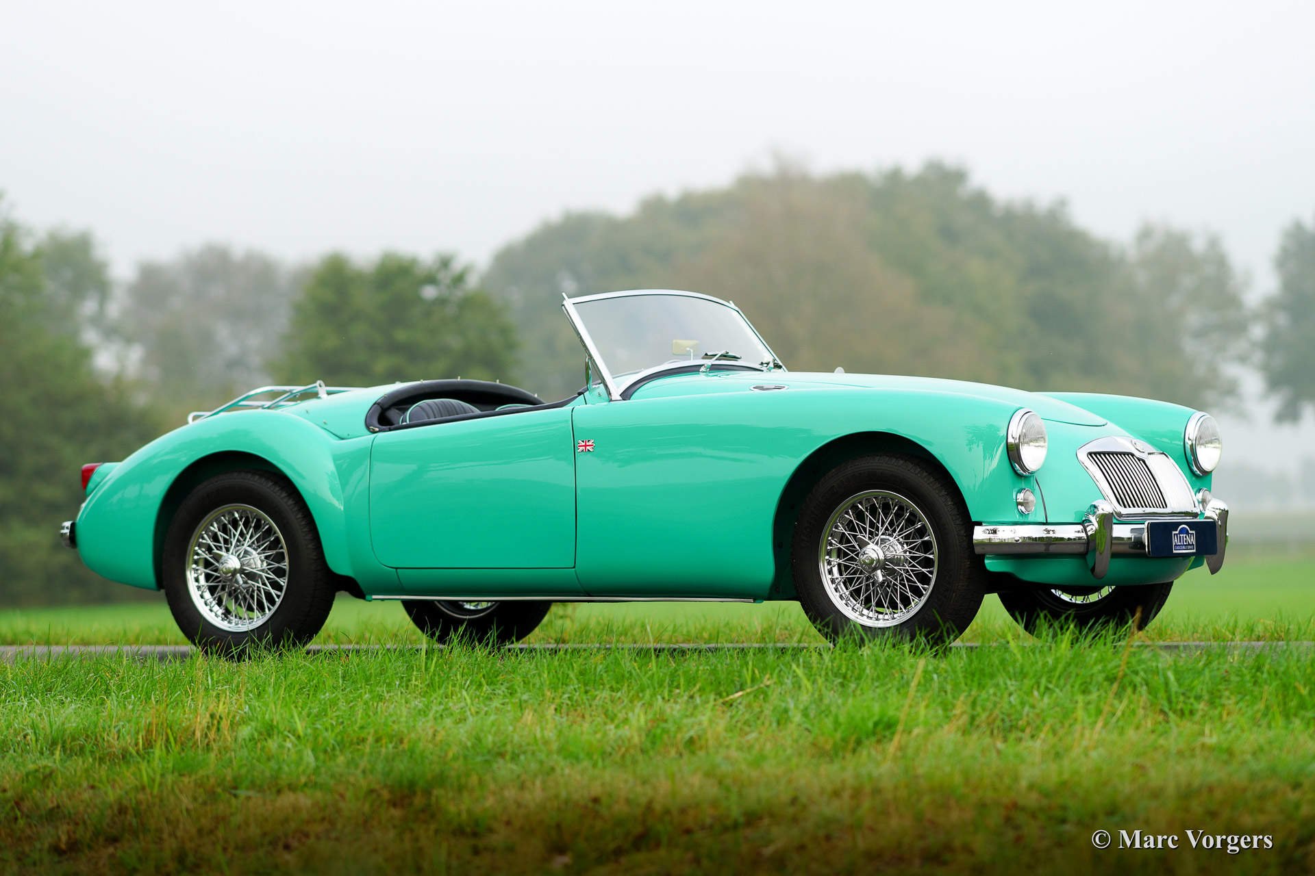 MGA 1500 Roadster, Baujahr 1959. Farbe ‚Ash green‘ (Island green) mit einem schwarzen Leder-Interieur getrimmt mit grüner Paspelierung. Schwarzes Verdeck und ‚tonneau cover‘. Dieses herrliche MGA ist in einem hervorragenden Zustand (concours) und das Auto fährt perfekt. Das Auto wurde ausgiebig zur Perfektion restauriert in den Jahren 2004-2006. Motor und Getriebe wurden überholt, Tacho, Drehzahlmesser usw. wurden überholt / restauriert, des Chrom wurde erneuert, neue Kabelbaum montiert, neues Interieur, alles überholt und / oder erneuert. Eine Fotoreportage der Wiederherstellung ist vorhanden. Das Auto ist ausgestattet mit Chrom Speichen Räder, ein Chrom-Gepäckträger, tonneau cover, ein Edelstahl-Auspuff und ein schönes Motolita Sportlenkrad mit Holzkranz!