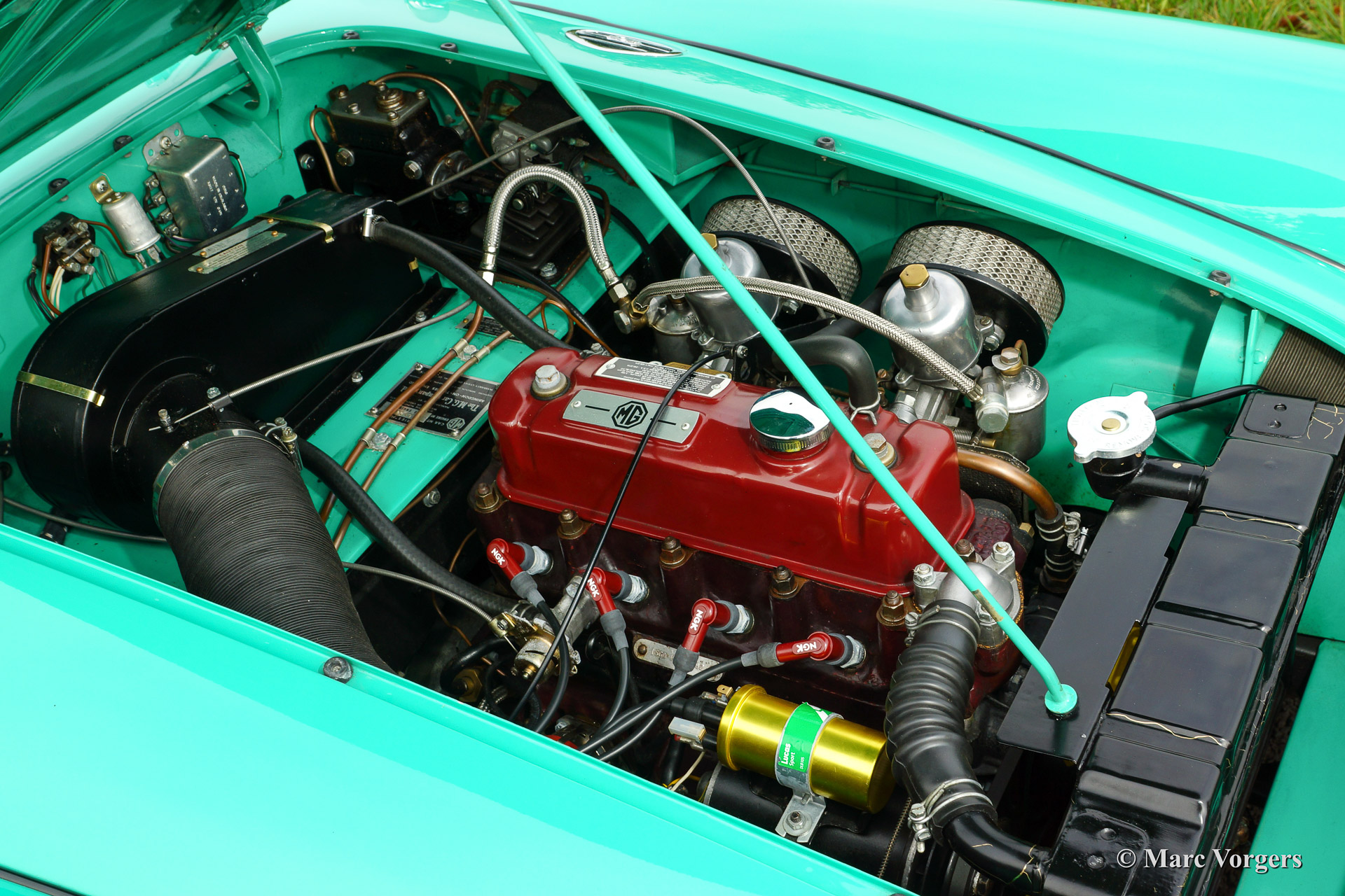 The year 1955 saw the introduction of the MGA. With this design the MG broke new grounds. After its predecessors MG TD and MG TF, which were largely based on the pre-war MG TB, it was a roadster with a very modern sporty design. Like its predecessors, the MGA was a great success and, like before, the greater part was sold in America. Until 1959, the MGA was equipped with a 1459 cc four-cylinder engine. From that year, the car was fitted with a 1588 cc four-cylinder. A 1622 cc four-cylinder engine replaced the 1588 cc. engine in 1961. The early MGA versions had very good drum brakes until 1959, but after that year, the MG A was equipped with disc brakes on the front wheels. The year 1962 saw the production of the MGA, the A 1600 Mk II. The MGB replaced this very popular British sports car, and was to develop the success of the MG A even further.