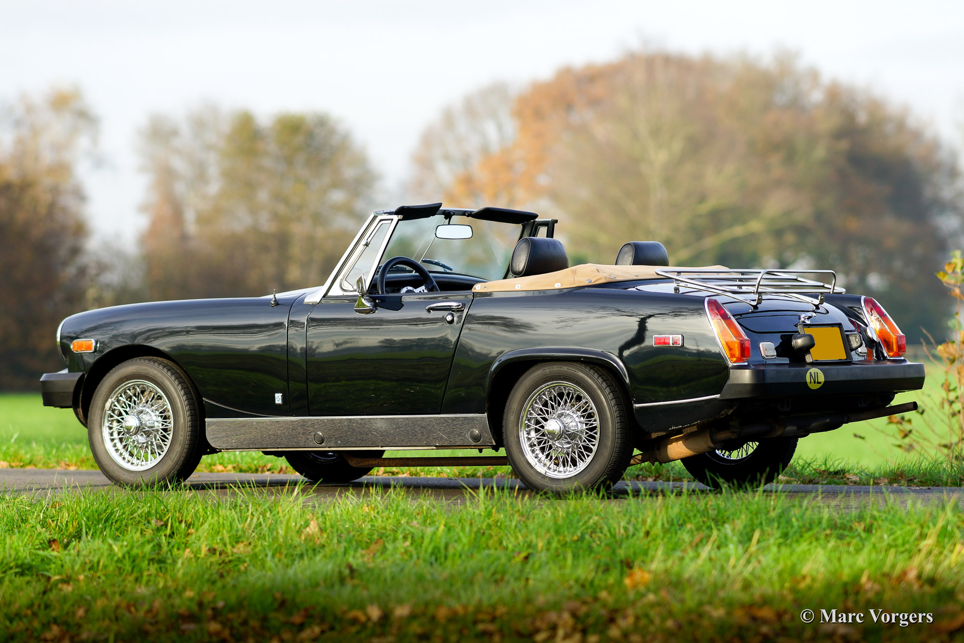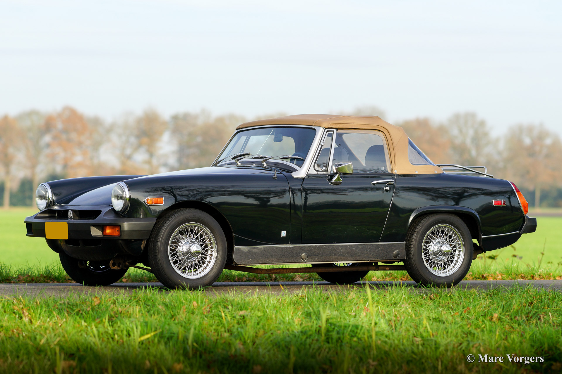 MG Midget 1500 (Mk IV), Jahr 1979. Fahrgestellnummer: GAN6UL2223XXX. Farbe sehr dunkel gruen, fast schwarz. Schwarz Kunstleder Interieur und schwarzen Teppich. Beige Verdeck und Verdeck Abdeckung (neu). Diese sehr schöne MG Midget ist in sehr gutem Zustand und das Auto fährt herrlich. Dies ist der ideale classic um die Charme des offenen britischen Touren kennen zu lernen! Der MG Midget bietet reichlich Innenraum und eine praktische Kofferraum. Das Verdeck ist einfach zu schliessen und nach unten zu klappen und die Wetter Ausrüstung ist sehr effektiv gegen die Elemente, übermäßiger Sonne oder regen. Das MG ist gut gewartet und gepflegt. Das Auto ist ausgestattet mit Chrom Speichen Räder, eine Chrom-Gepäckträger, eine Chrom Ventildeckel und eine sehr schöne klassische Sportlenkrad.
