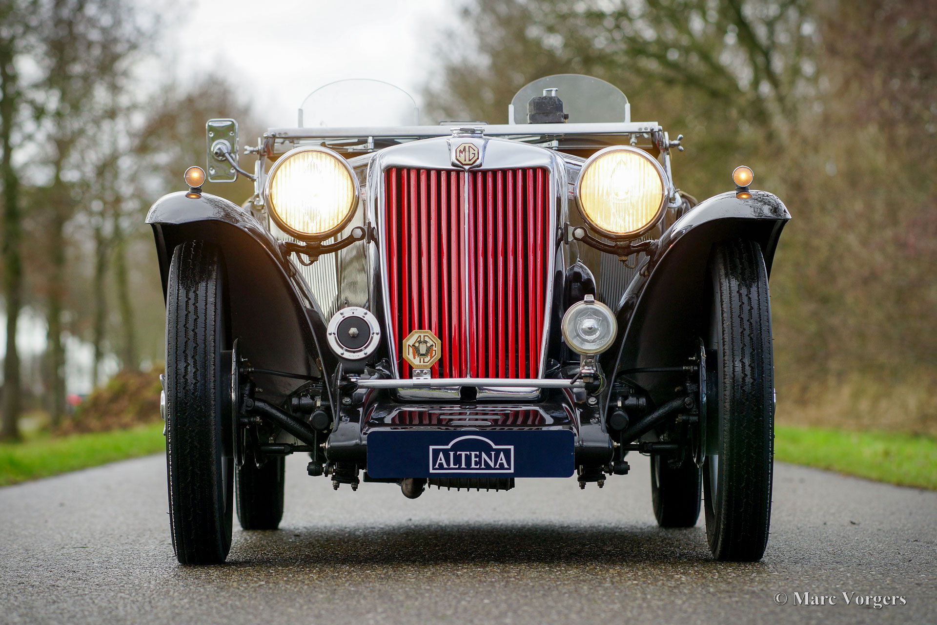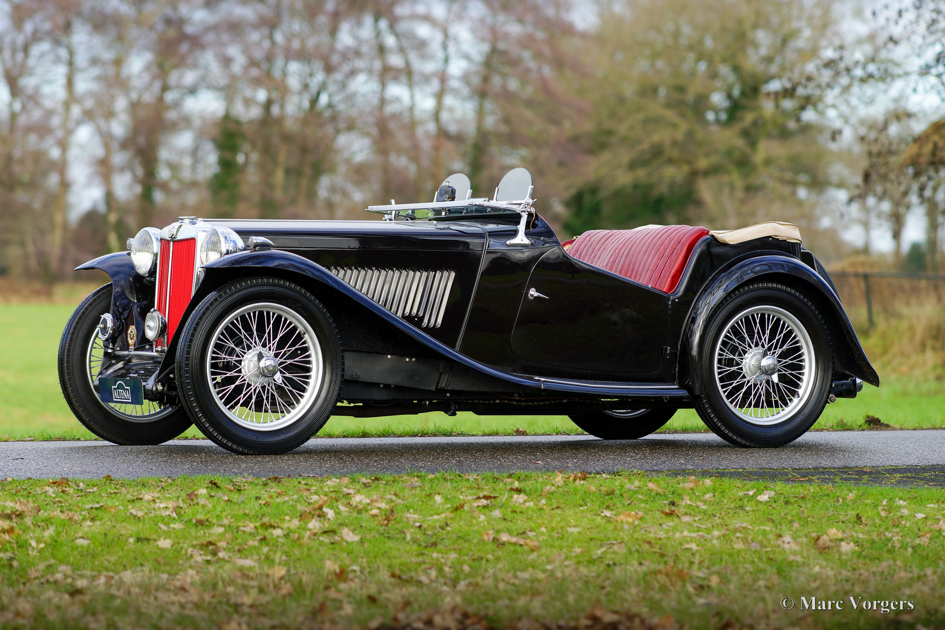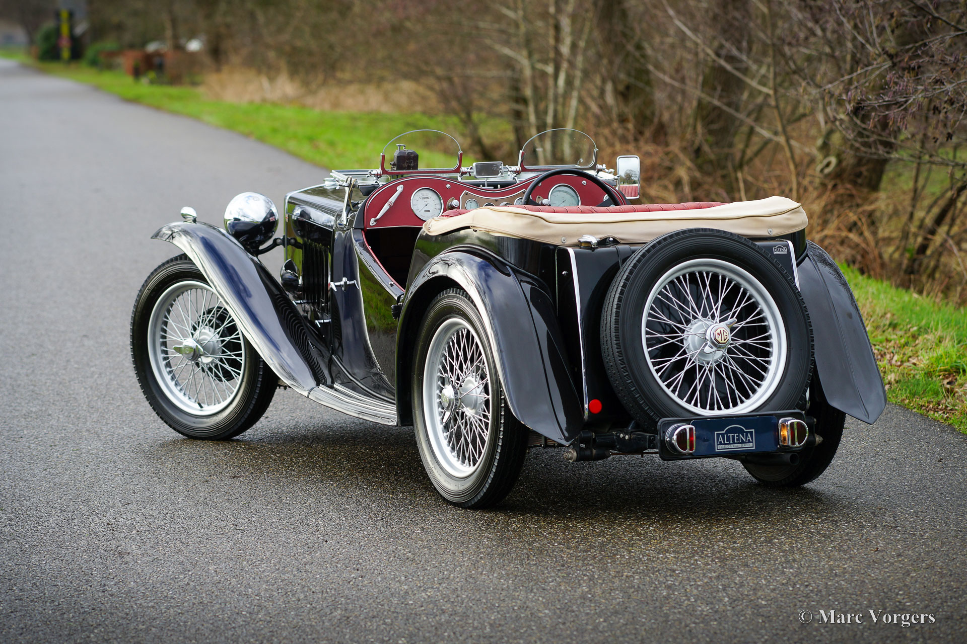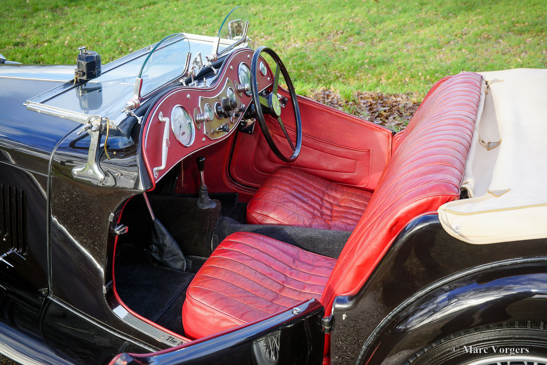 MG TC, Jahr 1950. Farbe Schwarz kombiniert mit einer roten Lederausstattung und schwarzem Teppich. Hellbraunes Verdeck und Seitenfenster-Rahmen. Dieser wunderbare MG TC wurde in den Vereinigten Staaten (USA) neu verkauft und 2010 in die Niederlande importiert. In den Niederlanden wurde das Auto restauriert und überholt. Dieser MG TC ist in einem sehr guten und schönen Zustand mit leichten Gebrauchsspuren, einer fantastischen Patina. Die Wetterausrüstung ist in einem guten Zustand und weist leichte Gebrauchsspuren auf. Dieser MG TC sieht in der schwarzen Farbgebung mit rotem Leder und den silber lackierten Speichenrädern fantastisch aus. Das Auto ist mit „Brooklands“ Aero-Windschutzscheiben ausgestattet, die dem Auto bei heruntergeklappter Windschutzscheibe ein sehr sportliches und maskulines Aussehen verleihen. Das Auto fährt und handhabt sich wunderbar, das klassische Fahrerlebnis ist intensiv und sehr zufriedenstellend. Dieser MG TC ist ein wunderbares und sehr gutes und zuverlässiges Exemplar für den MG-Enthusiasten, der gerne fährt und das Auto in vollen Zügen genießt!