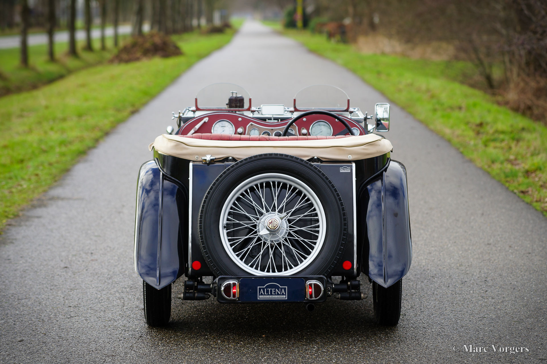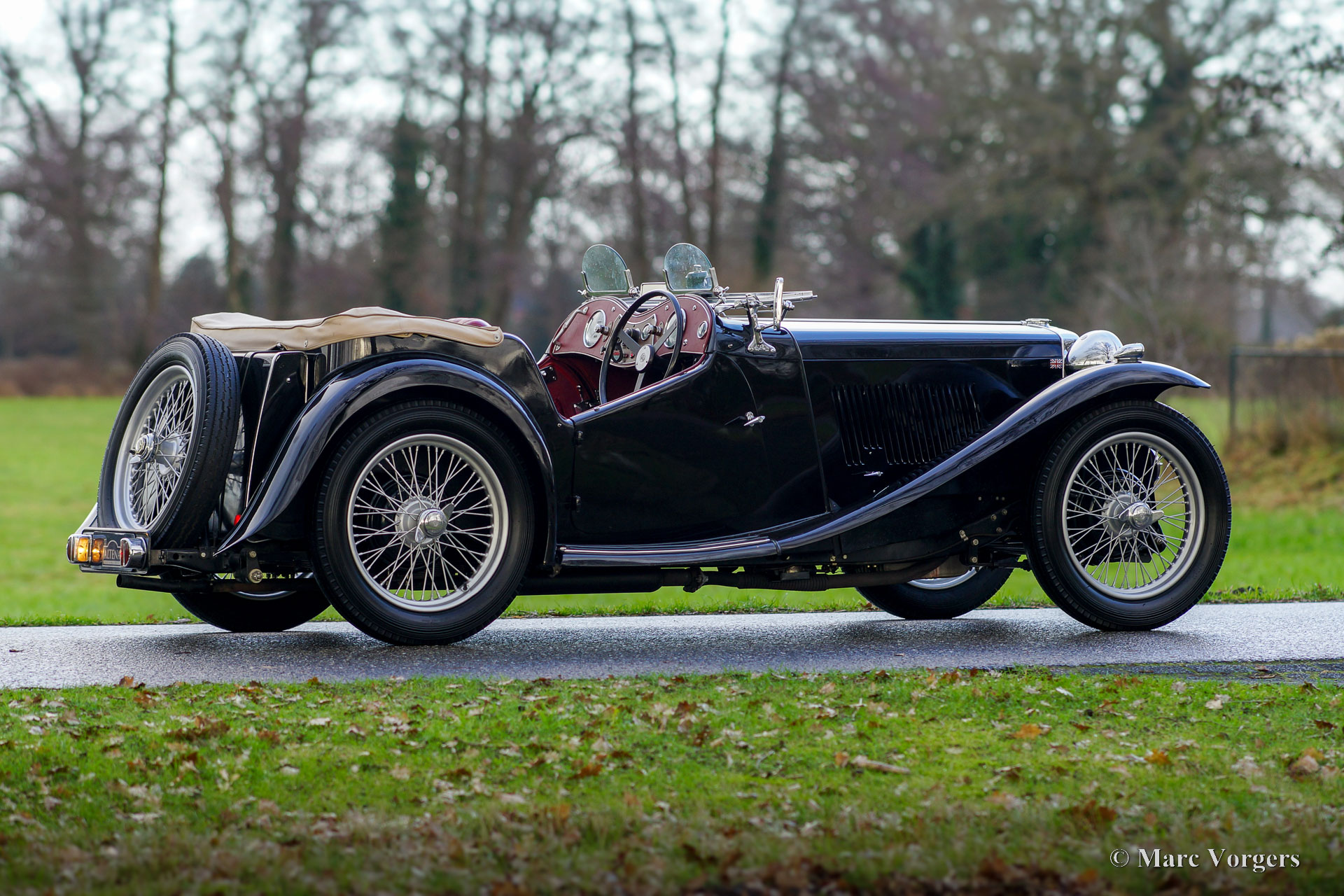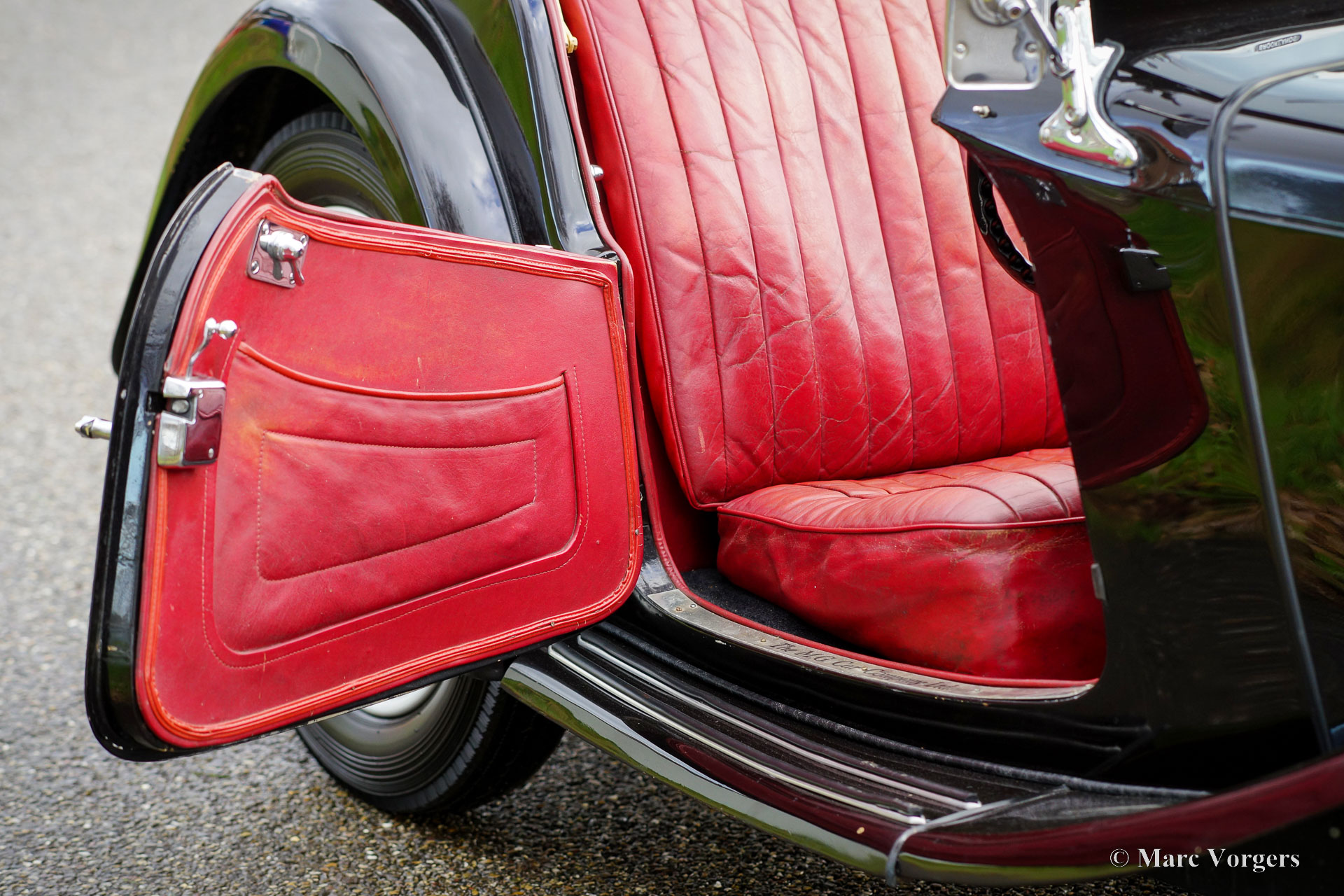 The MG TC was the first new post-war MG. The TC was introduced in 1945, and based on the pre-war TB, it was very similar. A major improvement to the TC was the larger interior, which was increased by 10 cm. The design was similar to the pre-war TB, with swept separate wings, large 19-inch wire wheels and a folding windshield. The MG TB/TC series were much admired by the American soldiers who were on the point of returning to America; this type of small sports car with its smooth handling, was not yet known in America. As a result, many TBs and TCs were shipped to America, and also the MG TC was in great demand at the other side of the pond. All TCs had right-hand steering, leaf springs all around and a 54 bhp four-cylinder engine. In 1950, the MG TC was succeeded by the MG TD.