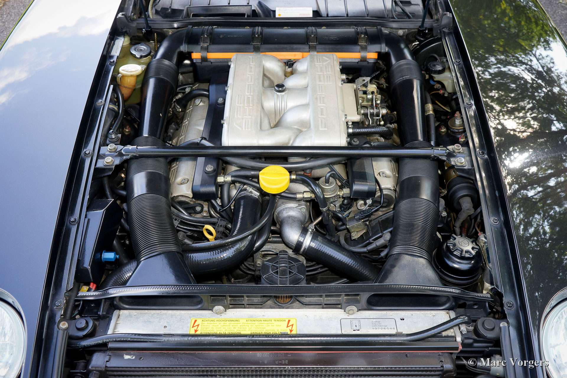 The excellent aluminium 4474 cc. V8 engine was engineered by Porsche and the earliest models already delivered 240 DIN bhp. power output. In 1979 the Porsche 928 S was introduced featuring a larger cylinder capacity of 4664 cc. and an enlarged power output of 310 bhp. In 1986 the Porsche 928 S4 was introduced. Again the cylinder capacity was enlarged (4957 cc.) resulting in a capacity of 320 DIN bhp. The S4 also featured new styling for the rear lamp units, they were larger and they were no longer placed recessed into the rear.