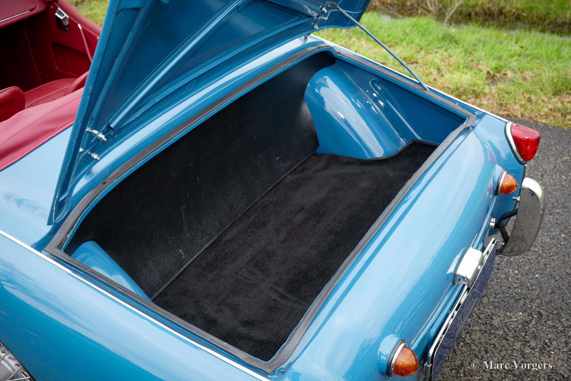 The TR 3 is a pure two-person roadster, a classic generously giving you the fifties British sports car feeling, rough but honest. It comes with a simple soft-top for weather protection. Separate clip-on side screens can additionally be attached to the doors. A hardtop was also available.