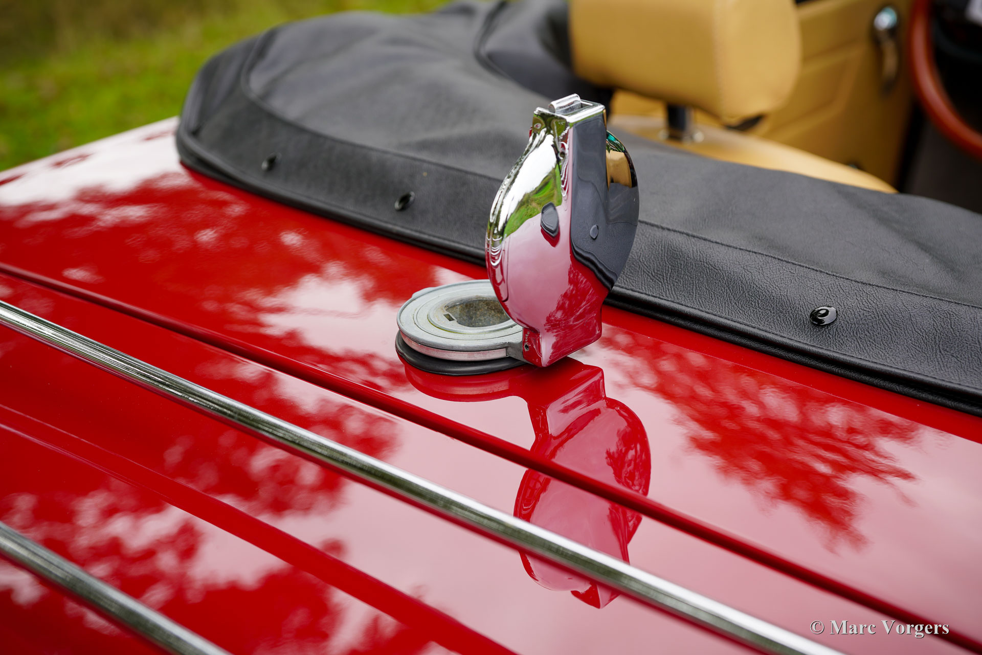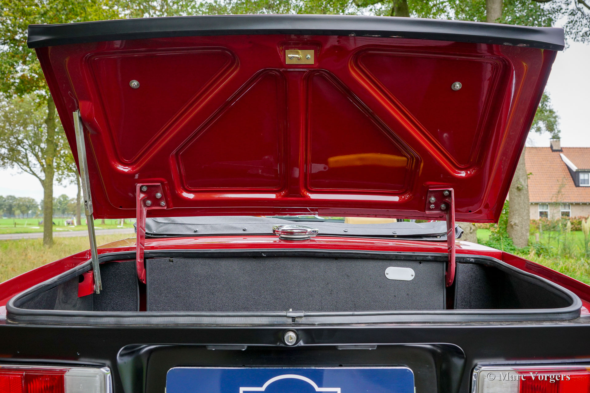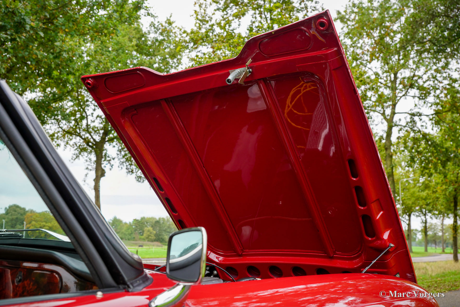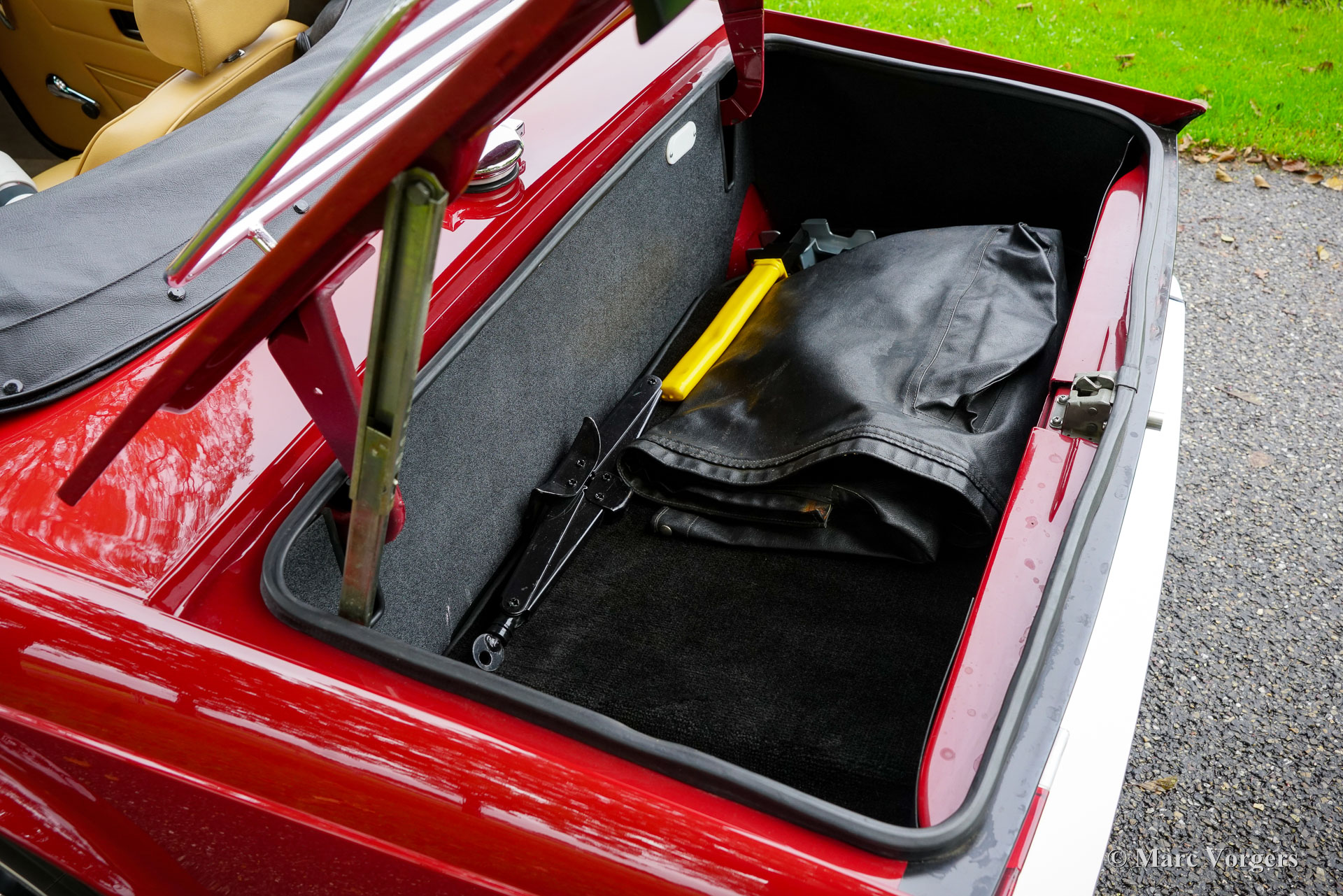 Triumph TR6, Baujahr (November) 1974 (Erstzulassung 1975). ‚Matching numbers‘, ein Heritage-Dokument liegt zur Bestätigung vor. Karosserie in der wunderschönen Farbe Karminrot, kombiniert mit beiger (tan) Kunstlederausstattung und hellbeigem (Magnolia) Teppich. Dieser feine TR6 ist an seiner höheren Frontstoßstange mit den darunter angebrachten Blinkern sofort als Auto des Modelljahres 1975 zu erkennen. Die zweifarbigen orange-weißen Blinker Gläser sind spezifisch für dieses Modelljahr. Dieser TR6 wurde neu in Halifax, Kanada, verkauft. Im Zeitraum 2008 – 2012 wurde das Auto in Kanada restauriert, Rechnungen in Höhe von bis zu 25.000 € sind in der Verlaufsdatei vorhanden. Im Jahr 2020 wurde das Auto in die Niederlande verschifft, wo es 2023 für den Straßenverkehr zugelassen wurde. Der niederländische Besitzer perfektionierte das Auto bis ins kleinste Detail, und in unserer Werkstatt wurden die Hinterachsen, die Vergaser und die Kupplung überholt bzw. erneuert. Dieser wundervolle Triumph TR6 ist in ausgezeichnetem Zustand (sieht aus wie neu!) und ist absolut auf dem neuesten Stand. Dieser TR6 präsentiert sich in einer wunderschönen Farbkombination. Die karminrote Karosseriefarbe, die hellbraunen Sitze und der Magnolia-Teppich harmonieren wunderbar mit dem fantastischen Armaturenbrett aus hochglänzendem Walnussholz! Der Reihensechszylindermotor atmet noch immer durch die originalen Stromberg-Vergaser, das originale Luftfiltergehäuse und die originale (natürlich erneuerte) Stahlauspuffanlage; der Auspuffsound dieses Autos ist absolut zeitgemäß! Dieser TR6 verfügt über eine Kipphebelabdeckung aus Aluminium, ein Sportlenkrad mit Holzkranz, einen Gepäckträger aus Edelstahl, Scheibenwischer aus Edelstahl und ein Paar türmontierte Chrom Rückspiegel. Dieser hochwertige Triumph TR6 ist bereit, in vollen Zügen genossen zu werden!