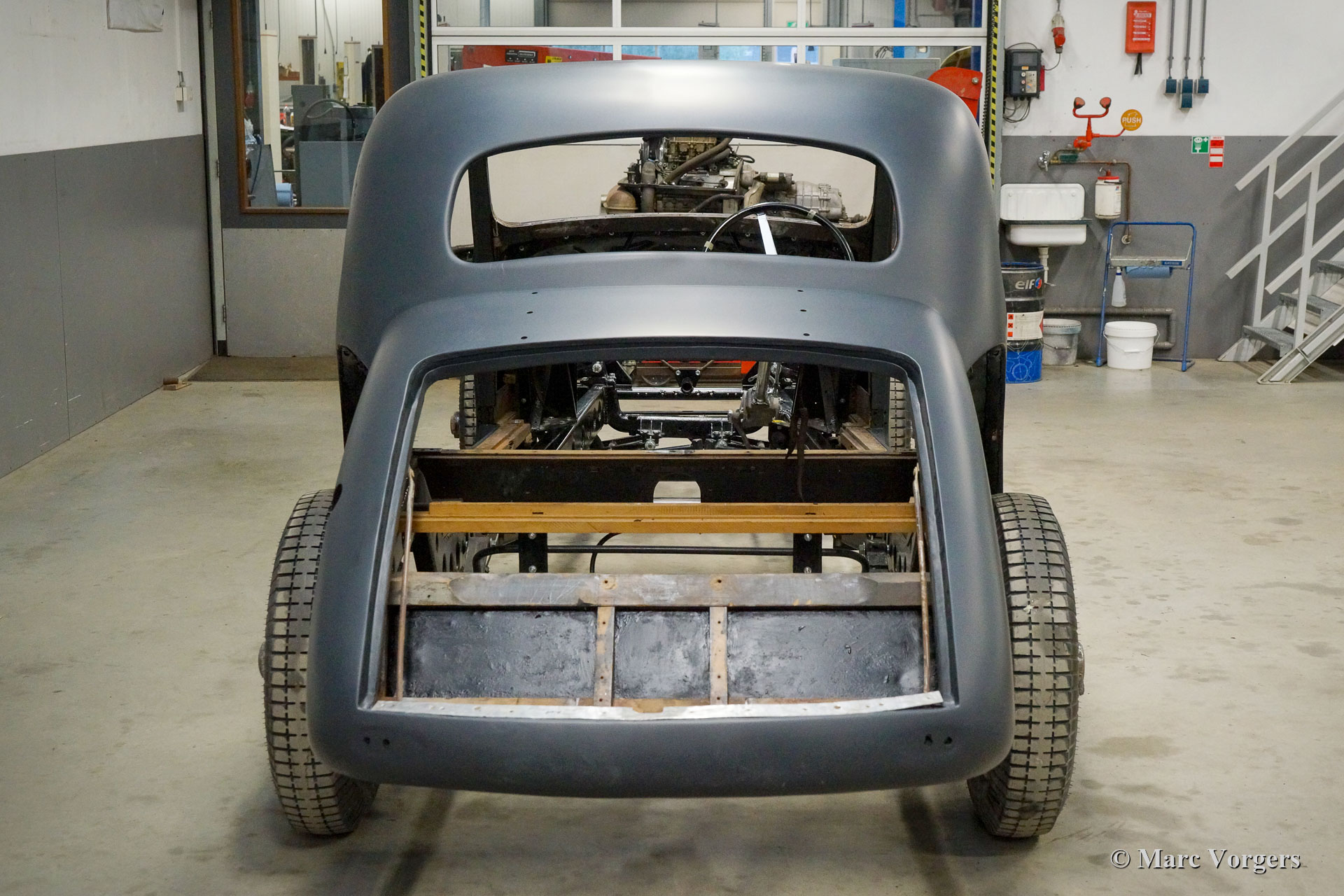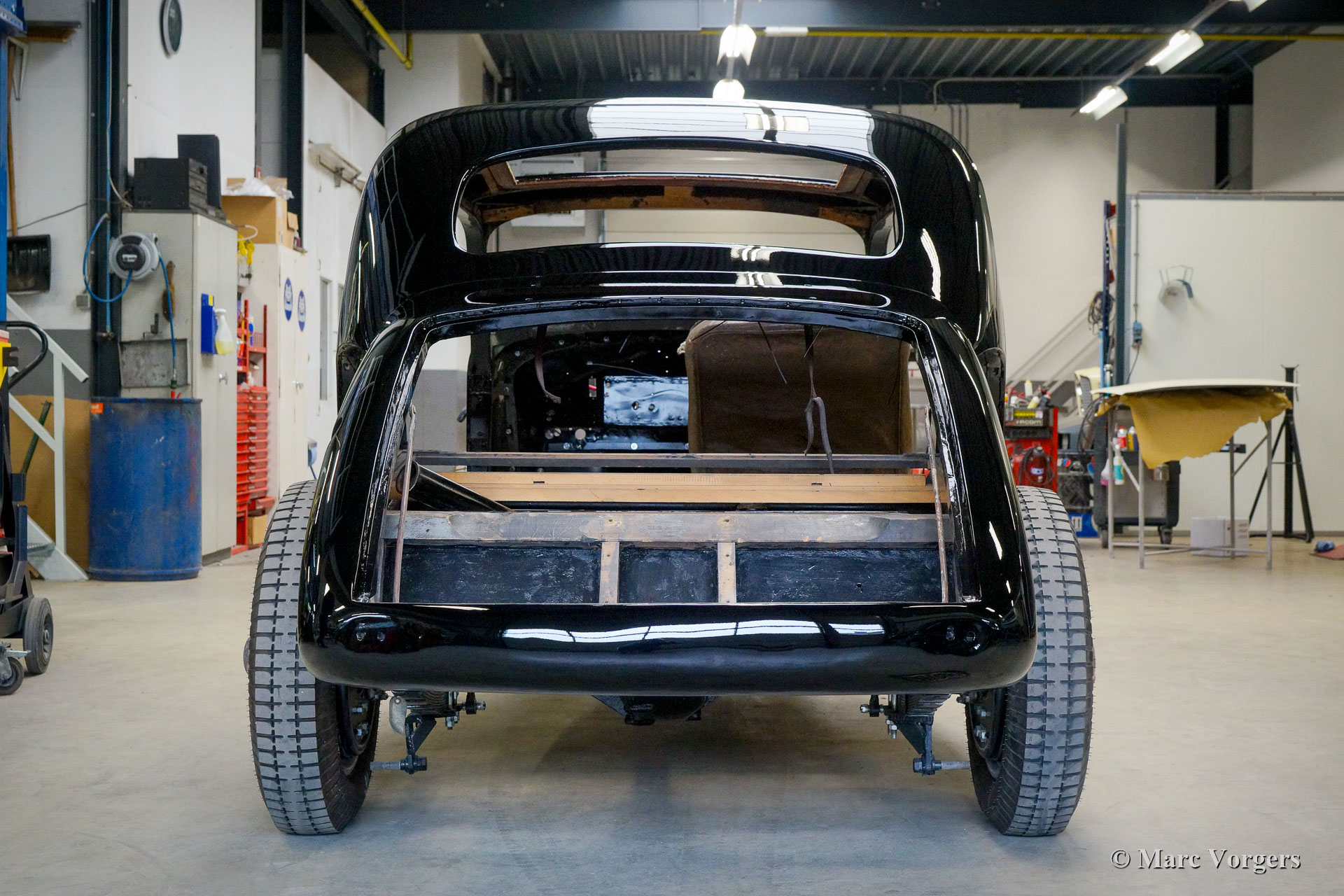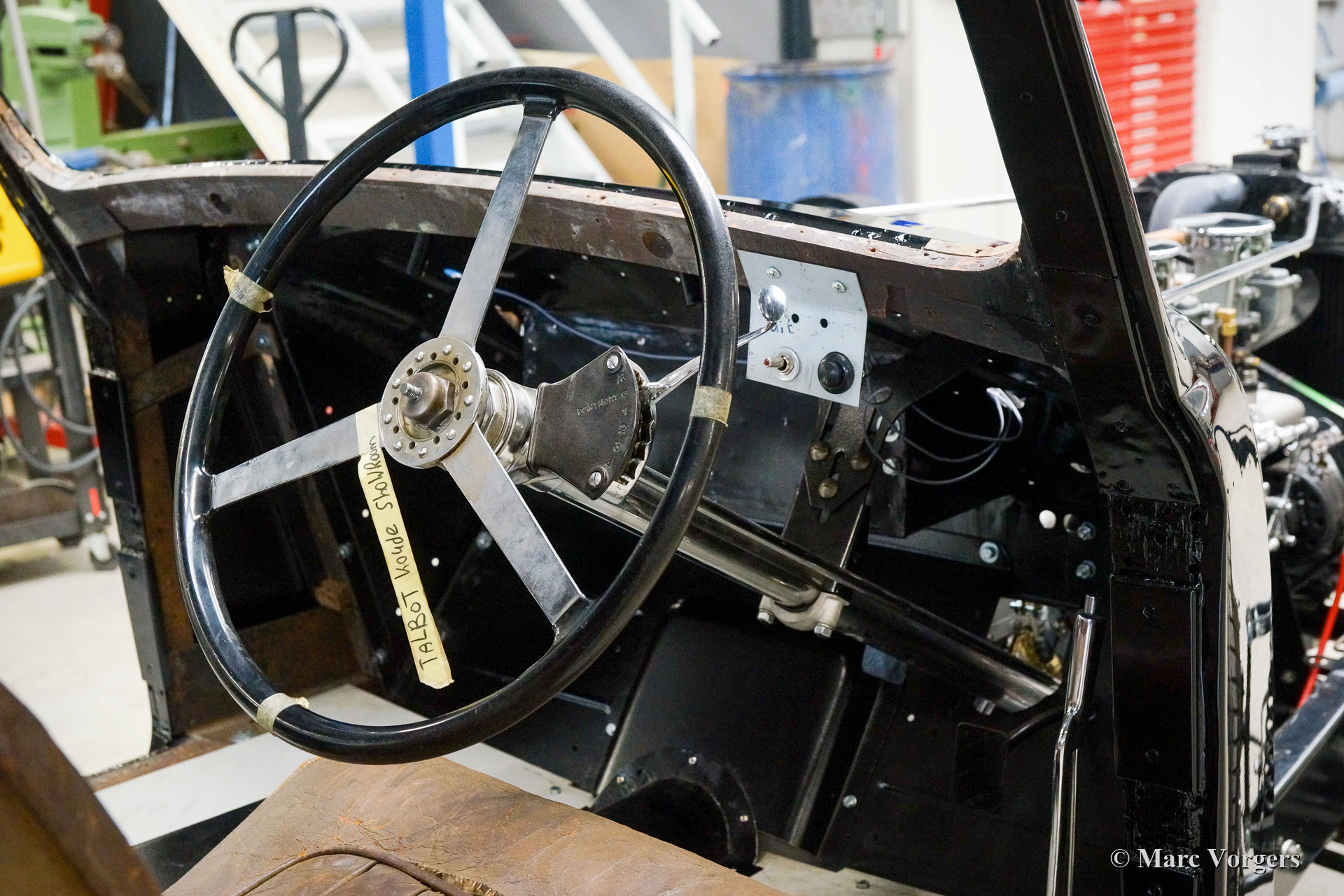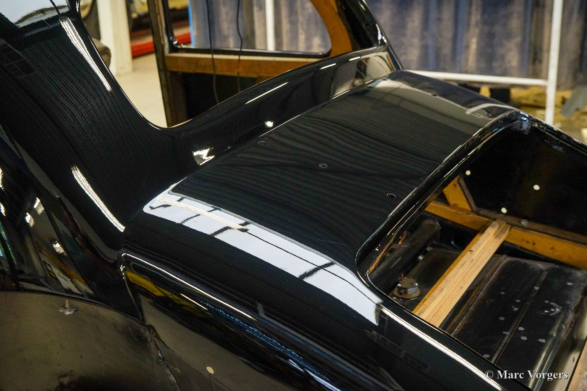 Dieser fantastische Talbot Lago T26 Record Surprofilé von 1952 wird von Classic Job vollständig restauriert und überholt. Dieser Fotobericht begann, nachdem das Chassis bereits restauriert und wiederhergestellt war. Auf dem restaurierten Fahrgestell ist die sehr originale Karosserie zu sehen. (Nur einige Blechteile und einige Teile des Holzrahmens mussten erneuert werden). Die Karosserie wurde geglättet, grundiert und lackiert. Der Motor und das Getriebe wurden von Classic Job komplett überholt und wieder in das Chassis eingebaut. Derzeit wird das Auto komplettiert. Chromteile wurden perfekt neu verchromt, die vordere Stoßstange ist glatt wie ein Glasspiegel. Das organisch geformte Armaturenbrett aus Metall wurde wie im Original mit einer „Holzimitat“-Lackierung versehen. Die äußere Detaillierung ist fast abgeschlossen, die Scheinwerfer müssen montiert und neue Räder und Reifen montiert werden. Als nächstes wird der Innenraum neu bezogen.