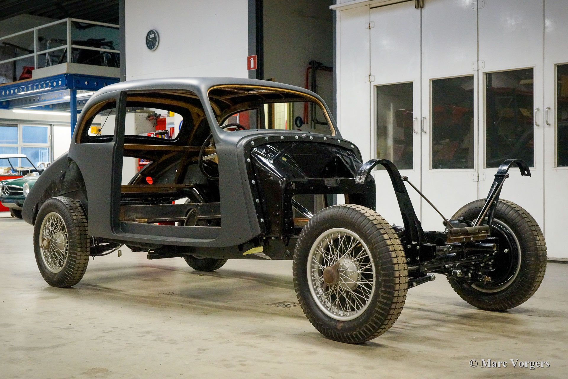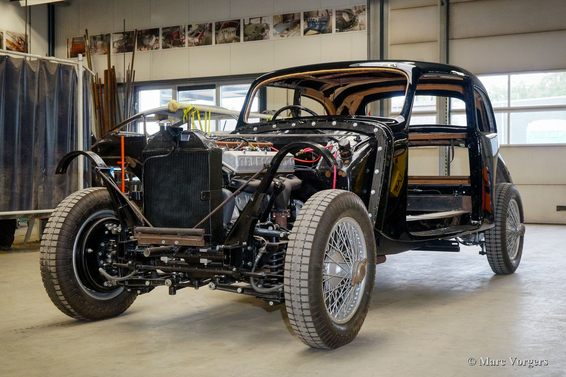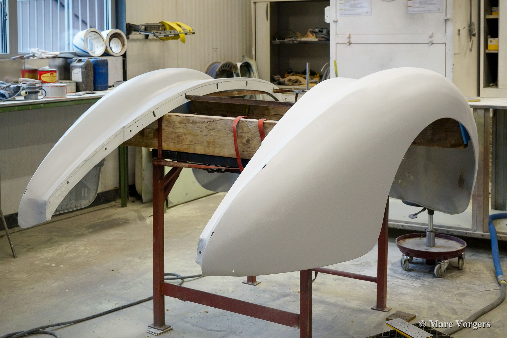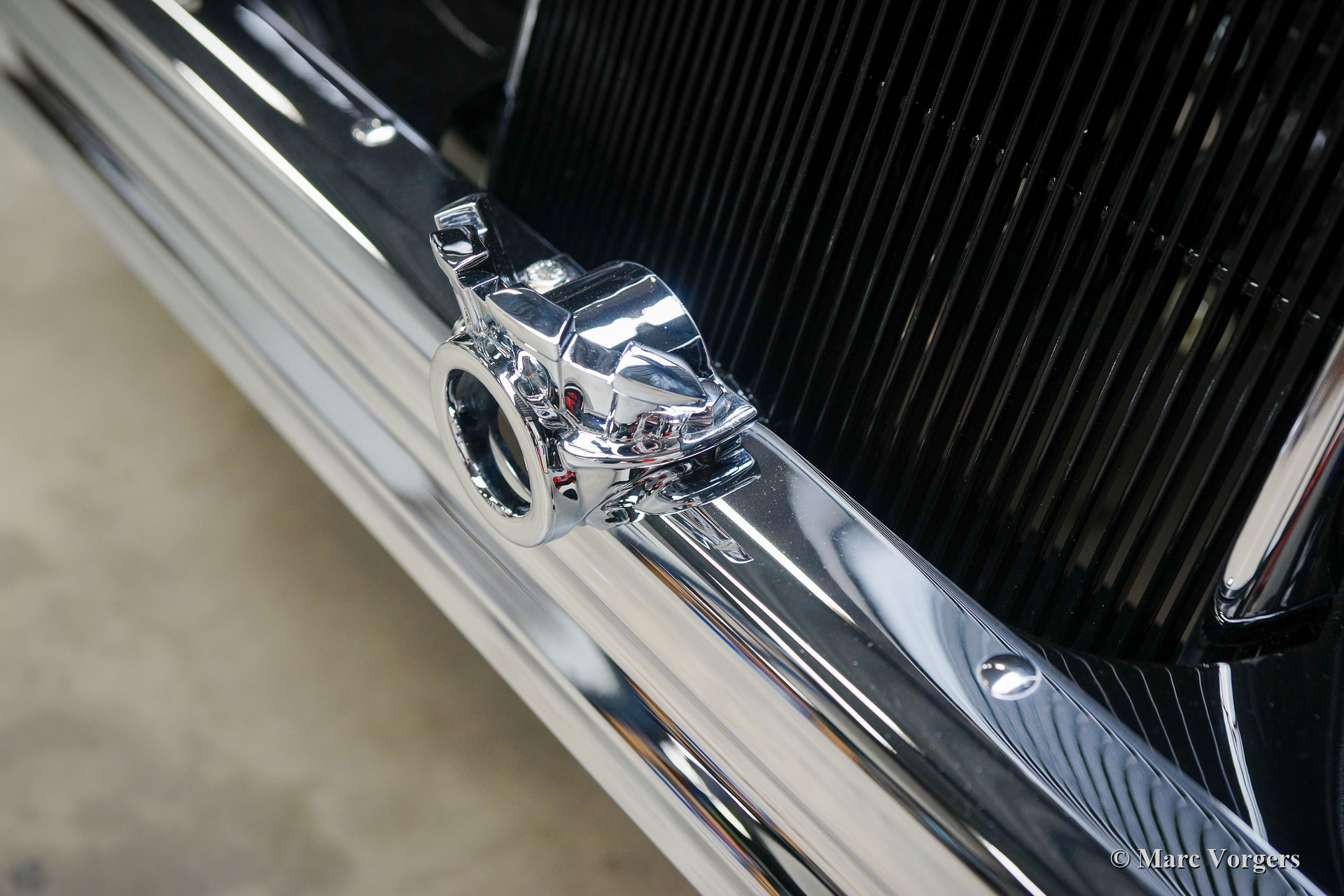 Dieser fantastische Talbot Lago T26 Record Surprofilé von 1952 wird von Classic Job vollständig restauriert und überholt. Dieser Fotobericht begann, nachdem das Chassis bereits restauriert und wiederhergestellt war. Auf dem restaurierten Fahrgestell ist die sehr originale Karosserie zu sehen. (Nur einige Blechteile und einige Teile des Holzrahmens mussten erneuert werden). Die Karosserie wurde geglättet, grundiert und lackiert. Der Motor und das Getriebe wurden von Classic Job komplett überholt und wieder in das Chassis eingebaut. Derzeit wird das Auto komplettiert. Chromteile wurden perfekt neu verchromt, die vordere Stoßstange ist glatt wie ein Glasspiegel. Das organisch geformte Armaturenbrett aus Metall wurde wie im Original mit einer „Holzimitat“-Lackierung versehen. Die äußere Detaillierung ist fast abgeschlossen, die Scheinwerfer müssen montiert und neue Räder und Reifen montiert werden. Als nächstes wird der Innenraum neu bezogen.