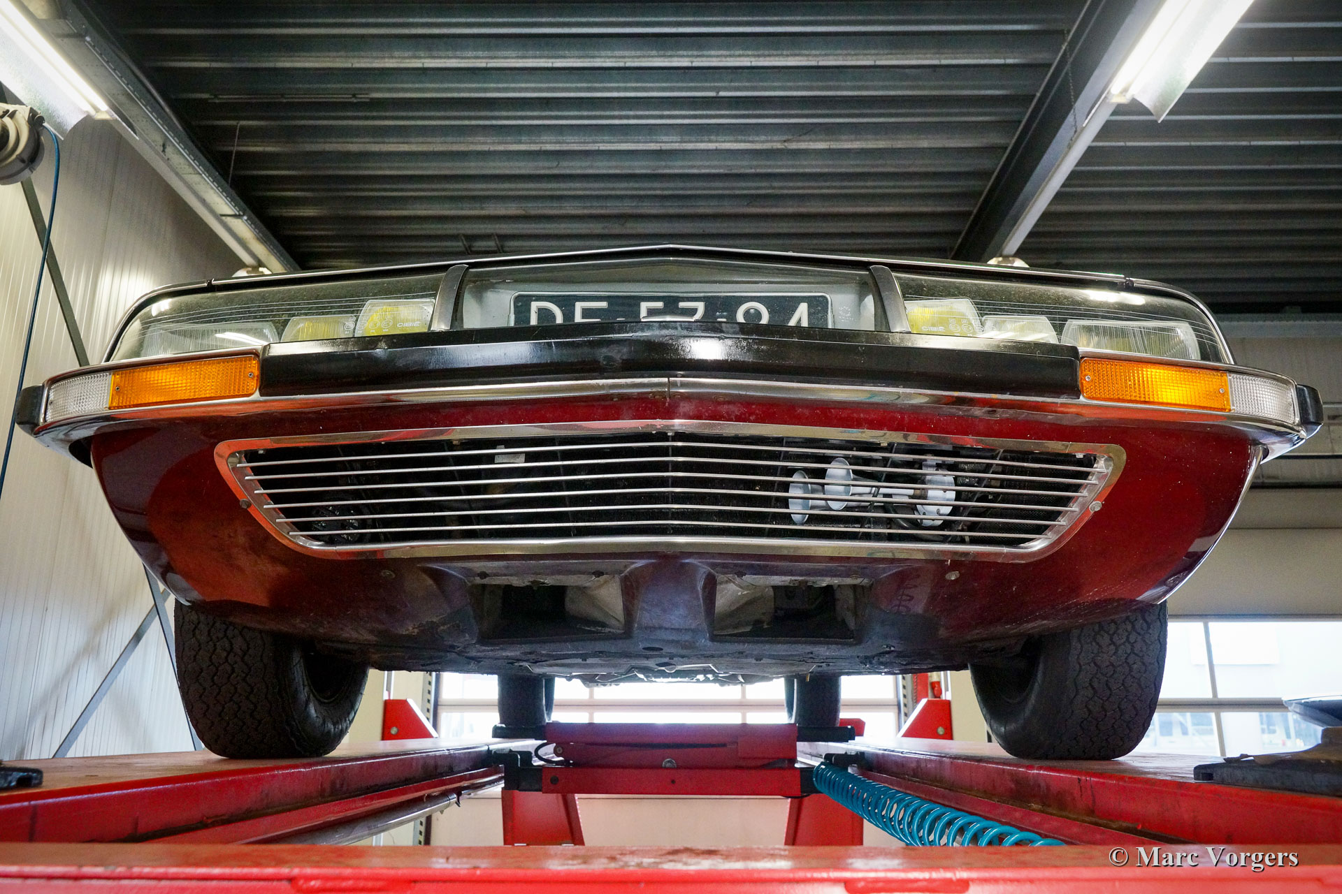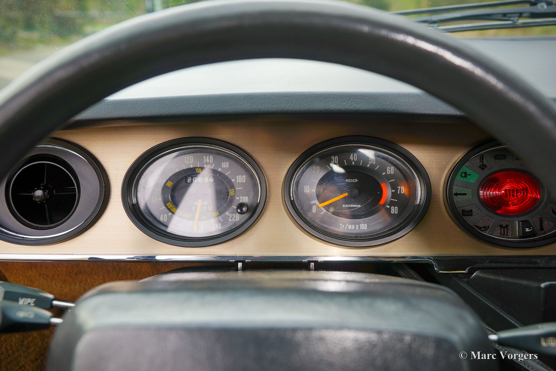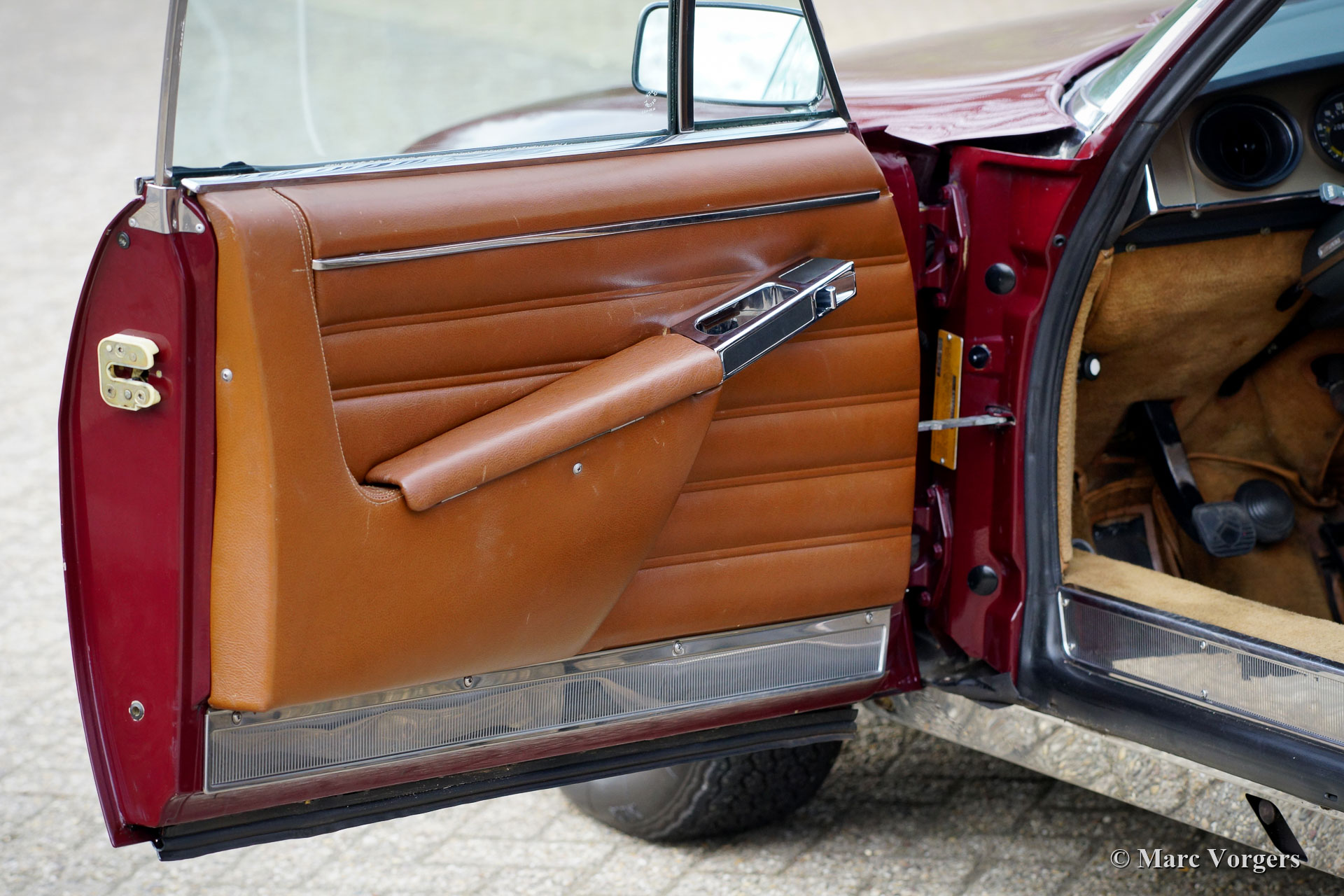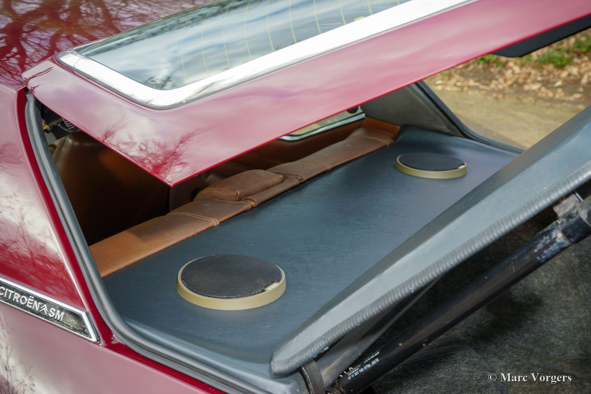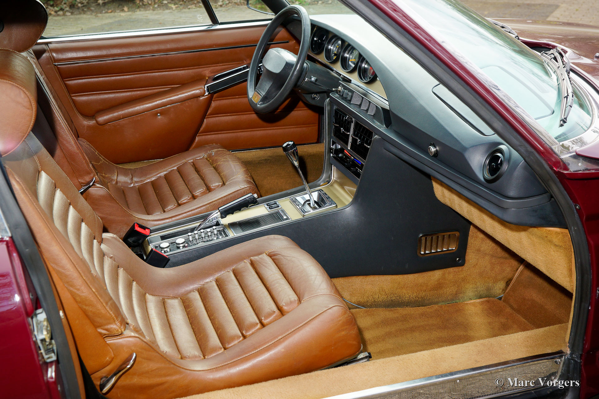 Citroën SM, Jahr 1972. Farbe Burgunderrot kombiniert mit einer braunen Lederausstattung und einem braunen Teppich. Dieser wunderschöne Citroën SM wurde in den Vereinigten Staaten von Amerika (USA) neu verkauft. Im Jahr 1990 wurde das Auto in die Niederlande importiert. Der letzte Besitzer schätzt das Auto seit 2003, in diesem Jahr war das Auto bereits in unserer Werkstatt bekannt. Im Laufe der Jahre wurde das ursprüngliche Einspritzsystem durch drei Weber-Vergaser ersetzt, was ebenfalls eine ursprüngliche Option war. Im Jahr 2003 beschloss der Besitzer, das Auto zu verbessern. Der Motor wurde umgebaut mit allen wichtigen Verbesserungen wie verbesserten Ventilen, besseren Steuerkettenführungen und einer verbesserten Ölpumpe. Im Jahr 2004 erhielt das Auto eine perfekte neue Lackierung. Der ursprüngliche matte cremefarbene Lack wurde durch den wunderbaren Burgunder ersetzt, der jetzt das Auto schmückt. Auch die amerikanische Front wurde durch die wundervolle Glasfront im europäischen Stil mit schwenkbaren Scheinwerfern ersetzt. Wir können bis auf den Januar 2009 in der Wartungsgeschichte zurückblicken, das Auto wurde für über € 21.000 verbessert und gewartet, und das Auto ist seitdem 22.500 Kilometer gefahren. Dieser Citroën SM ist in einem sehr guten Zustand und es sieht ein Bild aus. Spuren von Gebrauch finden Sie nur im Innenraum, die Lederausstattung der Vordersitze und der Teppich im Fahrer Fußraum weist Gebrauchsspuren auf. Das Auto ist mit dem originalen Continental Edison Radio ausgestattet, das ein begehrtes Sonderzubehör ist. Die hydropneumatische Federung funktioniert perfekt, der Maserati V6-Motor läuft wunderbar, das manuell betätigte 5-Gang-Getriebe schaltet perfekt und die hydraulischen Bremsen funktionieren hervorragend. Aufgrund seines beeindruckenden Aussehens, der hervorragenden hydropneumatischen Federung und des leistungsstarken Maserati V6-Motors trägt der Citroën SM in Frankreich den Spitznamen „Sa Majestée“ (Seine Majestät). Wenn man sich diesen wunderbaren SM ansieht und besonders wenn man ihn fährt und erlebt, beweist dieser Name, dass er gut gewählt ist.