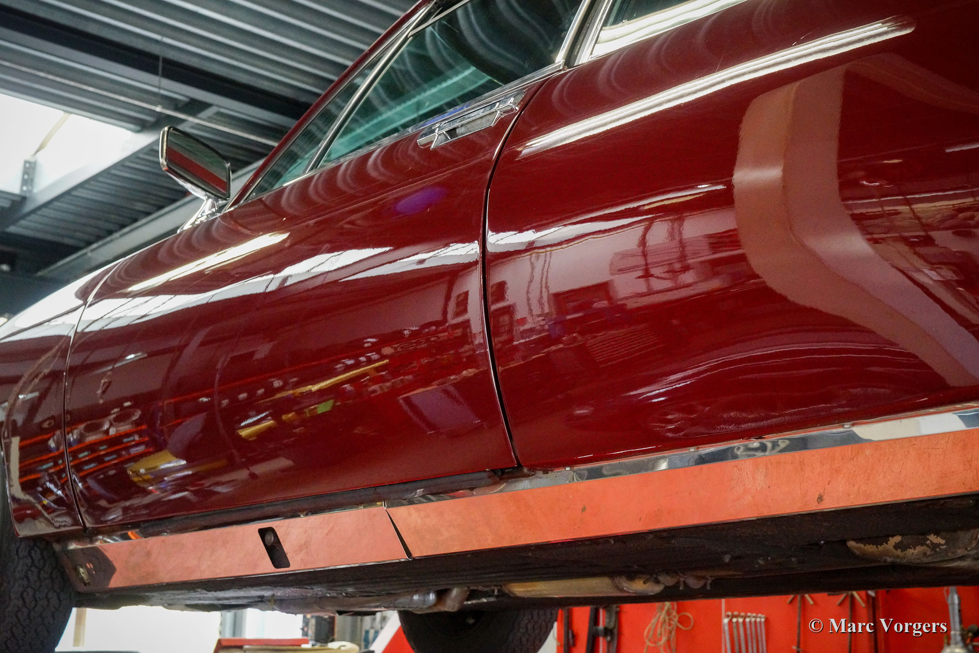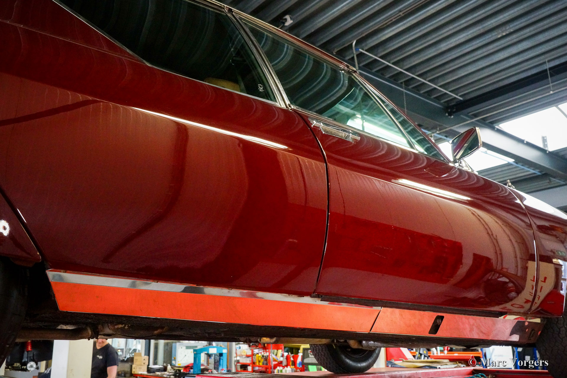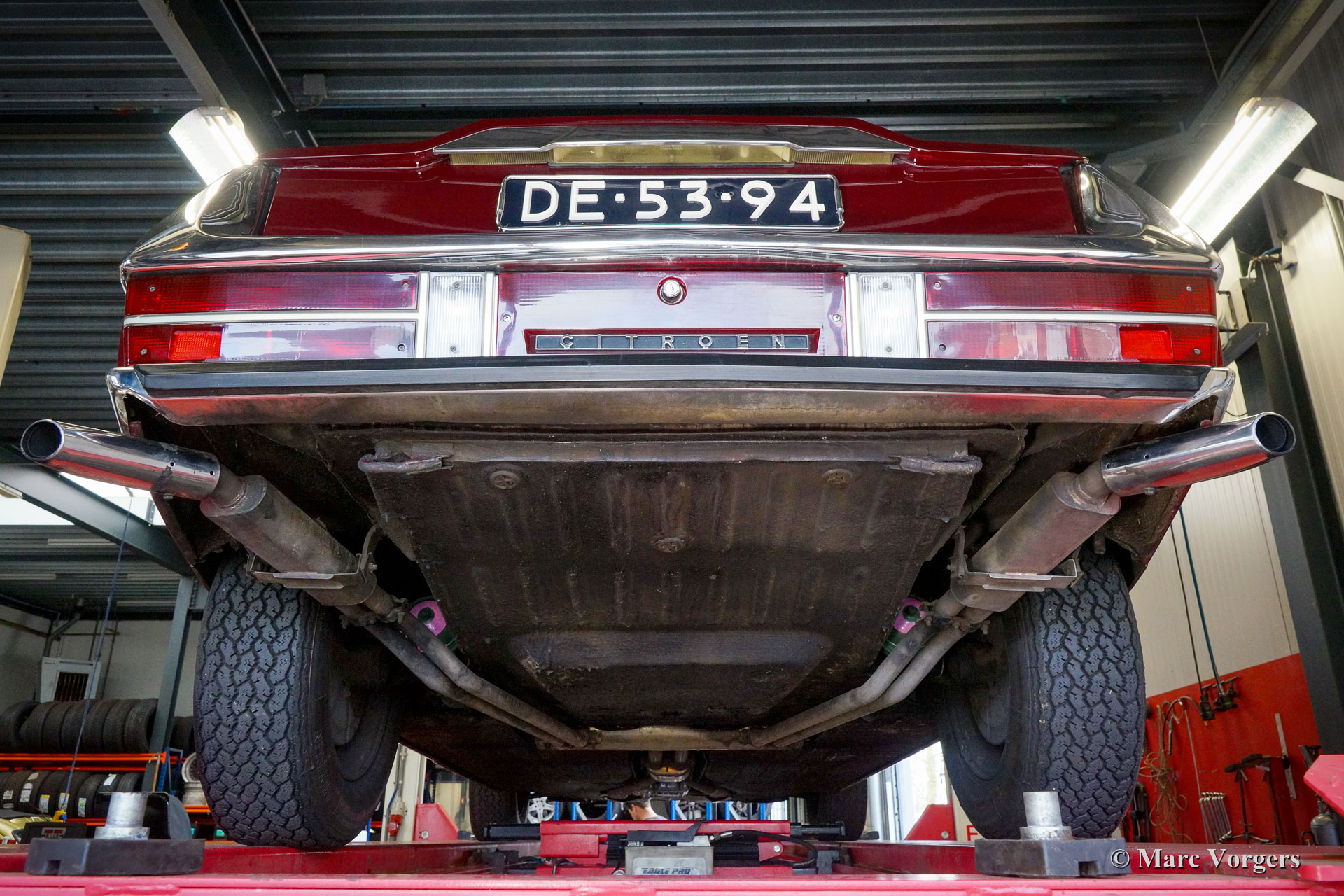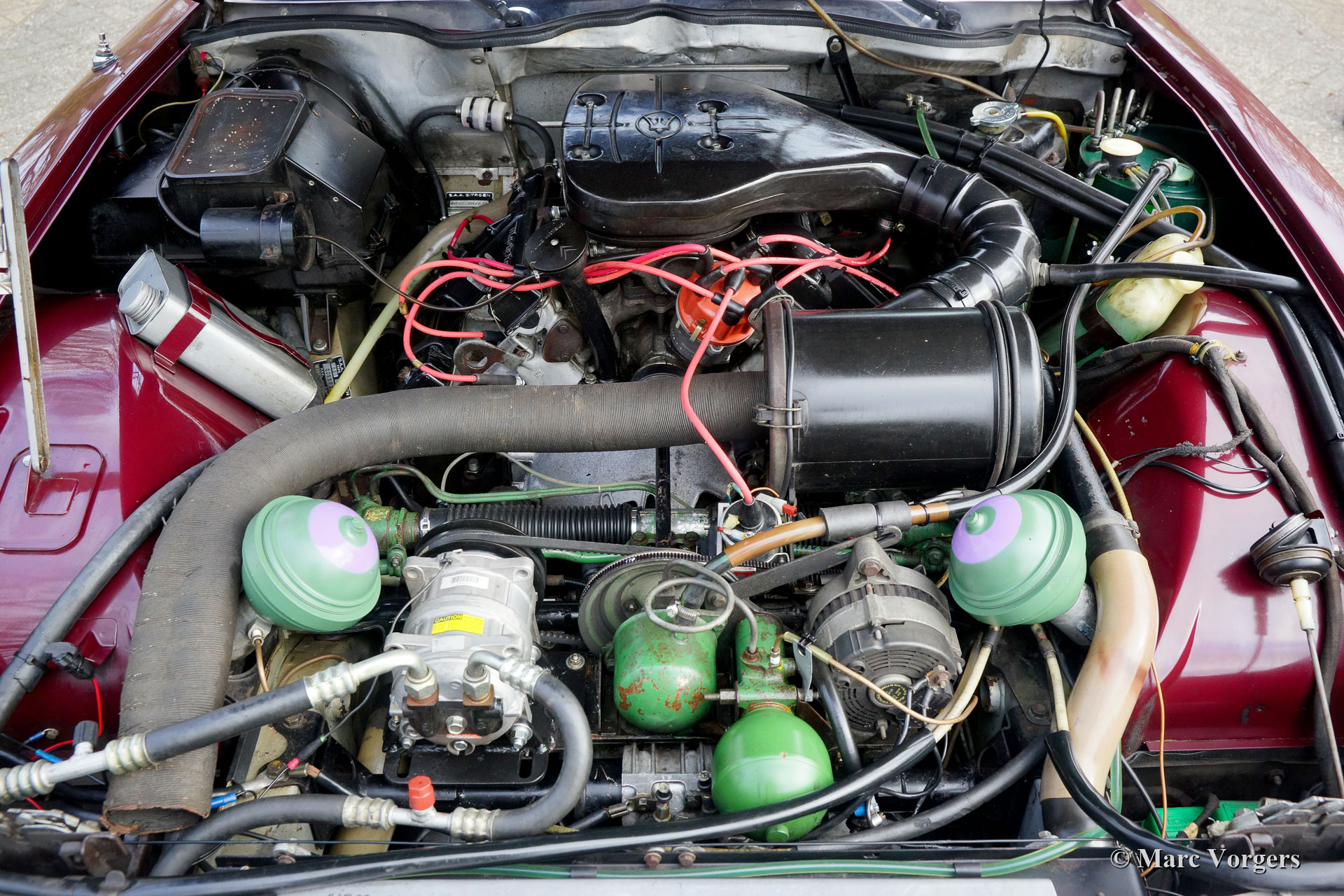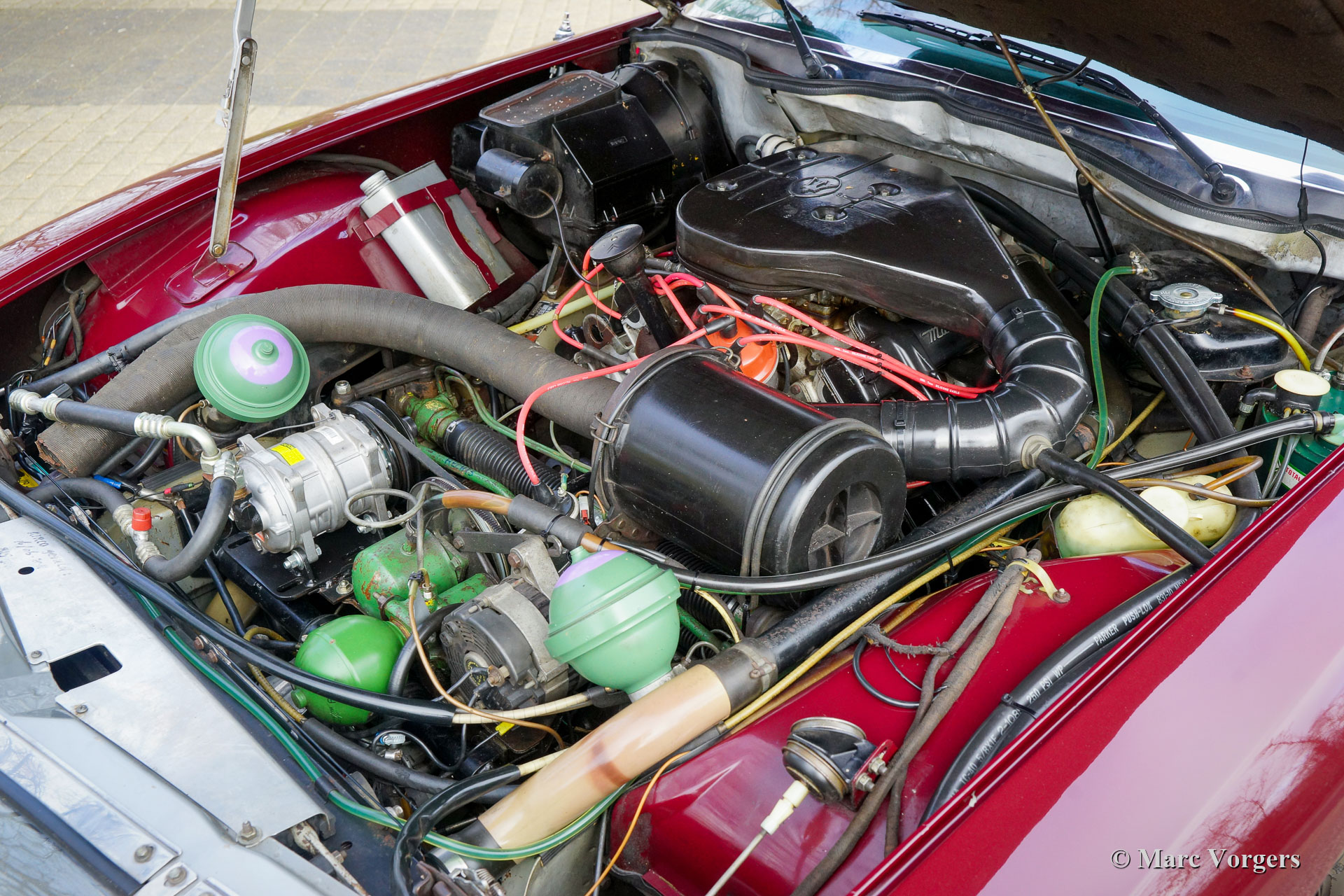 Citroën SM, Jahr 1972. Farbe Burgunderrot kombiniert mit einer braunen Lederausstattung und einem braunen Teppich. Dieser wunderschöne Citroën SM wurde in den Vereinigten Staaten von Amerika (USA) neu verkauft. Im Jahr 1990 wurde das Auto in die Niederlande importiert. Der letzte Besitzer schätzt das Auto seit 2003, in diesem Jahr war das Auto bereits in unserer Werkstatt bekannt. Im Laufe der Jahre wurde das ursprüngliche Einspritzsystem durch drei Weber-Vergaser ersetzt, was ebenfalls eine ursprüngliche Option war. Im Jahr 2003 beschloss der Besitzer, das Auto zu verbessern. Der Motor wurde umgebaut mit allen wichtigen Verbesserungen wie verbesserten Ventilen, besseren Steuerkettenführungen und einer verbesserten Ölpumpe. Im Jahr 2004 erhielt das Auto eine perfekte neue Lackierung. Der ursprüngliche matte cremefarbene Lack wurde durch den wunderbaren Burgunder ersetzt, der jetzt das Auto schmückt. Auch die amerikanische Front wurde durch die wundervolle Glasfront im europäischen Stil mit schwenkbaren Scheinwerfern ersetzt. Wir können bis auf den Januar 2009 in der Wartungsgeschichte zurückblicken, das Auto wurde für über € 21.000 verbessert und gewartet, und das Auto ist seitdem 22.500 Kilometer gefahren. Dieser Citroën SM ist in einem sehr guten Zustand und es sieht ein Bild aus. Spuren von Gebrauch finden Sie nur im Innenraum, die Lederausstattung der Vordersitze und der Teppich im Fahrer Fußraum weist Gebrauchsspuren auf. Das Auto ist mit dem originalen Continental Edison Radio ausgestattet, das ein begehrtes Sonderzubehör ist. Die hydropneumatische Federung funktioniert perfekt, der Maserati V6-Motor läuft wunderbar, das manuell betätigte 5-Gang-Getriebe schaltet perfekt und die hydraulischen Bremsen funktionieren hervorragend. Aufgrund seines beeindruckenden Aussehens, der hervorragenden hydropneumatischen Federung und des leistungsstarken Maserati V6-Motors trägt der Citroën SM in Frankreich den Spitznamen „Sa Majestée“ (Seine Majestät). Wenn man sich diesen wunderbaren SM ansieht und besonders wenn man ihn fährt und erlebt, beweist dieser Name, dass er gut gewählt ist.