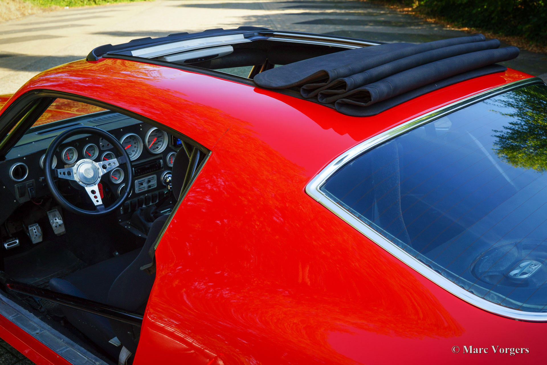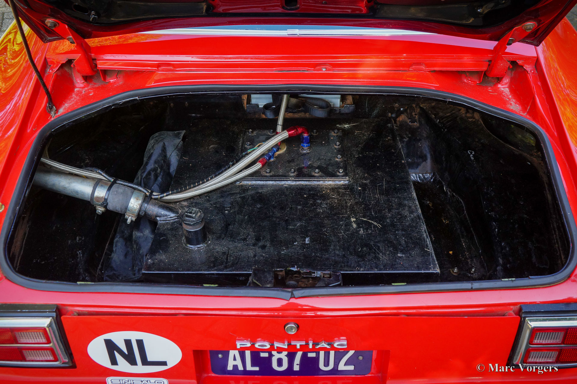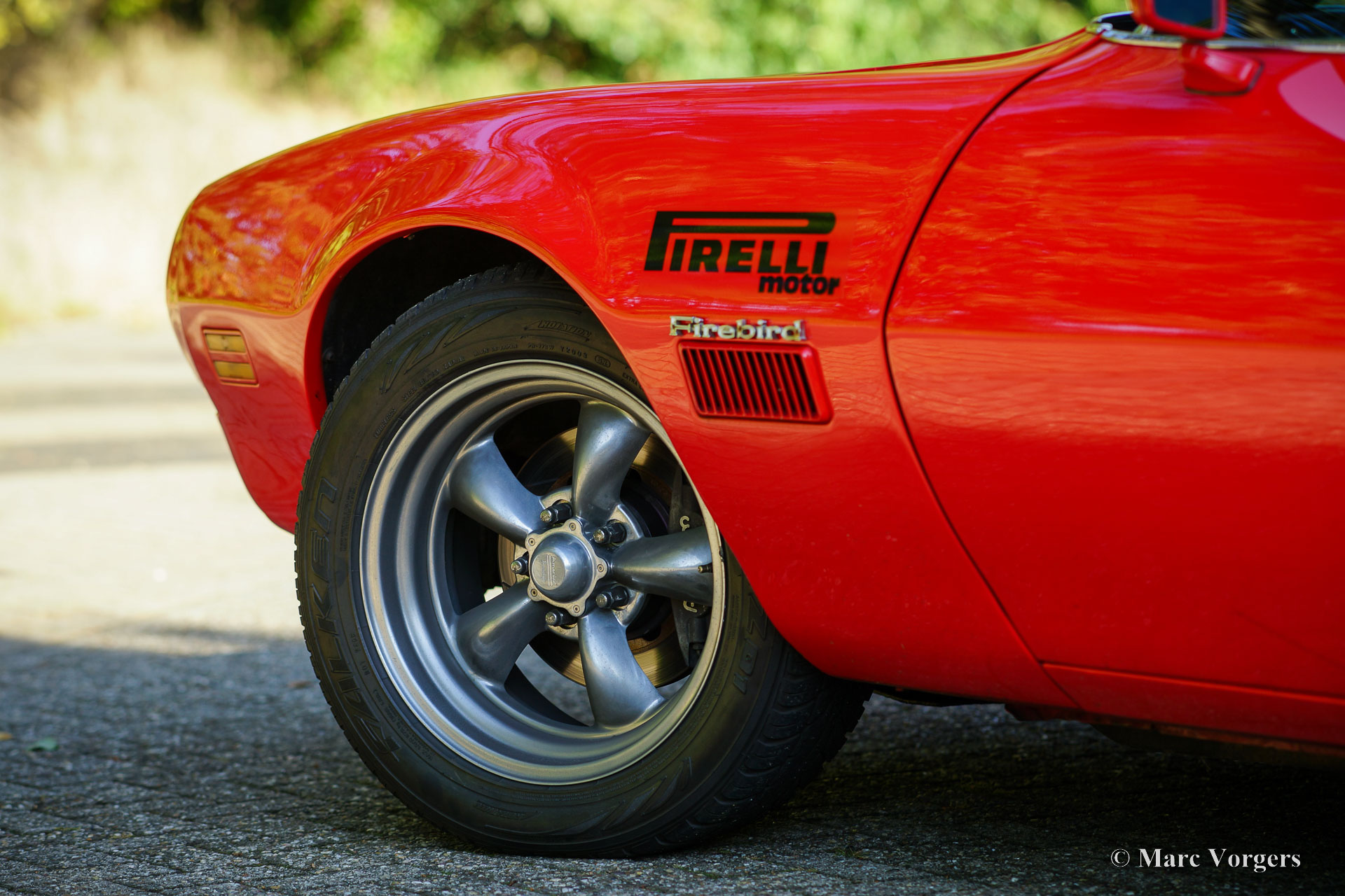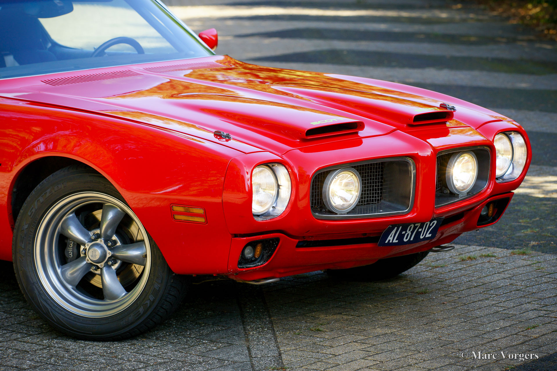 Pontiac Firebird Formula 400, Jahr 1971. Farbe Rot kombiniert mit einem schwarzen Interieur. Dieser beeindruckende Pontiac Firebird wurde im Jahr 2005 aus den USA in die Niederlande importiert. Dieser Firebird der zweiten Generation (1970-1981) ist ein sogenanntes „Formula 400“-Modell, das mit einem 400 Cu (6,6 L) Ram Air V8 „Big Block“ ausgestattet ist. Der „Formula 400“ wurde als Alternative zum „Trans Am“ beworben und konnte mit allen Optionen bestellt werden, die für den „Trans Am“ verfügbar sind, mit Ausnahme von Kotflügelverbreiterungen, Shaker-Scoop und Kotflügel-Wärmeabzügen. Dieses Exemplar wurde in der Vergangenheit aufwendig restauriert, aufgewertet und modifiziert. Der V8-Motor wurde getunt, das 4-Gang-Schaltgetriebe erhielt einen speziellen Schaltknüppel, eine hydraulische Handbremse wurde eingebaut, der Innenraum erhielt ein individuelles Armaturenbrett mit einer beeindruckenden Reihe von Instrumenten, speziellen Schalensitzen, 4-Punkt Sicherheitsgurte, ein Terratrip-Rallyecomputer und ein Pioneer-Stereo-CD-System. Dieser Pontiac Firebird fährt beeindruckend, und der leistungsstarke Motor verlangt nach einem erfahrenen Fahrer, der Erfahrung mit leistungsstarken amerikanischen Autos mit Hinterradantrieb hat! Dies ist ein großartig aussehender Pontiac Firebird „Formula 400“ in sehr gutem Zustand! Das Auto ist bereit, in vollen Zügen genossen zu werden.