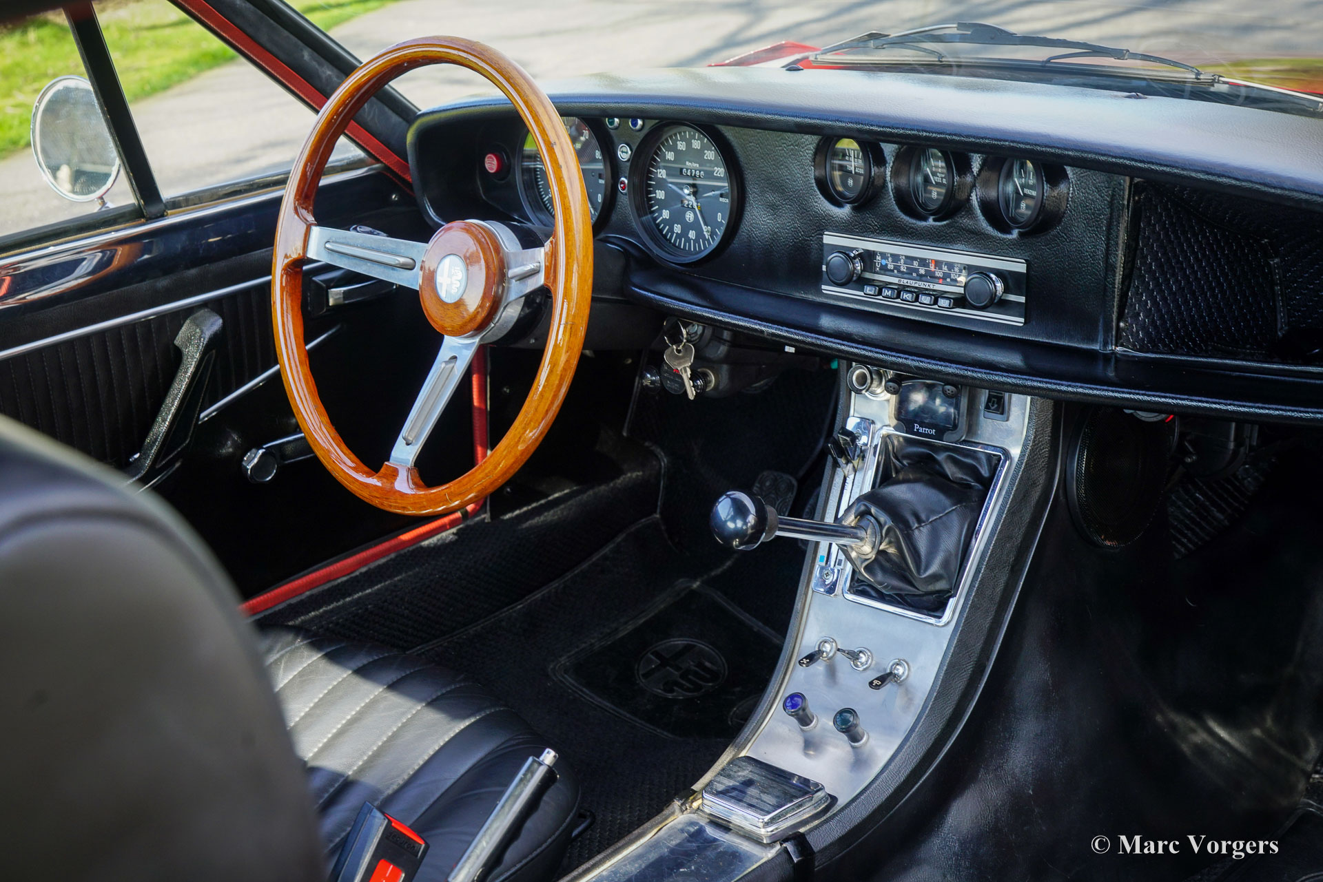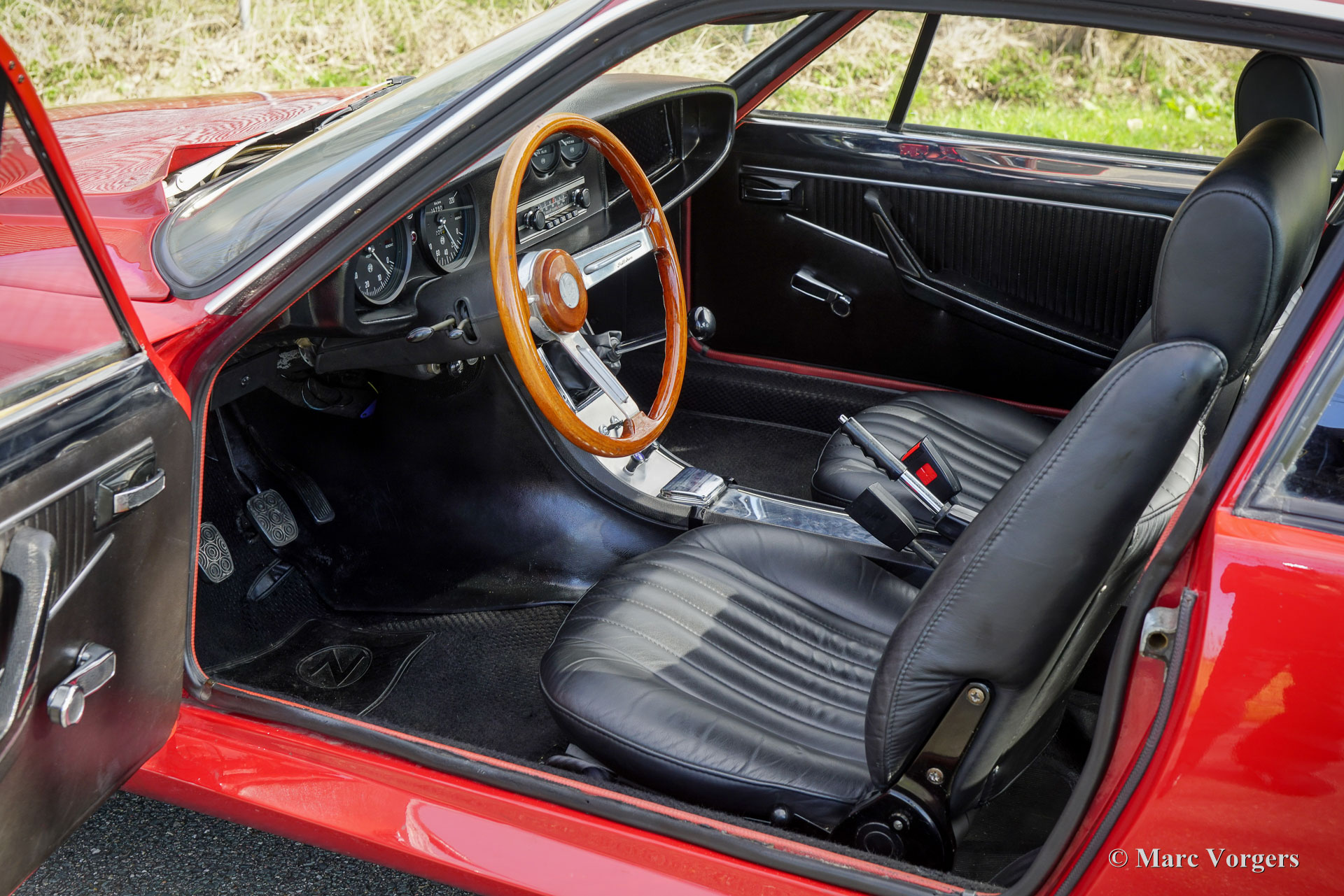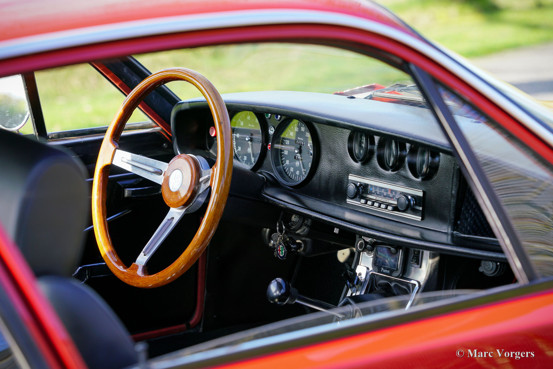 The exterior and the interior are exclusive for the Zagato, original body lines, sportive flair and functional in use. The body work shows intriguing details like the front grille and the bonnet shape near the windscreen wipers. Compared with the 1300 Zagato the 1600 shows a few different details: the front bumper is slightly bigger and stronger, the rear bumper was modified, larger rear lights are fitted, new lettering on the rear of the car and a new steering wheel was fitted.