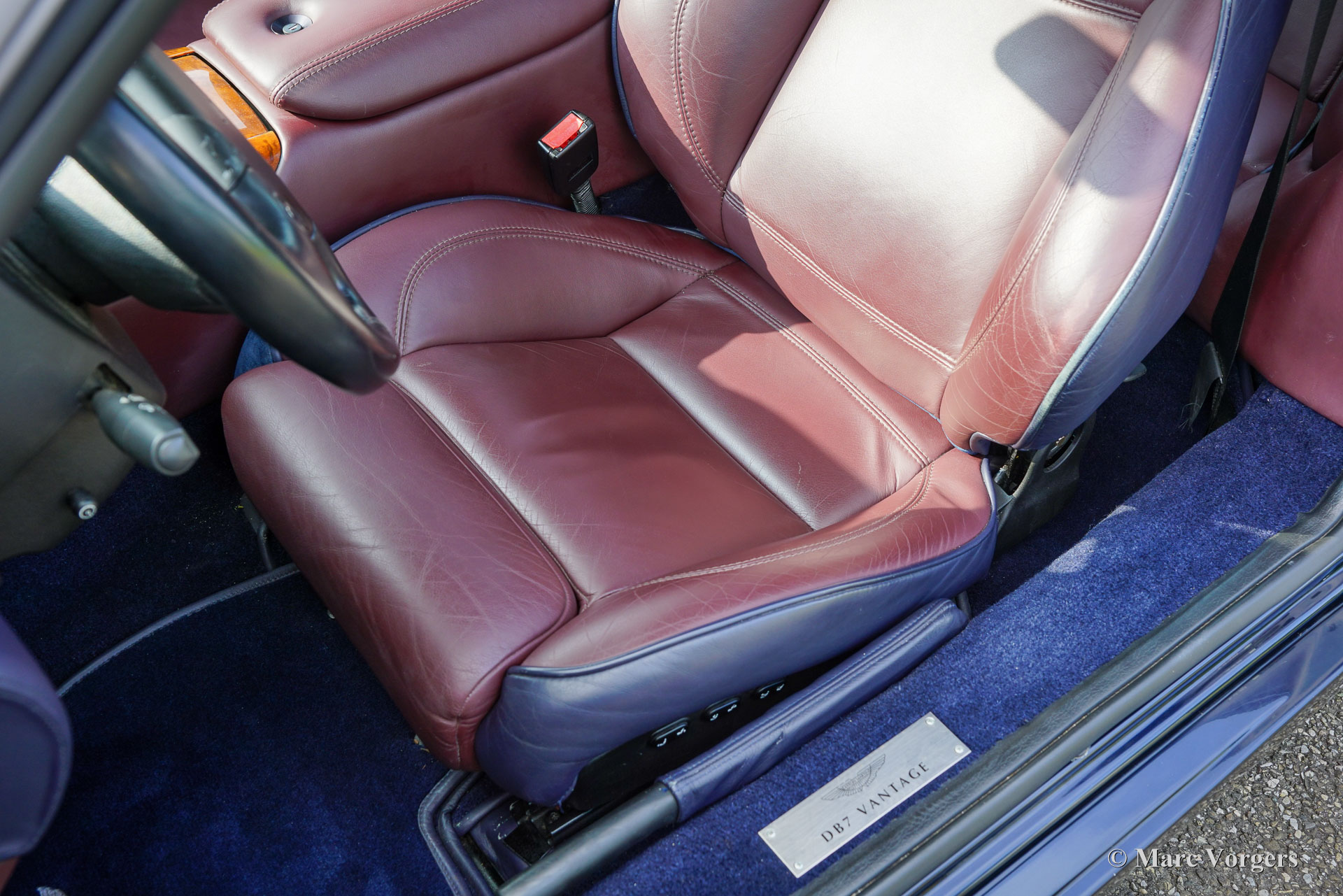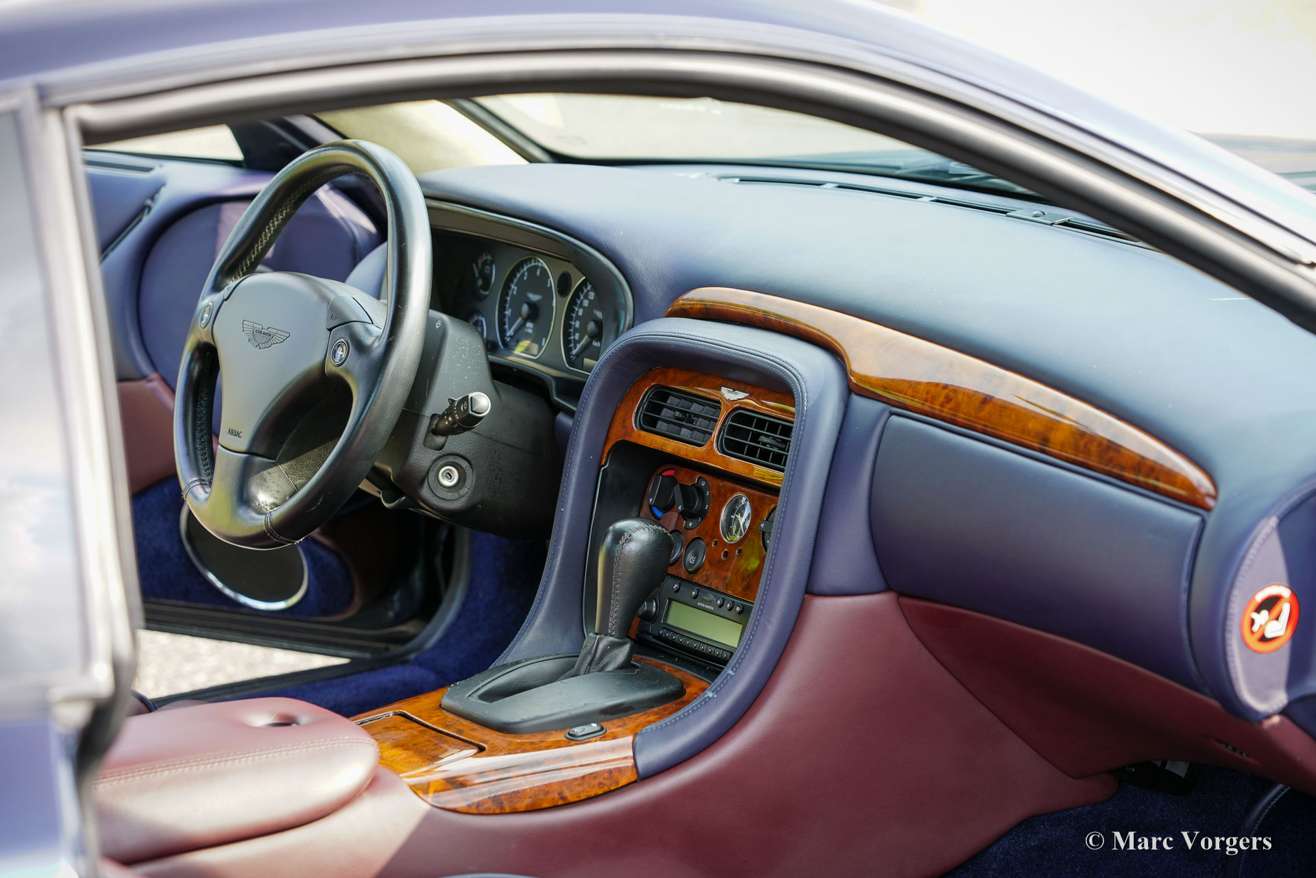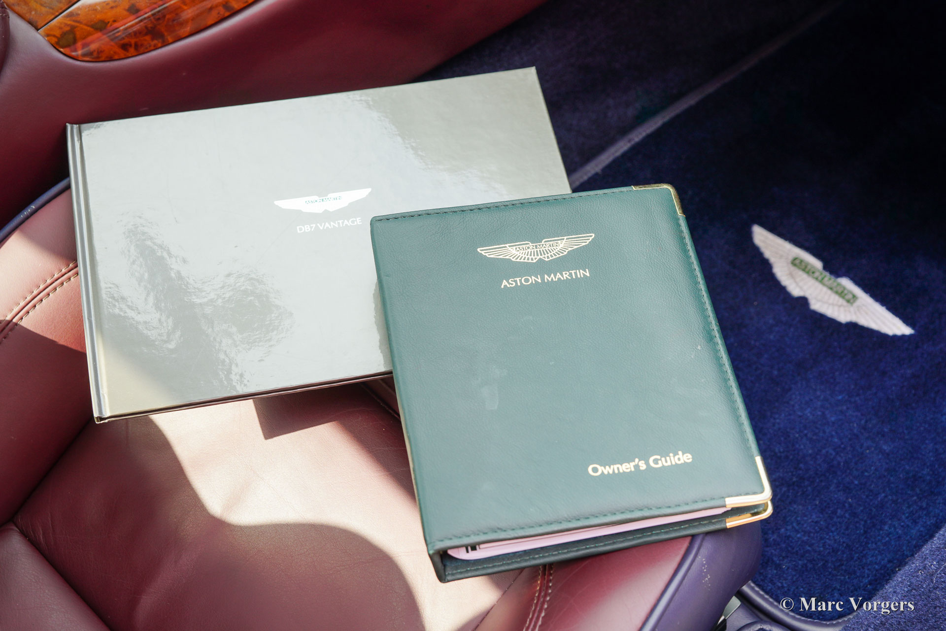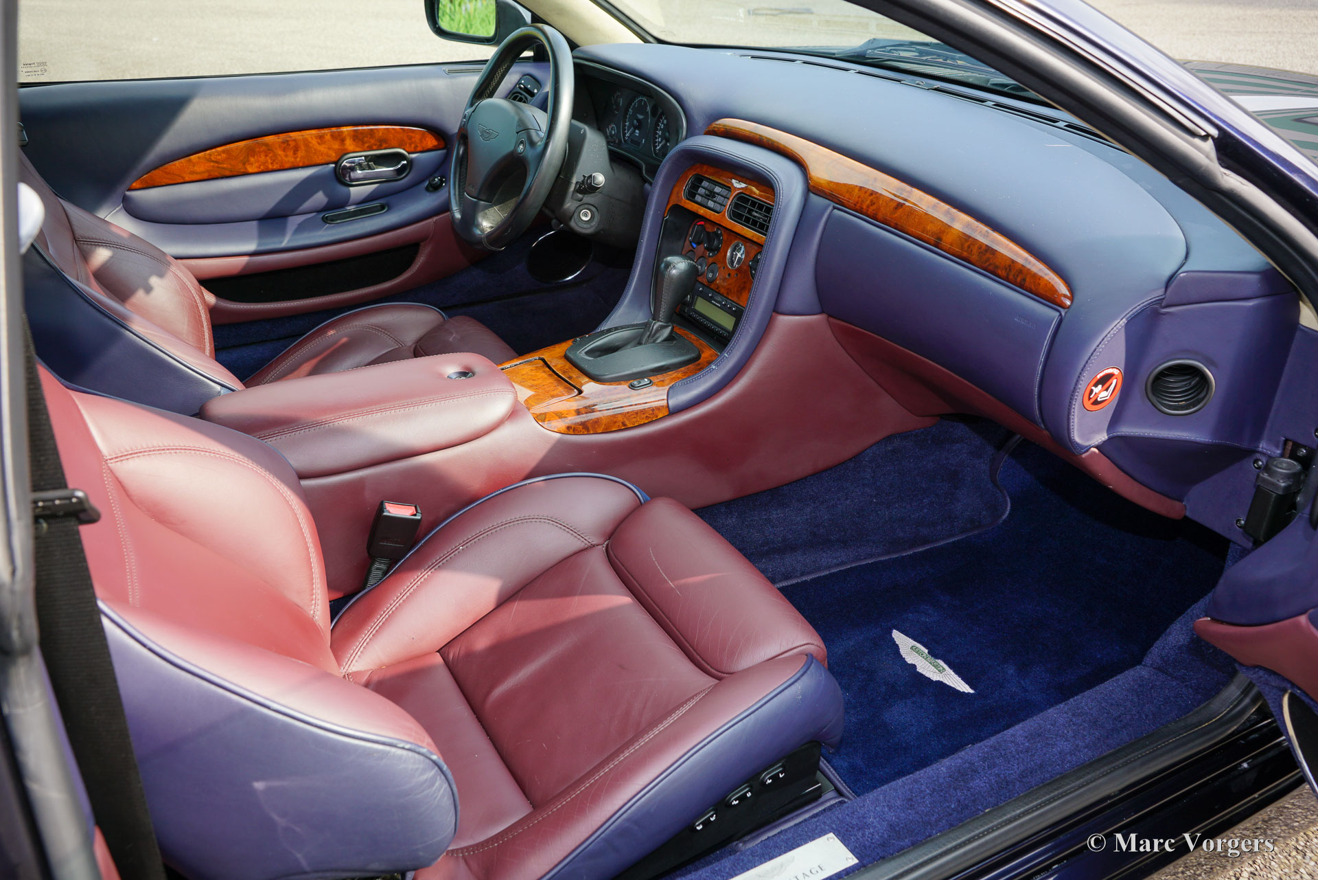 Aston Martin DB7 Vantage Coupé, Jahr 2002. Farbe Dunkelblau Metallic (Antrim Blue) kombiniert mit einer zweifarbigen blau/burgunderfarbenen Volllederausstattung mit blauem Wollteppich. Dieser seltene und atemberaubende Aston Martin DB7 Vantage wurde in den Niederlanden neu verkauft. Seit dem Kauf hat das Auto 107.750 Kilometer zurückgelegt. Die Wartungshistorie ist vollständig dokumentiert und alle Originalbücher und der zusätzliche Schlüsselsatz (in einer schwarzen Box!) sind noch im Auto. Dieses Exemplar ist in einem ausgezeichneten Originalzustand und das Auto fährt perfekt. Das Auto weist nur leichte Gebrauchsspuren auf, insbesondere einige Steinschläge im Lack der Front. Der mächtige 420 PS starke V12-Motor (Nummer 02959) wurde laut Plakette unter der Motorhaube von Phil Jefferies inspiziert. Dieses schöne und seltene Aston Martin V12 Vantage Coupé verfügt über viele Luxusoptionen und das Auto rollt auf wunderbaren 18-Zoll-Rädern mit Bridgestone Potenza-Reifen. Das Aston Martin DB7 Vantage Coupé wurde 1999 auf dem Genfer Autosalon präsentiert. DB7-Designer Ian Callum hatte das DB7 mit üppigeren Seiten und einer neuen Front für das Vantage Coupé neugestaltet. Außerdem erhielt das Auto eine neue Vorder- und Hinterradaufhängung, bevor der sehr leistungsstarke neue 5935-cm³-V12-Motor eingebaut wurde. Der DB7 Vantage war der erste Aston Martin mit einem V12-Motor. Das DB7 Vantage Coupé ist ein großartiges Fahrerauto und ein Bildschönes Aston Martin-Modell! Von 1999 bis 2003 wurden 2091 Exemplare gebaut. Ein wunderbares und begehrenswertes Sammlerauto. Dieses Aston Martin DB7 Vantage Coupé wird komplett mit einer maßgeschneiderten Aston Martin-Staubschutzhülle geliefert.