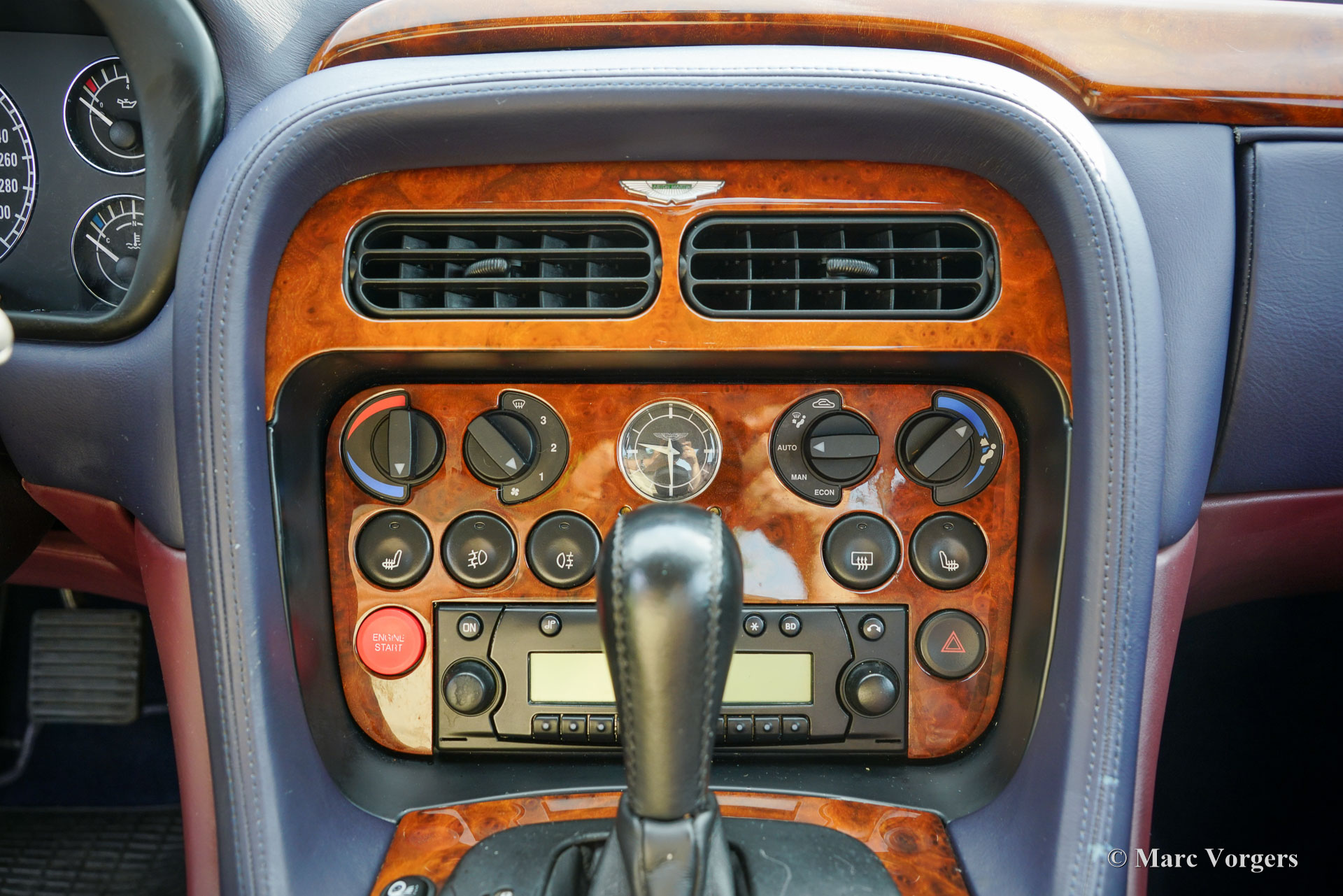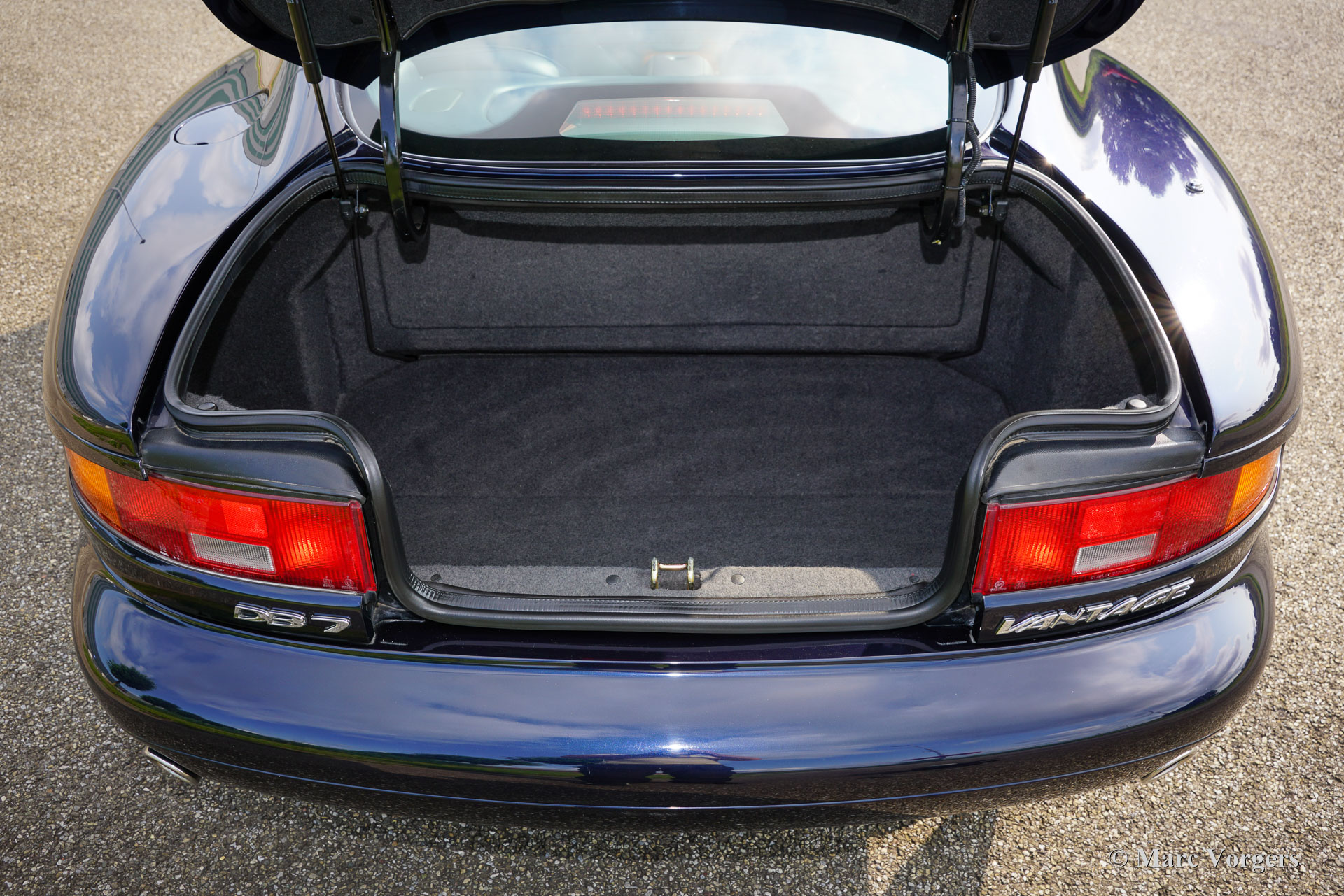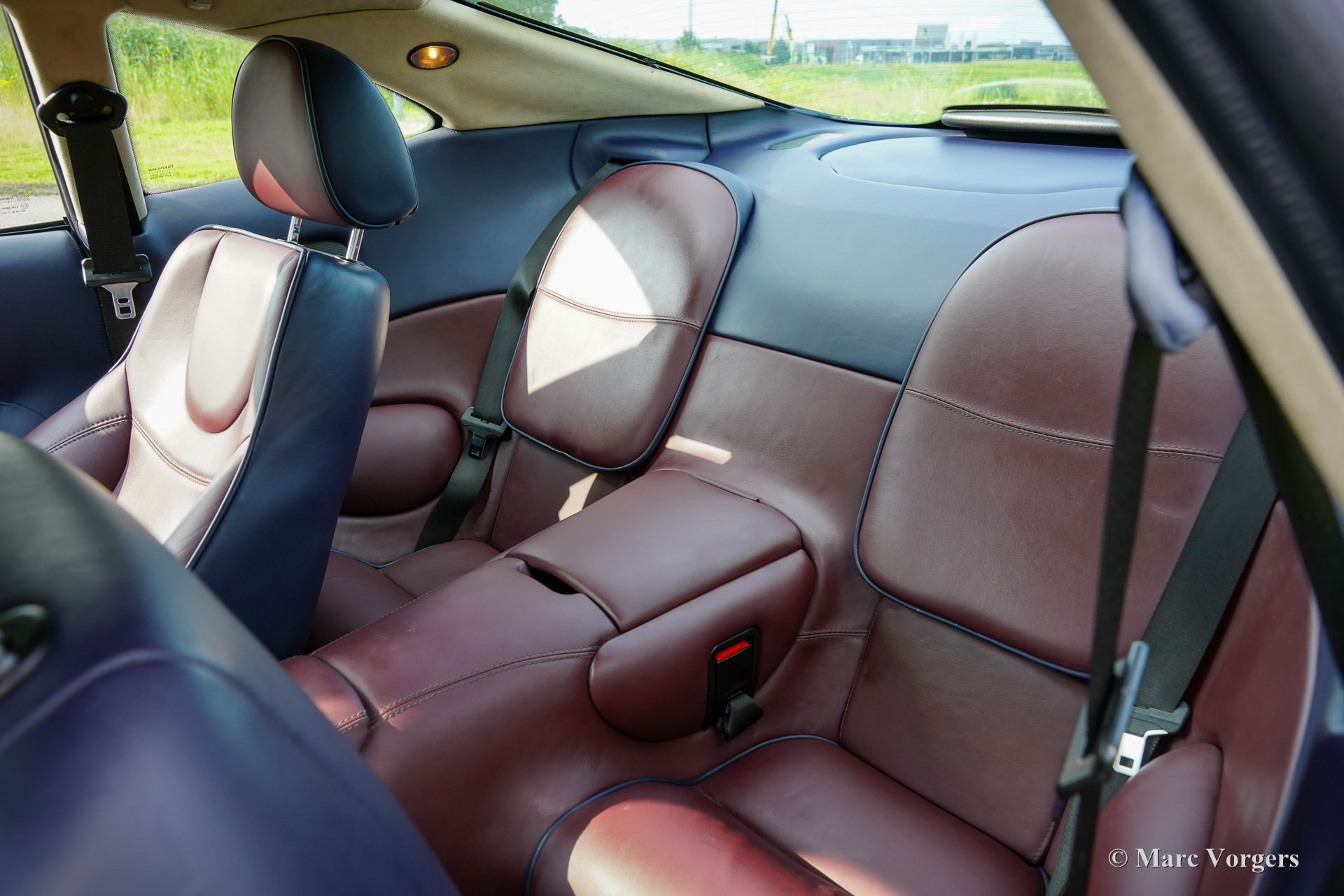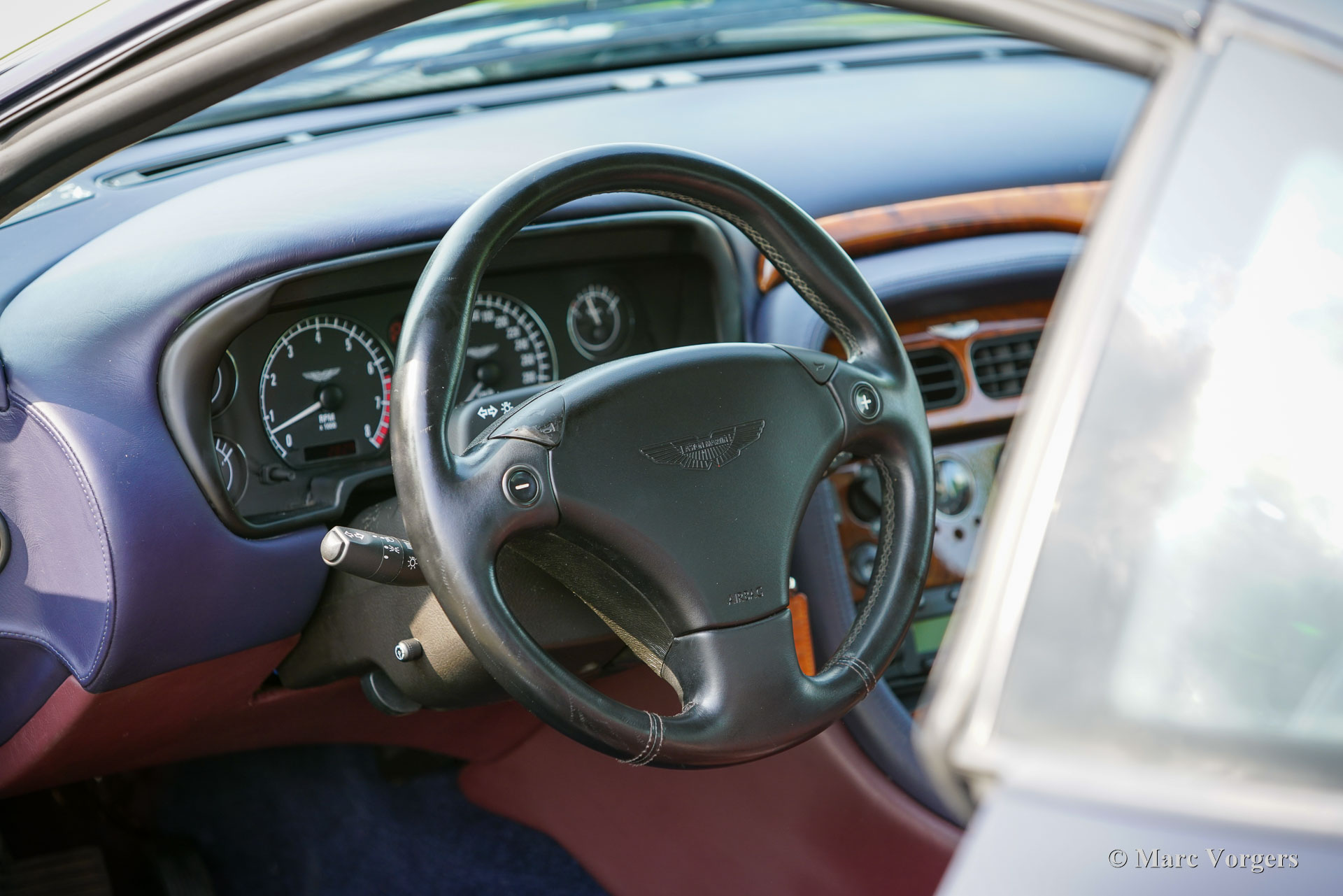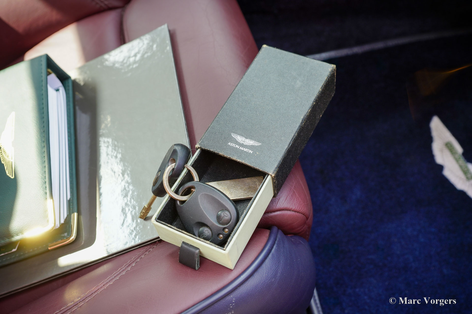 Aston Martin DB7 Vantage Coupé, Jahr 2002. Farbe Dunkelblau Metallic (Antrim Blue) kombiniert mit einer zweifarbigen blau/burgunderfarbenen Volllederausstattung mit blauem Wollteppich. Dieser seltene und atemberaubende Aston Martin DB7 Vantage wurde in den Niederlanden neu verkauft. Seit dem Kauf hat das Auto 107.750 Kilometer zurückgelegt. Die Wartungshistorie ist vollständig dokumentiert und alle Originalbücher und der zusätzliche Schlüsselsatz (in einer schwarzen Box!) sind noch im Auto. Dieses Exemplar ist in einem ausgezeichneten Originalzustand und das Auto fährt perfekt. Das Auto weist nur leichte Gebrauchsspuren auf, insbesondere einige Steinschläge im Lack der Front. Der mächtige 420 PS starke V12-Motor (Nummer 02959) wurde laut Plakette unter der Motorhaube von Phil Jefferies inspiziert. Dieses schöne und seltene Aston Martin V12 Vantage Coupé verfügt über viele Luxusoptionen und das Auto rollt auf wunderbaren 18-Zoll-Rädern mit Bridgestone Potenza-Reifen. Das Aston Martin DB7 Vantage Coupé wurde 1999 auf dem Genfer Autosalon präsentiert. DB7-Designer Ian Callum hatte das DB7 mit üppigeren Seiten und einer neuen Front für das Vantage Coupé neugestaltet. Außerdem erhielt das Auto eine neue Vorder- und Hinterradaufhängung, bevor der sehr leistungsstarke neue 5935-cm³-V12-Motor eingebaut wurde. Der DB7 Vantage war der erste Aston Martin mit einem V12-Motor. Das DB7 Vantage Coupé ist ein großartiges Fahrerauto und ein Bildschönes Aston Martin-Modell! Von 1999 bis 2003 wurden 2091 Exemplare gebaut. Ein wunderbares und begehrenswertes Sammlerauto. Dieses Aston Martin DB7 Vantage Coupé wird komplett mit einer maßgeschneiderten Aston Martin-Staubschutzhülle geliefert.
