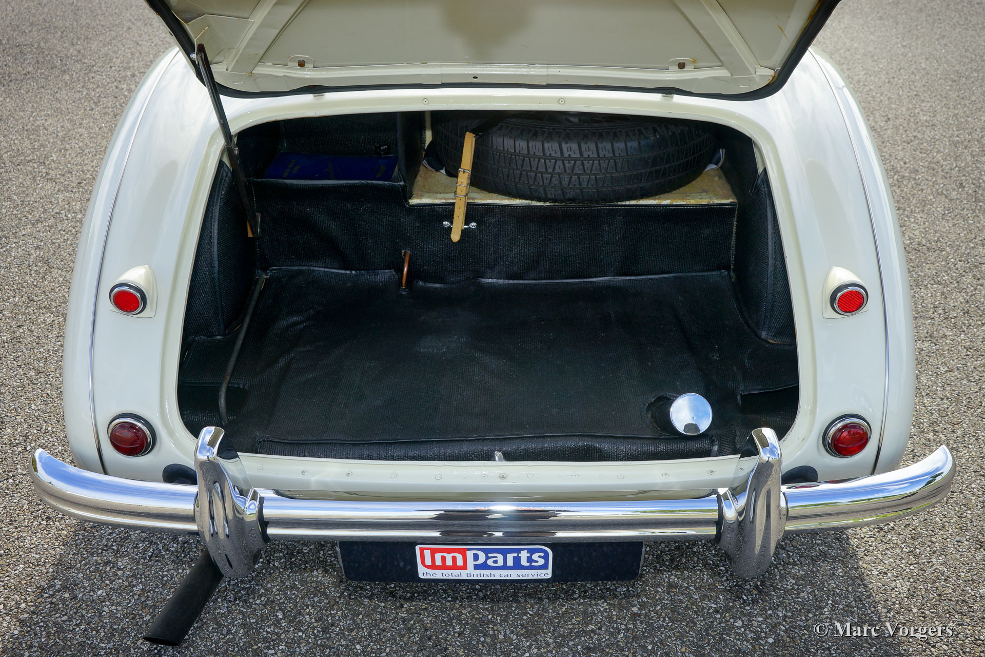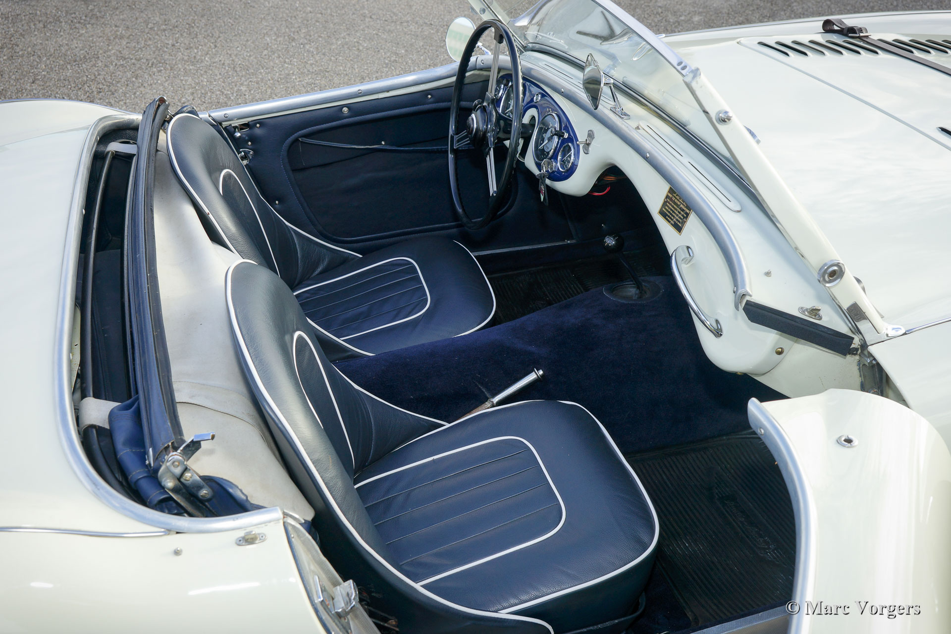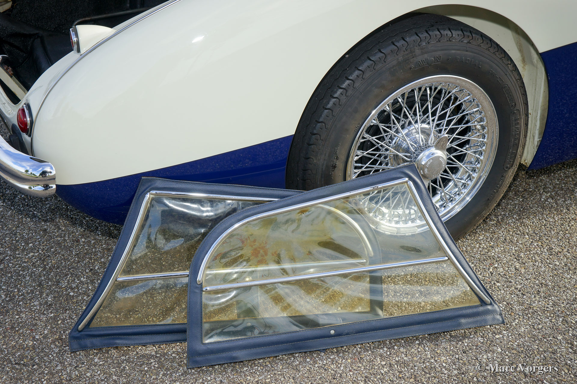 The former Healey models were more Spartan and featured fully detachable soft tops with separate side screens which could be stowed away in the booth.