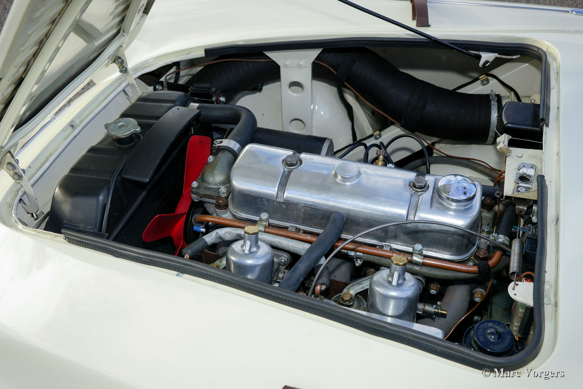 In October 1963 the Austin Healey 3000 MK III was introduced. The MK III was just like the MK IIa only available as 2+2 convertible model. The engine was fitted with a new camshaft and other valve coilsprings. Additionally two larger 2 inch S.U. HD-8 carburettors were fitted. Other changes were applicable to the interior, the dashboard was redesigned entirely and a center console was added. The back rest of the rear seats could be folded forward to be used as a floor to pack luggage on. Another change was the deletion of the "start button", the 3000 MK III fired up only using the starter key.