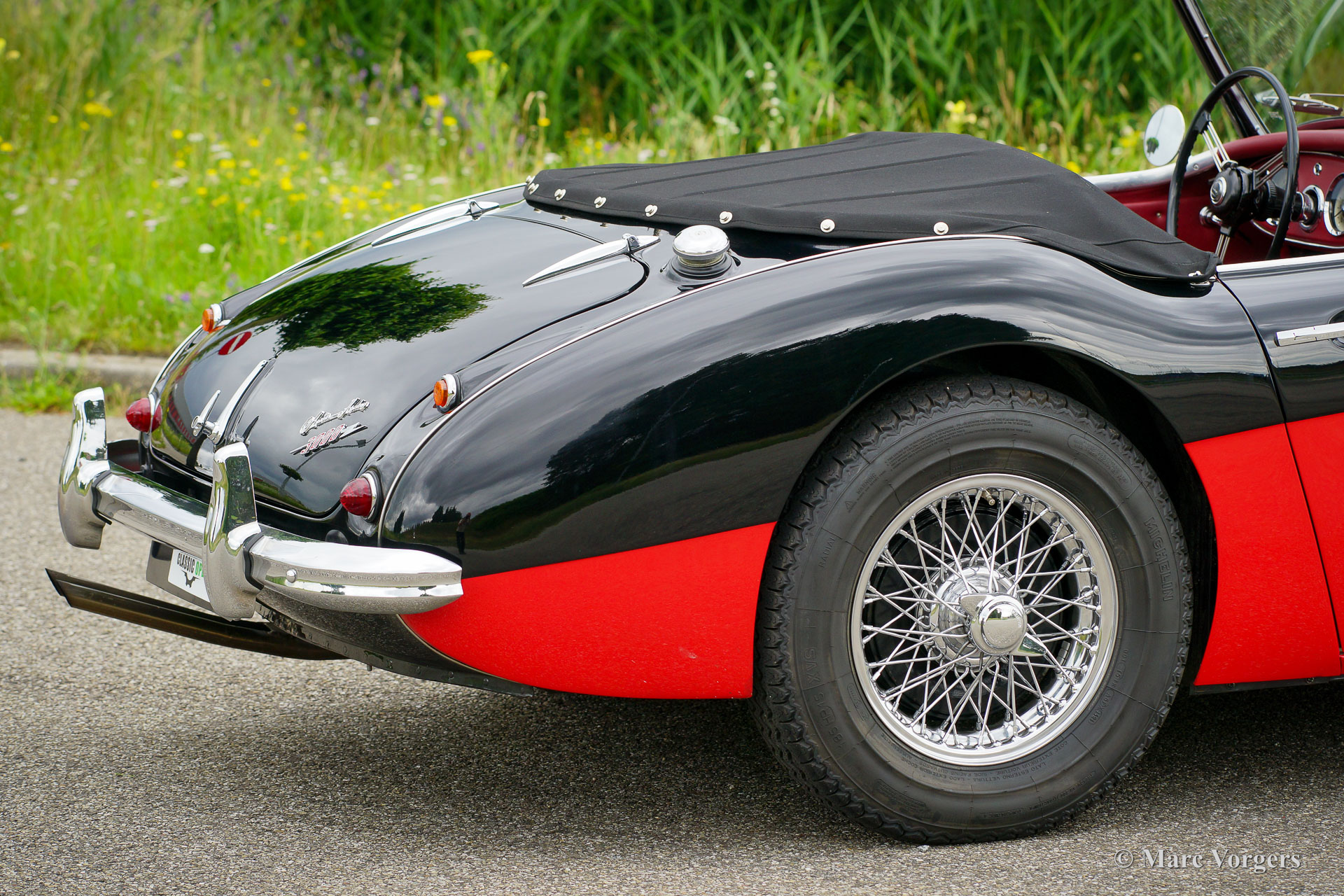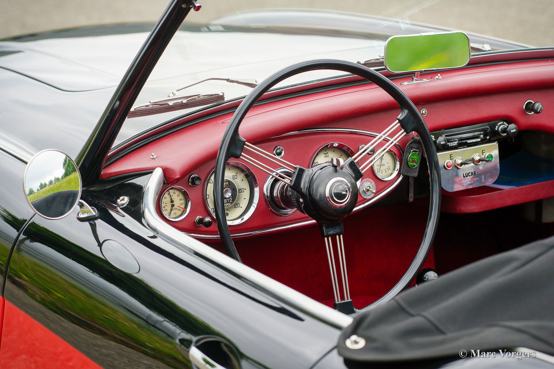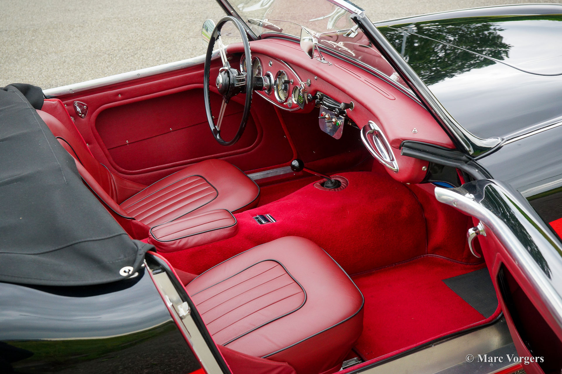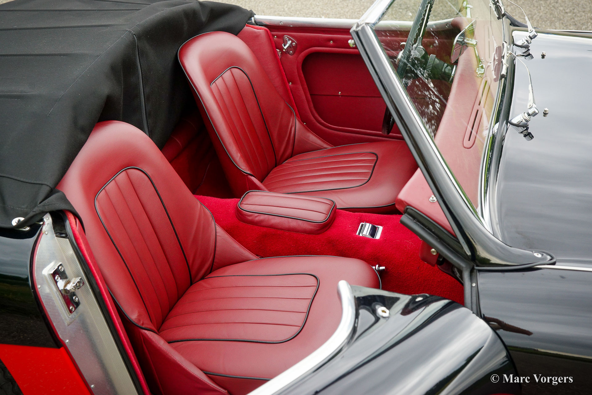 The former Healey models were more Spartan and featured fully detachable soft tops with separate side screens which could be stowed away in the booth.