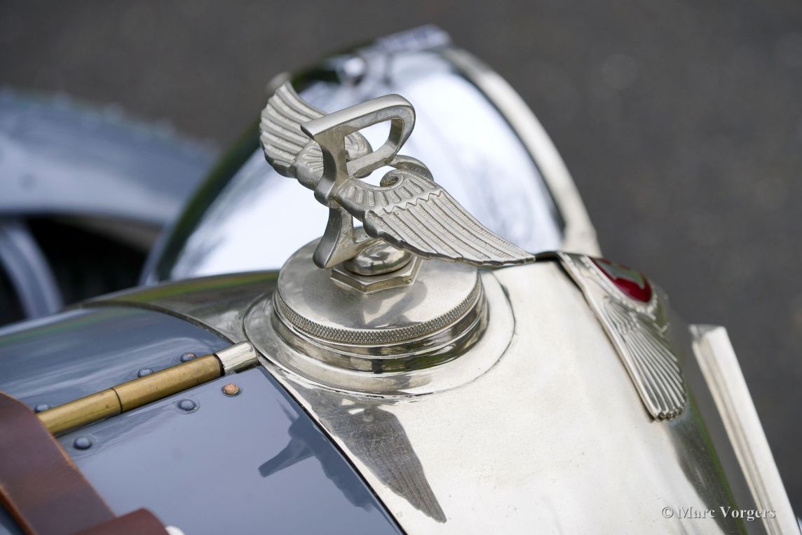 The Bentley 3 Litre was W.O. Bentley’s first design. The car was presented in 1919 but the first cars were sold in 1921. The four cylinder cars of rugged construction where in a class of their own for they combined the size and comfort of the big tourers and saloons with the road holding, and speed of the smaller sports- and racing cars. The Bentley was a true owner-driver car for the sporting motorist and connoisseur. The Bentley car could be had in three different types which were designated with three different radiator badges*. Red badge: short chassis speed model, Blue badge: the early short and then long chassis type for bespoke bodywork, Green badge: very rare and used for about eighteen 100 mph. These Green badge car won at Le Mans in 1924 and 1927 (Old Number Seven.) The 3-Litre was built from 1919 until 1929.
