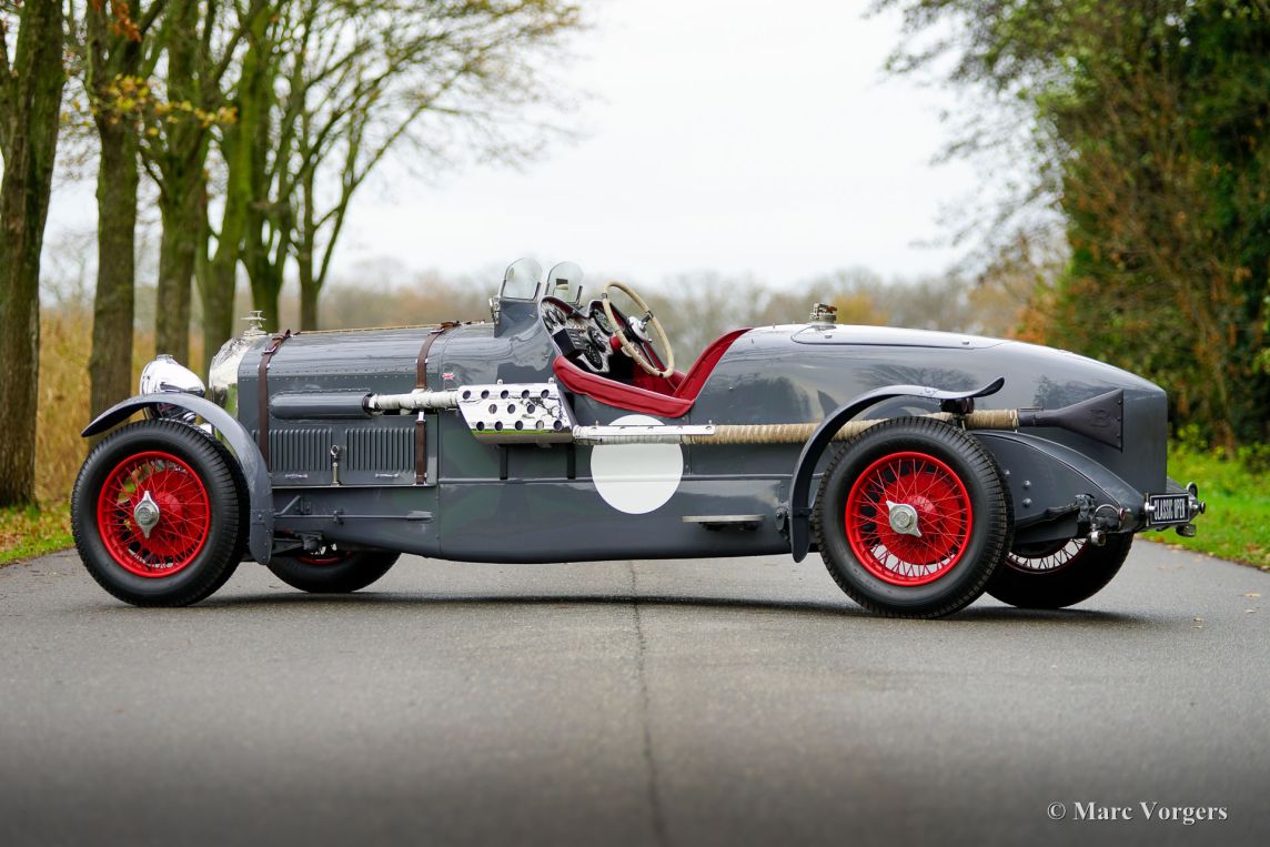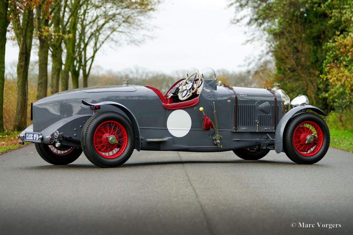 Bentley „Old Number One“ Special, Chassis 1947. Fahrgestellnummer: B172AK. Karosseriefarbe: Grau mit roten Speichenrädern. Innenausstattung: Rotes Leder und passender roter Wollteppich. Dieser wunderschöne Bentley „Old Number One“-Replika wurde auf einem originalen Bentley Mk VI-Chassis von 1947 aufgebaut. Gebaut wurde das Fahrzeug von Vintage Car Serry (Serry Exclusive) in Hilversum, Niederlande. Diese renommierte Firma fertigt seit zehn Jahren maßgeschneiderte Nachbildungen des legendären Bentley Speed Six „Old Number One“, der 1929/30 in Le Mans siegte. Dieses beeindruckende Automobil wurde mit authentischer und vollständig überholter Bentley Mk VI-Technik (4,25-Liter-Bentley-B60-Reihensechszylinder und Bentley-Vierganggetriebe), einer meisterhaft handgefertigten Aluminiumkarosserie und einer perfekt verarbeiteten Leder- und Wollpolsterung für den Innenraum ausgestattet. Dieses prachtvolle Exemplar wurde Ende 2016 fertiggestellt und 2017 zugelassen. Seitdem hatte der Wagen nur einen sorgsamen Besitzer, der ihn 4981 Meilen lang gefahren ist und genossen hat. Dieser edle Bentley Special wurde nach höchsten Standards gebaut und verarbeitet und befindet sich in einem exzellenten Zustand. Da dieses Special auf dem herausragenden Bentley Mk VI Chassis und der dazugehörigen Mechanik basiert (die in den 1940er Jahren branchenführend waren), ist das Fahrverhalten im Vergleich zum Original von 1929 angenehm und einfach. Das offene Fahrgefühl ist grandios, und der kraftvolle Klang des Auspuffs mit Brooklands-Schalldämpfer und „Fishtail“ ist einfach mitreißend! Der Blick auf das Aluminium-Armaturenbrett mit seinen zahlreichen Instrumenten ist beeindruckend und vermittelt das Gefühl, ein Kampfpilot zu sein. Der Innenraum bietet ausreichend Platz für einen großen Fahrer und Beifahrer. Im Heck befindet sich ein geräumiger Kofferraum, in dem das Reserverad untergebracht ist und Sie Ihr Gepäck verstauen können. Der einzigartige Bentley Speed Six „Old Number One“ ist einer der legendärsten Wagen der „Bentley Boys“-Ära. Diese atemberaubende, handgefertigte Aluminium Replika mit originalem Bentley-Chassis und -Mechanik Komponenten bringt den Nervenkitzel und den legendären Heldenmut der Le-Mans-„Bentley Boys“ in die Welt eines abenteuerlustigen neuen Besitzers!