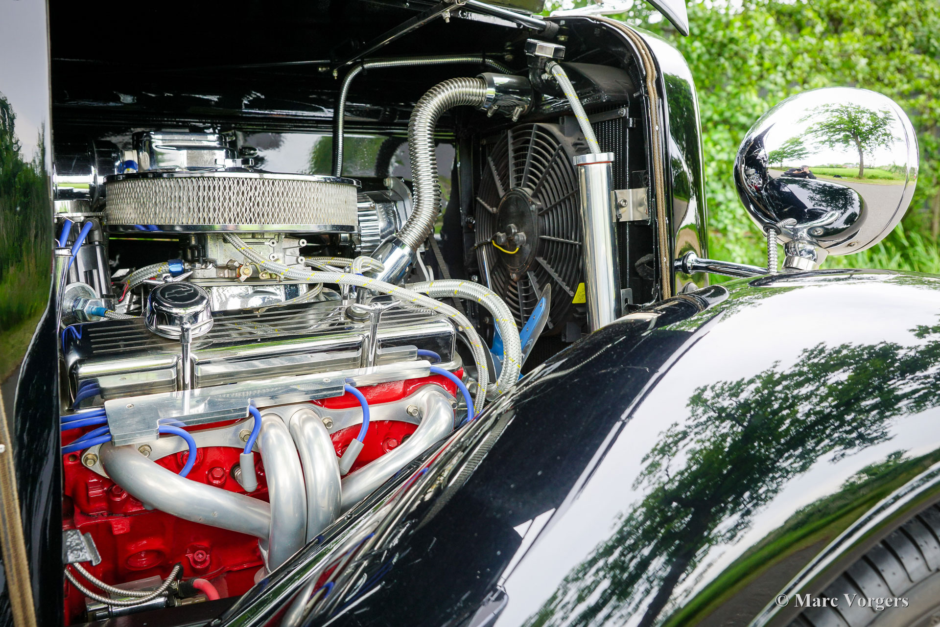 - Antrieb: Ein Chevrolet 350 C.I.D. Long Block V8 (290 PS) von Summit Racing, gepaart mit einem TH350-Automatikgetriebe.