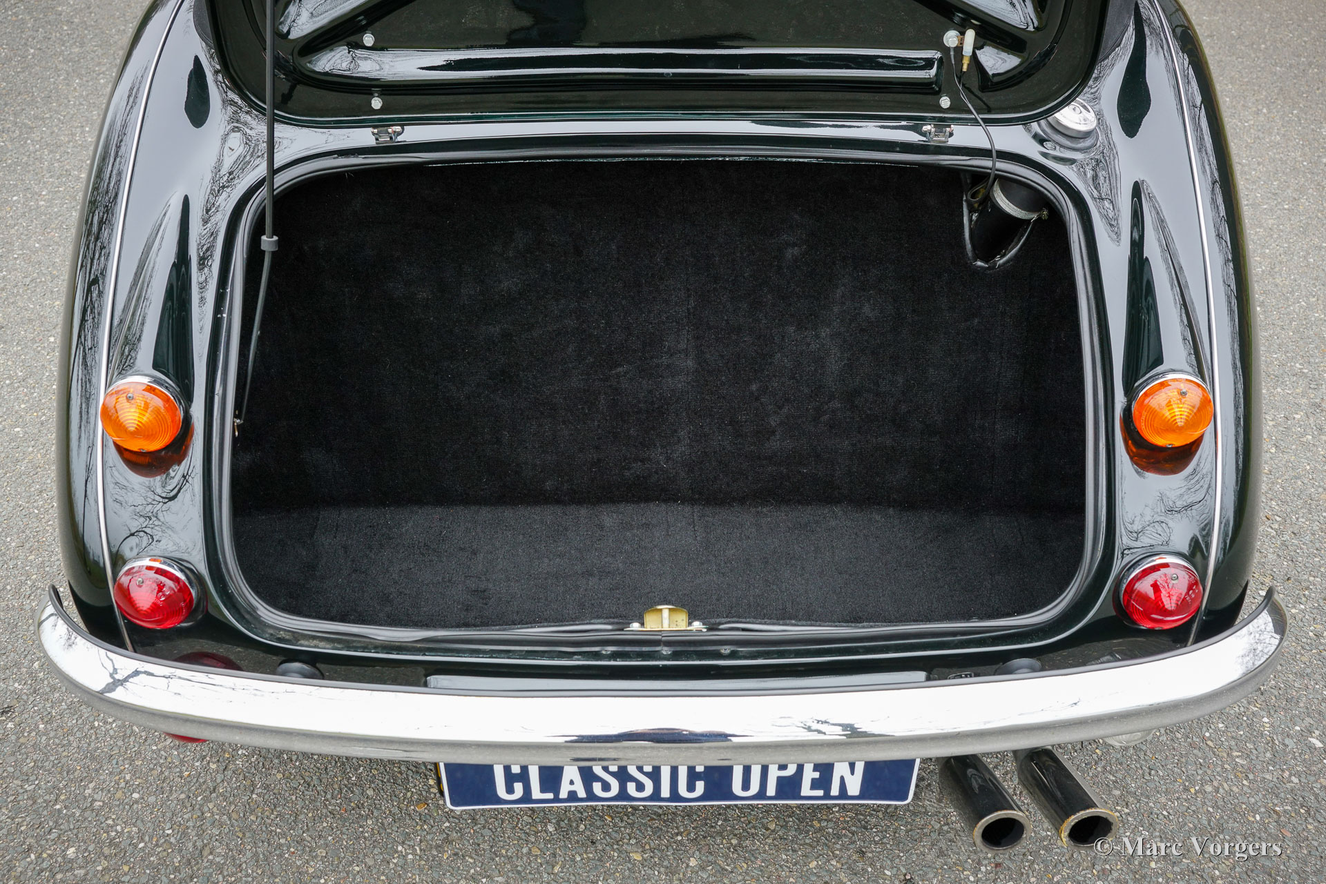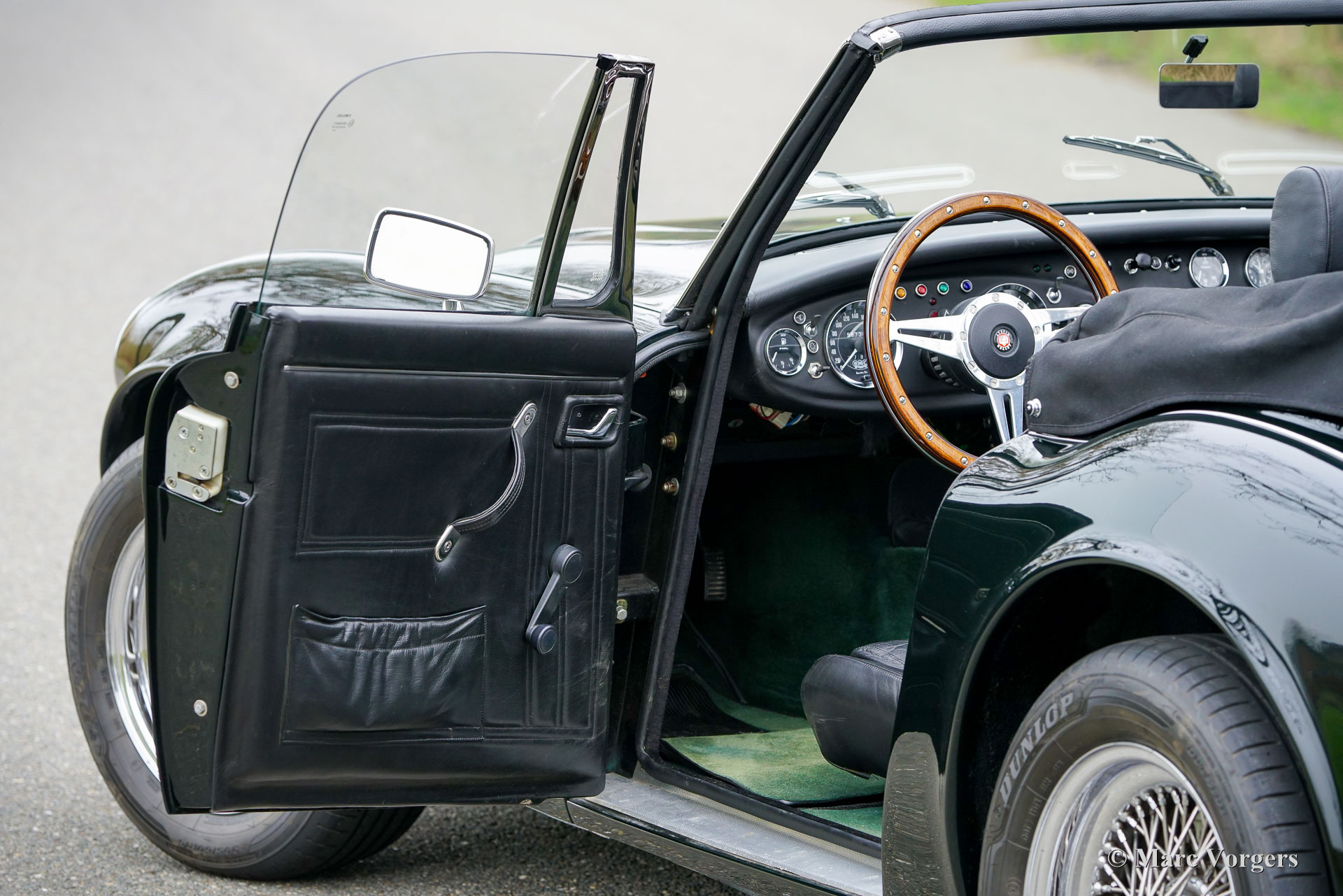 Dieser wunderschöne HMC Mark IV von 1998, Produktionsnummer 0128, Fahrgestellnummer SA904943GWGLT0128 und Motornummer 47A08805B, stammt aus erster Hand. Die Karosserie ist in dunklem ‚racing green‘ (BMW 289) lackiert und wird durch eine schwarze Volllederausstattung und grüne Teppiche ergänzt. Der Erstbesitzer legte mit diesem fantastischen Sportwagen seit seiner Auslieferung unvergessliche 58.750 Kilometer zurück. Das Fahrerlebnis ist wahrhaft einzigartig. Jeder, der den Austin-Healey 3000 aus den 1960er-Jahren kennt, wird begeistert sein: Der HMC Mark IV ist eine gelungene, moderne Wiedergeburt dieser klassischen Ikone. Sobald man Platz genommen hat, fällt der sportliche Luxus der Volllederausstattung auf, die sich auch auf Armaturenbrett und Türverkleidungen erstreckt. Die Sitze bieten hervorragenden Halt, und die Sitzposition ist eine deutliche Verbesserung gegenüber dem Original aus den 1960er-Jahren. Beim Starten ertönt kein Heulen eines 3-Liter-Reihensechszylinders, sondern das tiefe Grollen eines 190 PS starken 3,9-Liter-V8 – derselbe legendäre Motor, der auch im Morgan +8 und der TVR S-Serie zum Einsatz kam. Mit einem Gewicht von 1200 Kilogramm bietet der HMC Mark IV beeindruckende Fahrleistungen. Das satte Drehmoment von 305 Nm macht sich besonders bemerkbar, wenn der Wagen in nur 6,1 Sekunden von 0 auf 100 km/h beschleunigt. Dank Einzelradaufhängung rundum und Scheibenbremsen an allen vier Rädern bietet der Wagen ein außergewöhnlich gutes Handling und Bremsverhalten. Dieses wundervolle Exemplar wurde stets sorgfältig in der Garage aufbewahrt, gewartet und gepflegt und weist nur geringe Gebrauchsspuren auf. Es stellt eine seltene Gelegenheit dar, einen exklusiven und äußerst beeindruckenden HMC Mark IV zu erwerben!