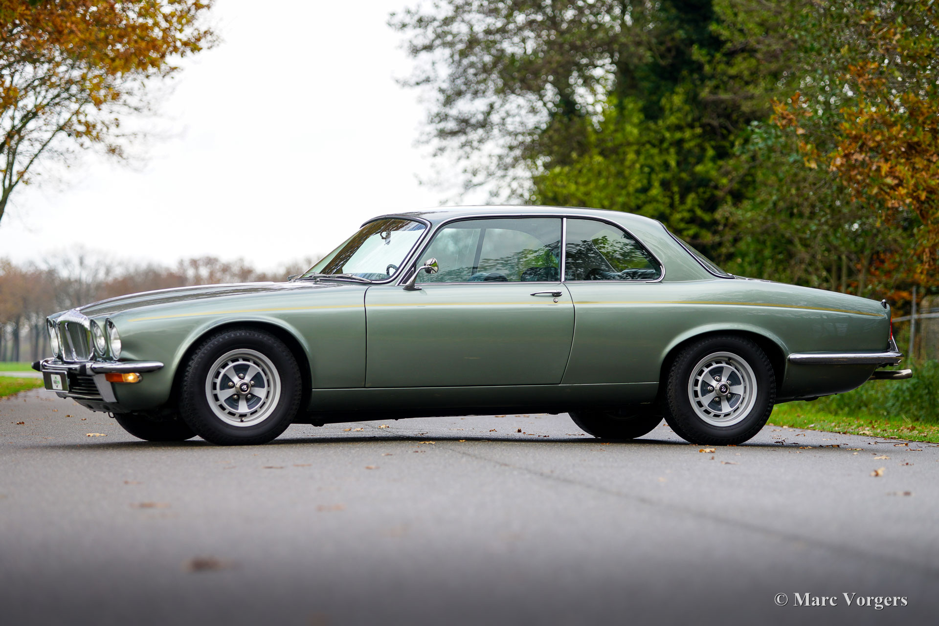 Jaguar XJ6 4,2-Liter-Coupé, Jahr 1975. Farbe: Hellgrün-Metallic, kombiniert mit einer schwarzen Lederausstattung, schwarzem Teppich und hellgrünen Matten. Dieses wunderschöne Jaguar XJ6 Coupé (XJ-C) wurde vor 15 Jahren umfassend restauriert, Fotos der Restaurierung sind verfügbar. Bei der Restaurierung wurde beschlossen, verschiedene Details der Daimler-Version zu übernehmen, wie den Kühlergrill und verschiedene Plaketten und Logos, und auf eine schwarze Vinyl-Dachverkleidung wurde verzichtet. Von diesem legendären Jaguar XJ6 Coupé wurden nur 6.500 Exemplare gebaut. Der 4,2-Liter-Sechszylindermotor klingt großartig und leistet etwa 170 PS. Der Antrieb der Hinterräder erfolgt über ein perfekt schaltendes Borg Warner-Automatikgetriebe. Darüber hinaus ist dieses Luxusautomobil mit Servolenkung, Servobremsen, elektrisch betätigten Seitenfenstern und Klimaanlage ausgestattet. Die Klimaanlage wurde erneuert und funktioniert hervorragend! Das Auto ist mit wunderschönen originalen 15-Zoll-Felgen ausgestattet, die mit Dunlop-Reifen bestückt sind. Das Original-Werkzeugset und der Wagenheber sind vorhanden. Dieser Jaguar verfügt über eine umfangreiche Wartungshistorie. Das Auto wurde kürzlich einer umfassenden Wartung unterzogen; Dieses wunderschöne Coupé ist bereit, von einem stolzen neuen Besitzer genossen zu werden!